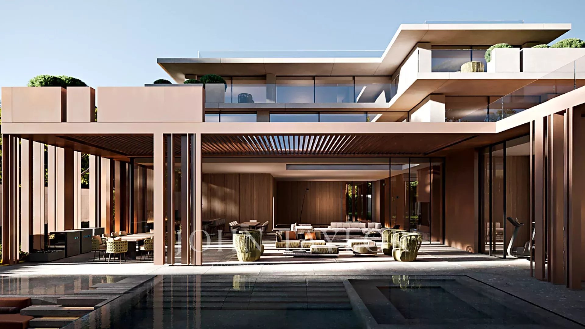 Die architektonische Gestaltung hebt das Niveau dieser Villa noch weiter an. Das von einem der besten Architekten der internationalen Szene, Yodezeen, entworfene Haus ist wie eine Skulptur konzipiert, bei der jede Linie, jedes Volumen und jedes Material sorgfältig durchdacht wurde. Sichtbeton, Naturstein, Metall und große Glasflächen stehen in perfekter Harmonie zueinander und schaffen offene, organische Räume, die von natürlichem Licht durchflutet werden.