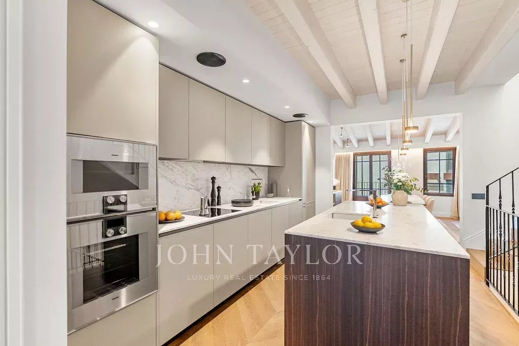 Das Townhouse Llorenc verfügt über eine Reihe hochwertiger Marken und maßgeschneiderter Elemente, darunter Tischlerarbeiten von Poliform, Geräte von Gaggenau und Miele, Beleuchtung von Giopato & Coombes, Audiosysteme von Bang & Olufsen, Außenmöbel von Roda und Textilien von Loro Piana. Zu den weiteren Highlights gehören individuell gestaltete Marmordetails, Flos-Beleuchtung, Vola-Armaturen und Sonance Invisible-Lautsprecher, die allesamt ausgewählt wurden, um ein unvergleichliches Wohnerlebnis zu schaffen.