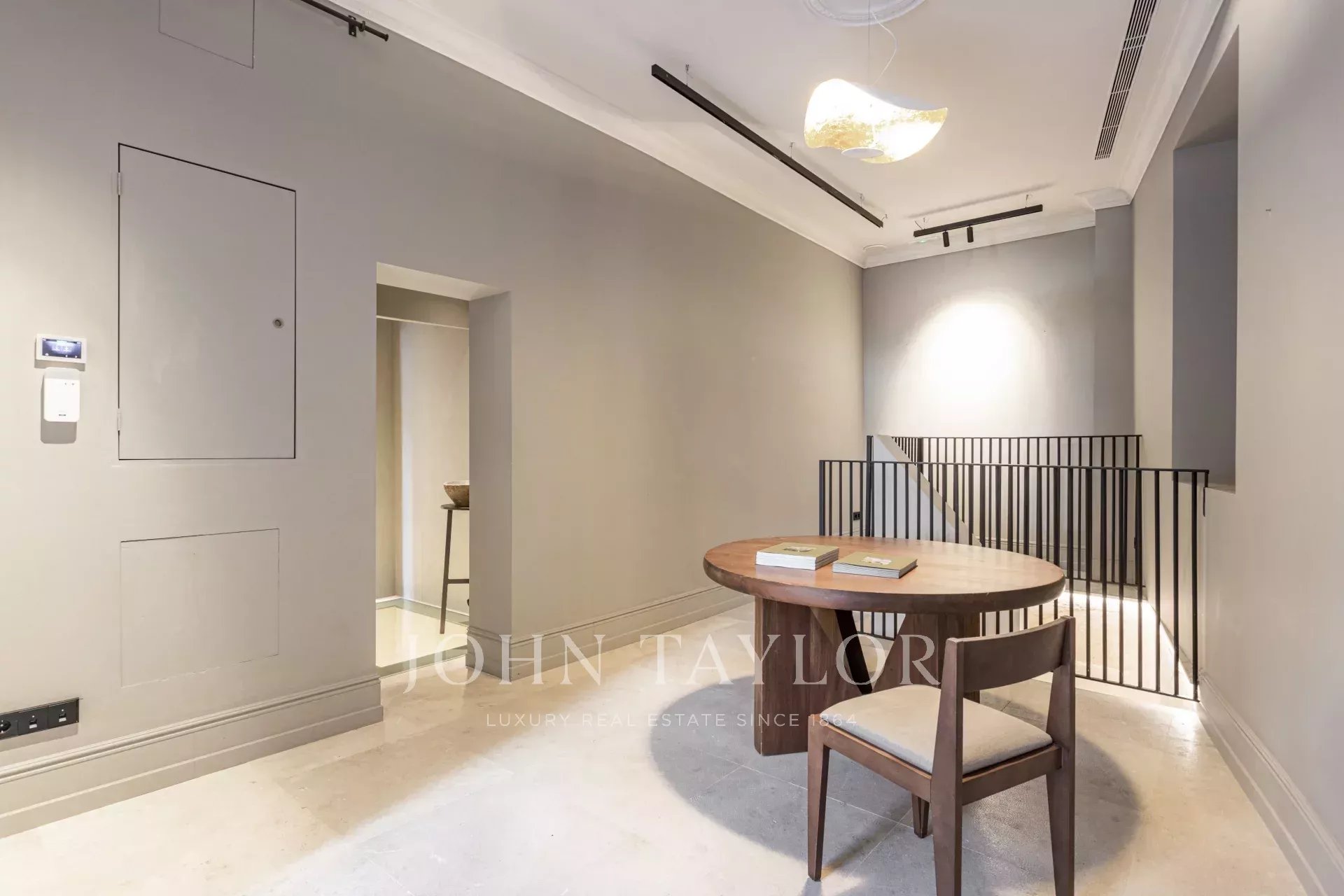 Das Haus ist sowohl mit klassischen Möbeln als auch mit pfiffigen Lösungen ausgestattet, wie z. B. Hängelampen mit organischen Messingfäden, Einbausteckdosen, Vorhänge aus französischem Leinen und lackierte Holzmöbel, die nach Maß gefertigt wurden. Das Stadthaus ist auch vollständig mit zeitgenössischen Original-Kunstwerken ausgestattet, die von einer Kunstgalerie kuratiert wurden.