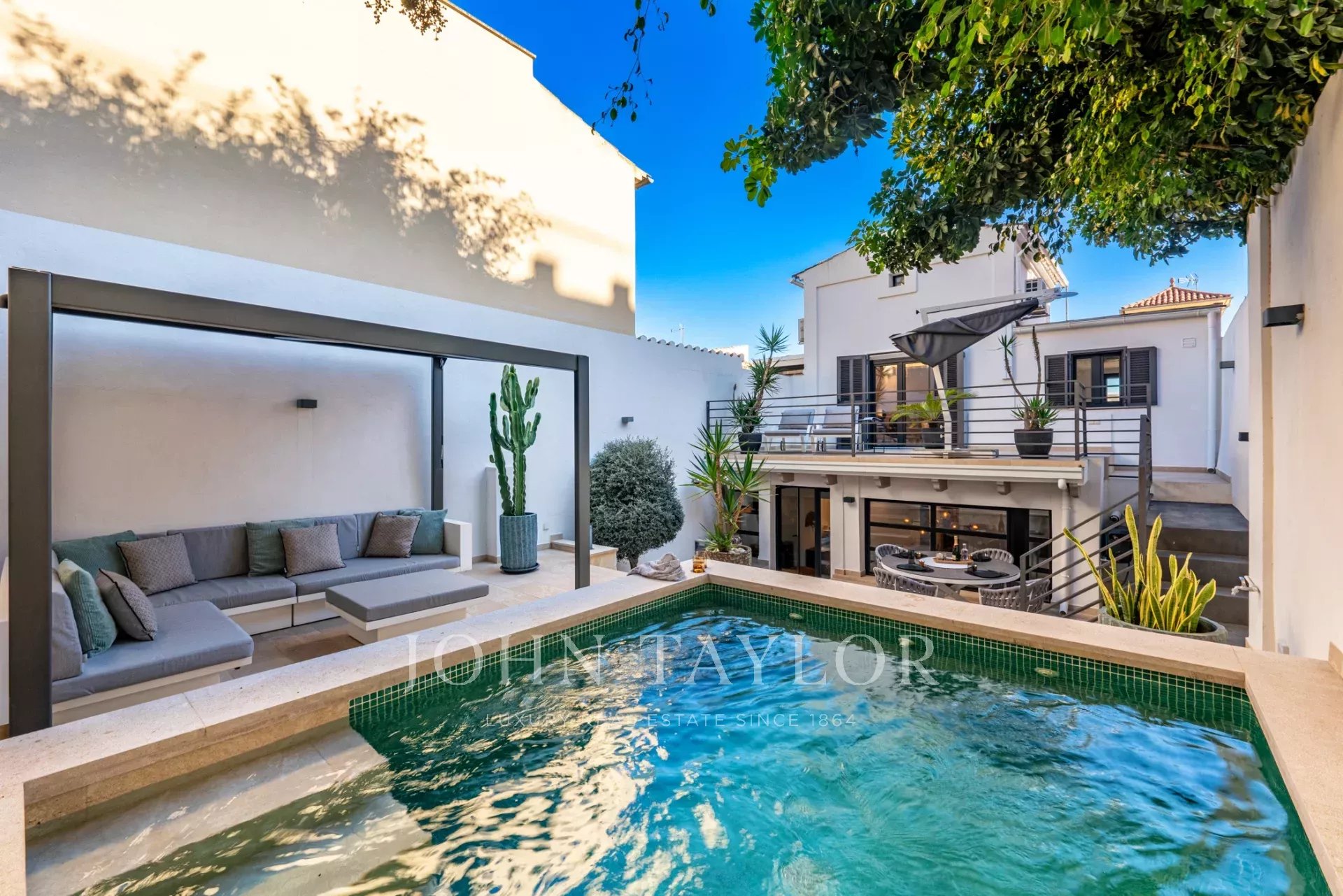 Entdecken Sie dieses atemberaubende zweistöckige Stadthaus in einer ruhigen Straße im begehrten Viertel El Terreno in Palma. Diese Immobilie verbindet modernen Komfort mit zeitloser Eleganz und bietet ein außergewöhnliches Wohnerlebnis in einer der begehrtesten Gegenden der Stadt. Mit einer Gesamtwohnfläche von 320 Quadratmetern, von denen 170 Quadratmeter auf den Innenbereich und 150 Quadratmeter auf den Außenbereich entfallen, wird ein maximales Indoor-Outdoor-Wohngefühl gewährleistet.