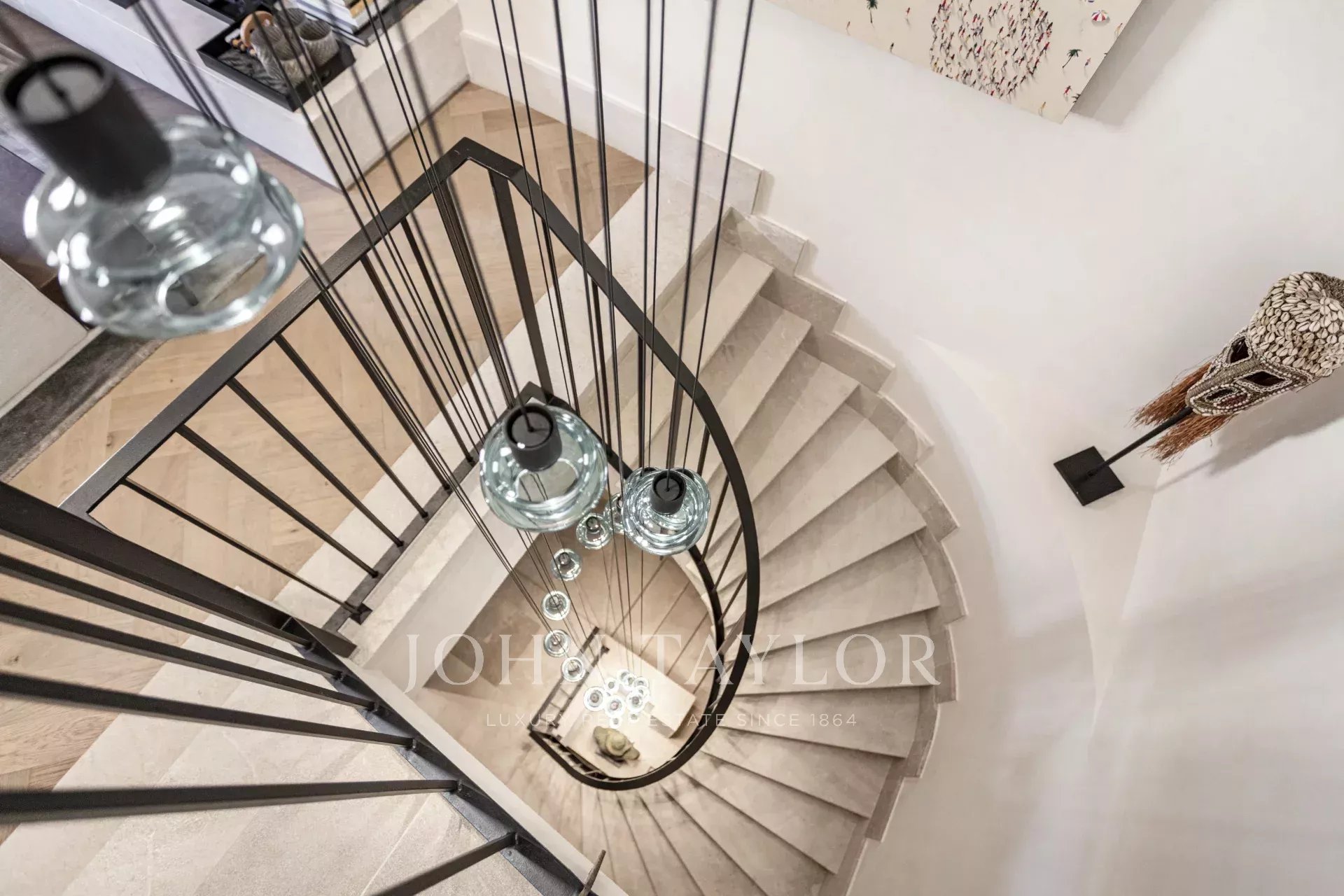 Dieses 2019 wiederaufgebaute Stadthaus ist ein eindrucksvolles Beispiel dafür, wie historisches Erbe mit raffiniertem modernem Design verschmelzen kann. Hinter der restaurierten Fassade verbirgt sich ein Haus, das mit hochwertigen Materialien, modernster Technologie und maßgeschneiderten Details ausgestattet ist, die zeitgenössisches Luxusleben definieren. Eine perfekte Wahl für alle, die eine kosmopolitische, urbane Lage mit dem Besten, was die Stadt zu bieten hat, nur wenige Schritte vom Haus entfernt suchen.