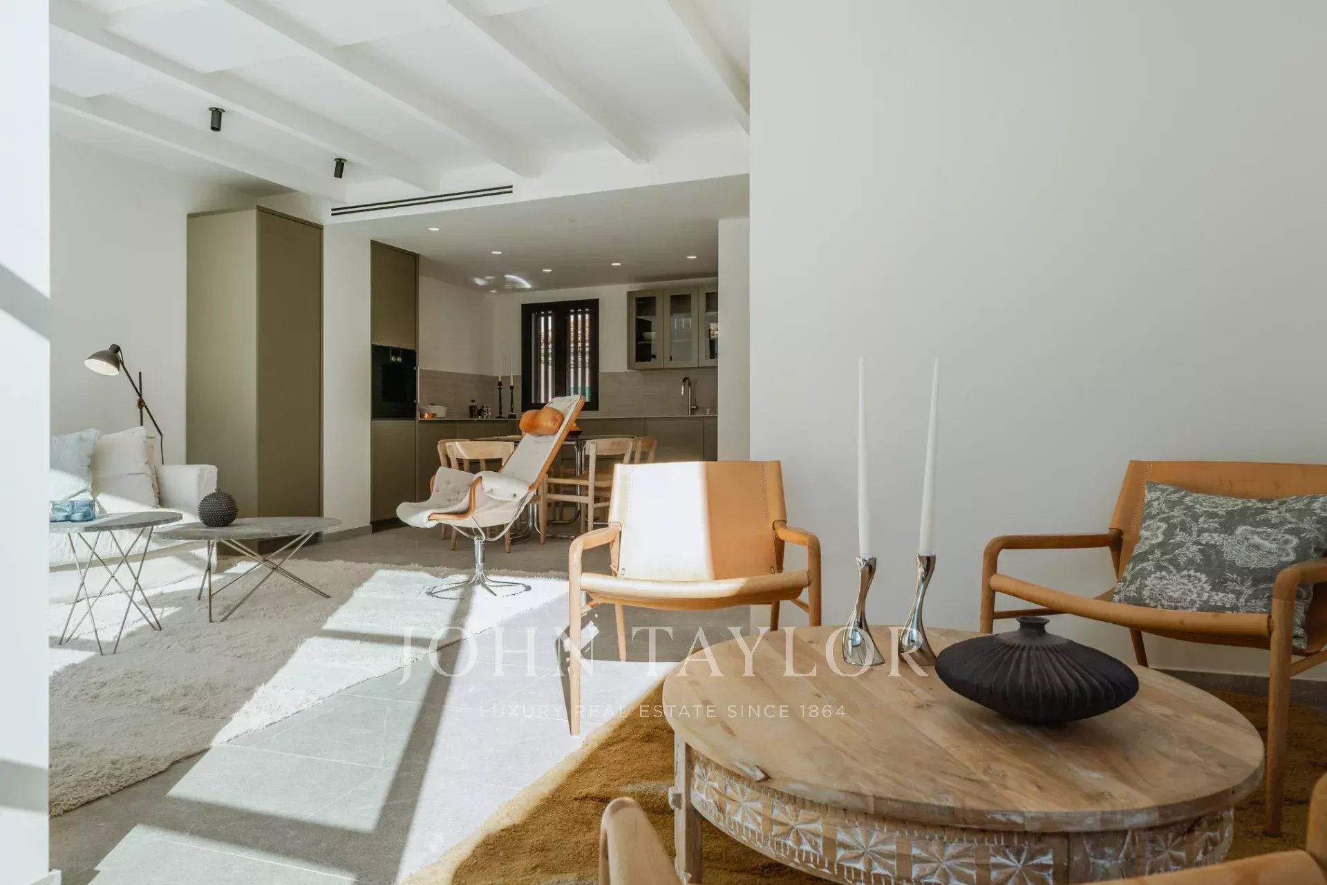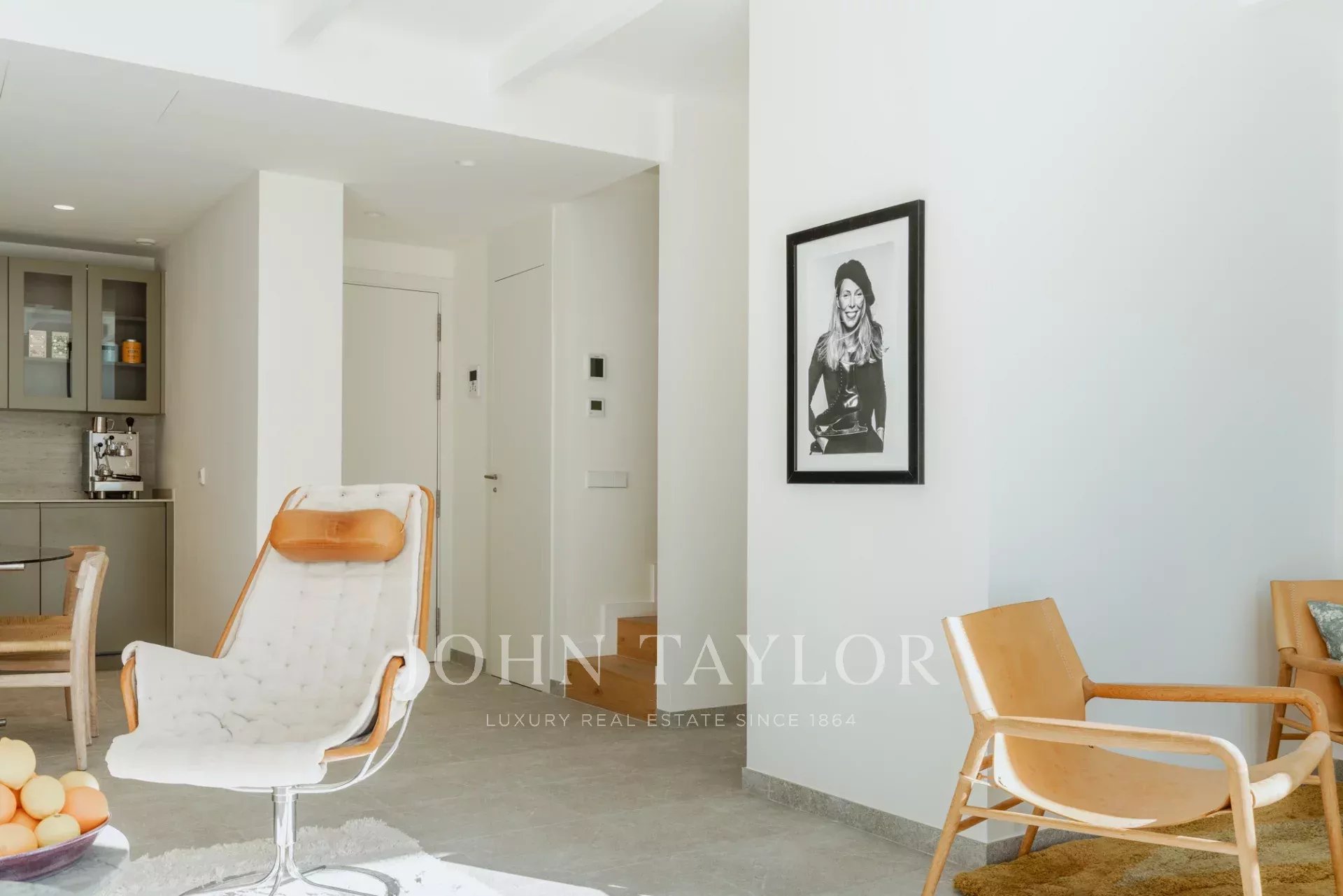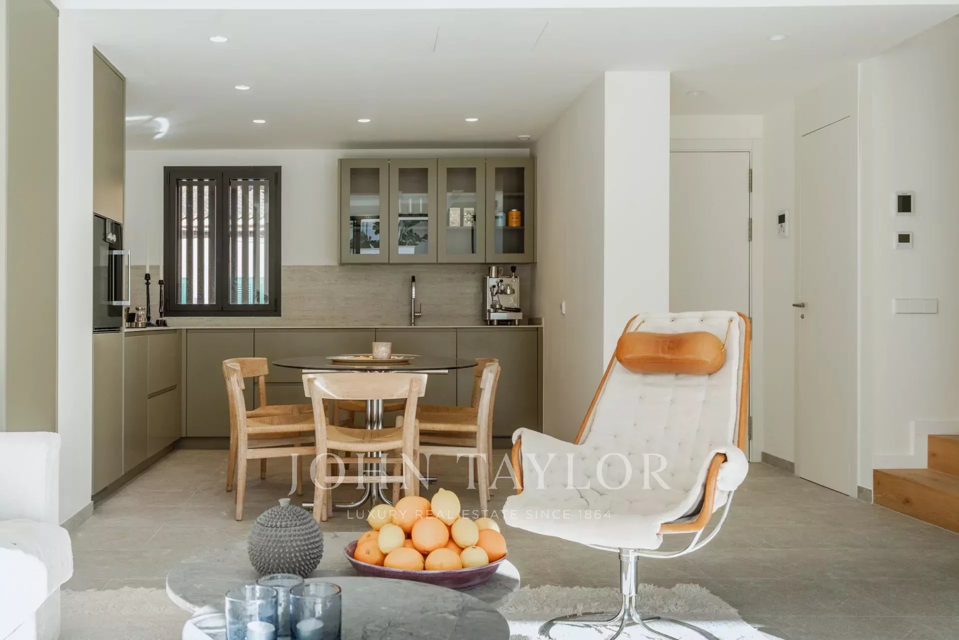 Das 161 m² große Haus erstreckt sich über zwei Etagen und verfügt über einen geräumigen Wohnbereich mit direktem Zugang zu einem 22 m² großen, nach Süden ausgerichteten Bereich, in dem Sie in aller Ruhe die Sonne genießen können. Die geräumige, offene und voll ausgestattete Gaggenau-Küche ist der Traum eines jeden Kochs, mit fortschrittlicher Wasserfilterung, der Möglichkeit, Wasser mit Kohlensäure zuzubereiten, und einem Kühlschrank in voller Größe. Die Küche geht nahtlos in den Wohnbereich und die Leseecke über, und durch das vollständige Öffnen der Terrassenfenster wird das Innere mit dem Äußeren eins.