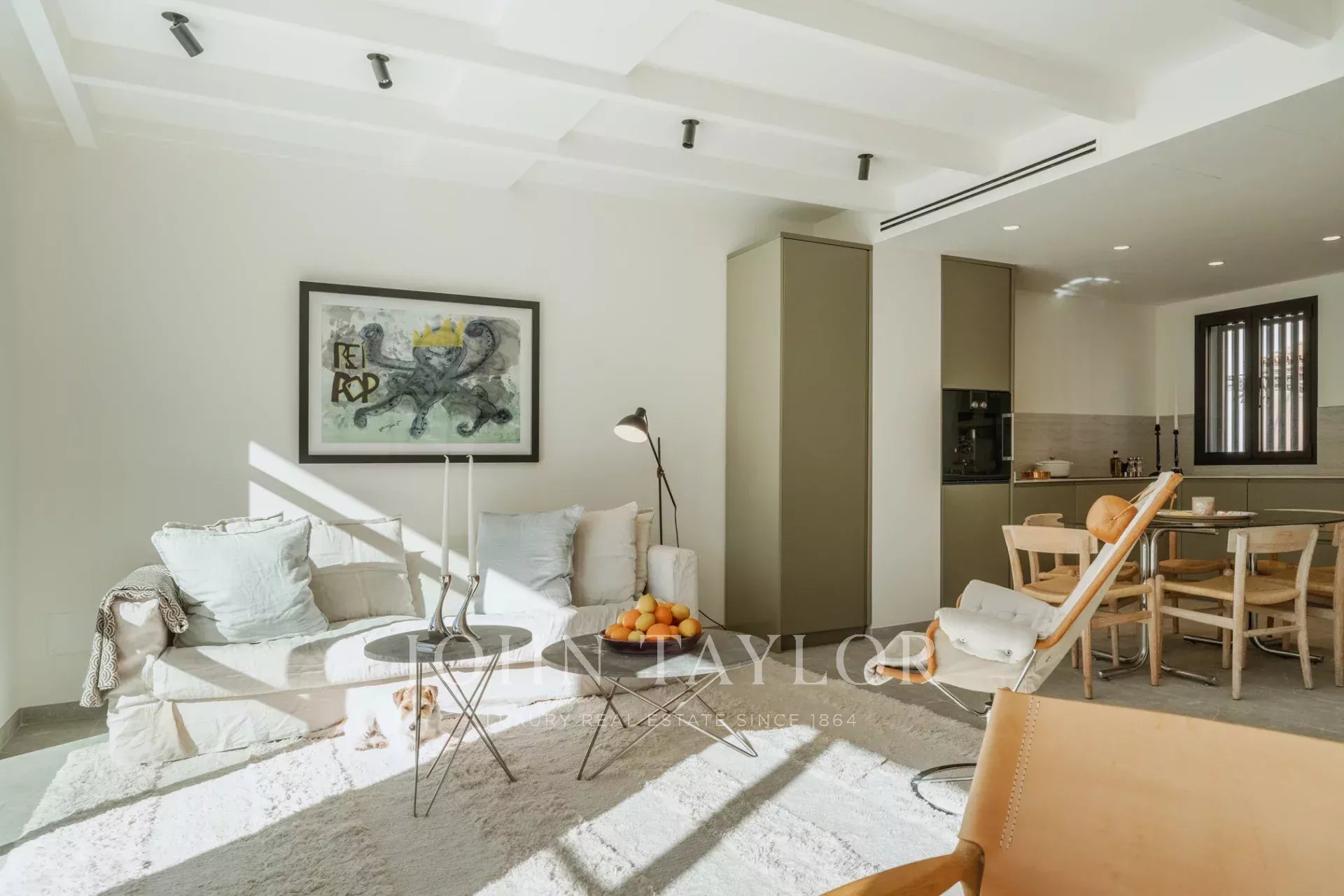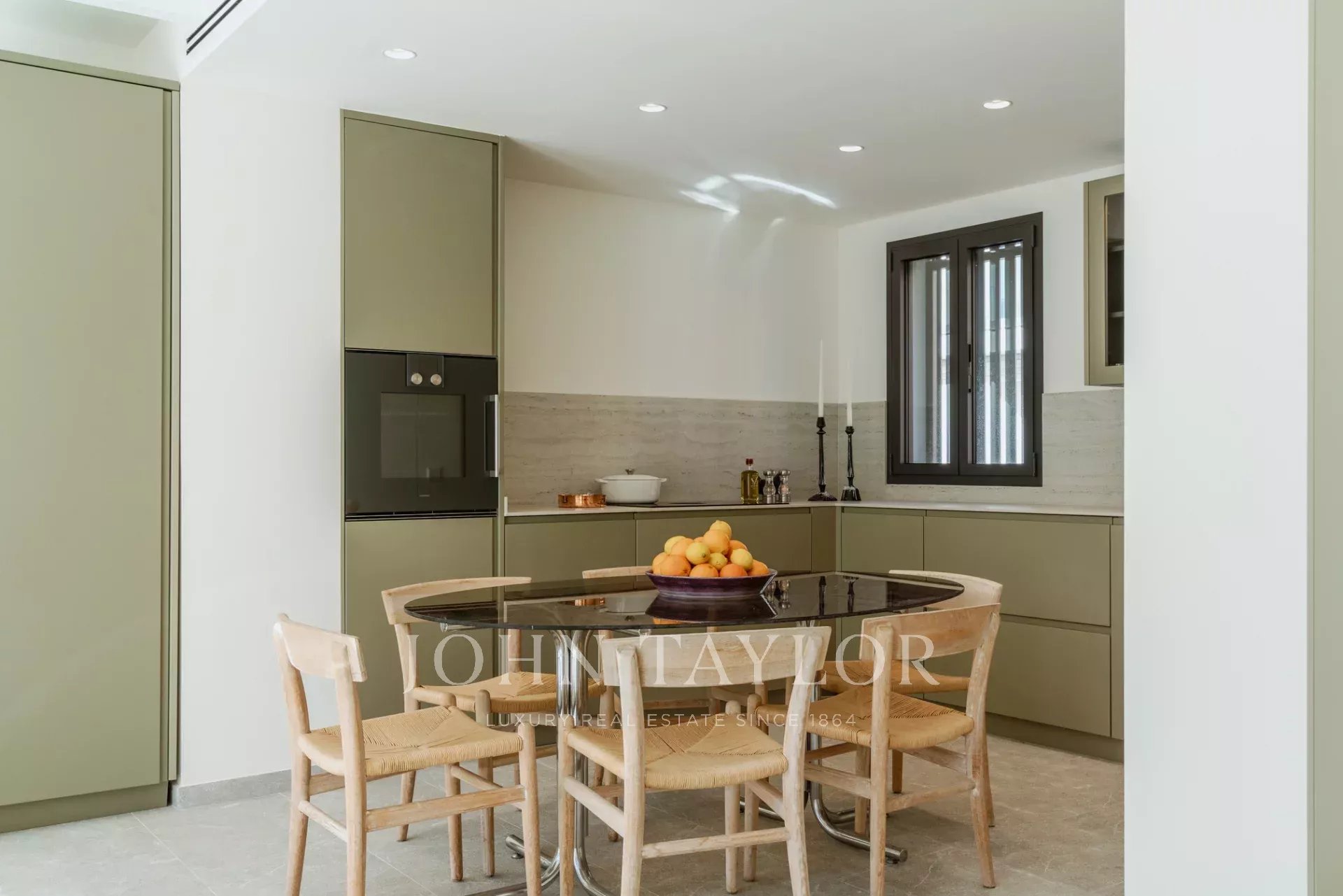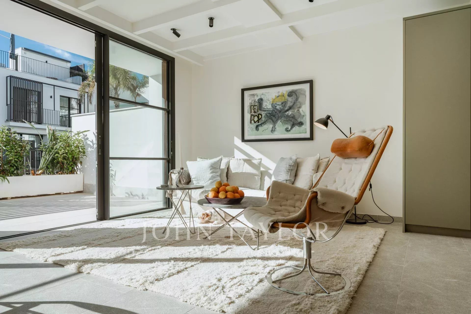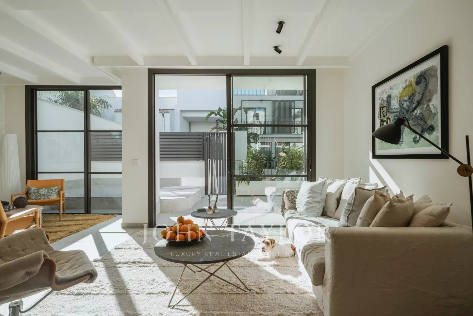 Das 161 m² große Haus erstreckt sich über zwei Etagen und verfügt über einen geräumigen Wohnbereich mit direktem Zugang zu einem 22 m² großen, nach Süden ausgerichteten Bereich, in dem Sie in aller Ruhe die Sonne genießen können. Die geräumige, offene und voll ausgestattete Gaggenau-Küche ist der Traum eines jeden Kochs, mit fortschrittlicher Wasserfilterung, der Möglichkeit, Wasser mit Kohlensäure zuzubereiten, und einem Kühlschrank in voller Größe. Die Küche geht nahtlos in den Wohnbereich und die Leseecke über, und durch das vollständige Öffnen der Terrassenfenster wird das Innere mit dem Äußeren eins.
