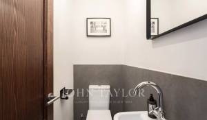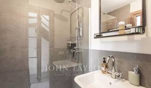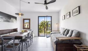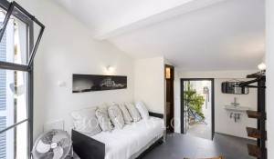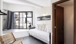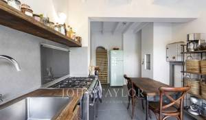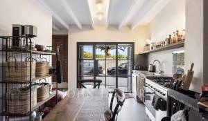 Auf der Eingangsebene befindet sich eine stilvolle, voll ausgestattete Küche, die mit einem Lebensmittelaufzug ausgestattet ist. Im ersten Stock bietet der geräumige Wohn- und Essbereich einen nahtlosen Übergang vom Innen- zum Außenbereich, begleitet von einem kompletten Badezimmer und einem Gästebad.