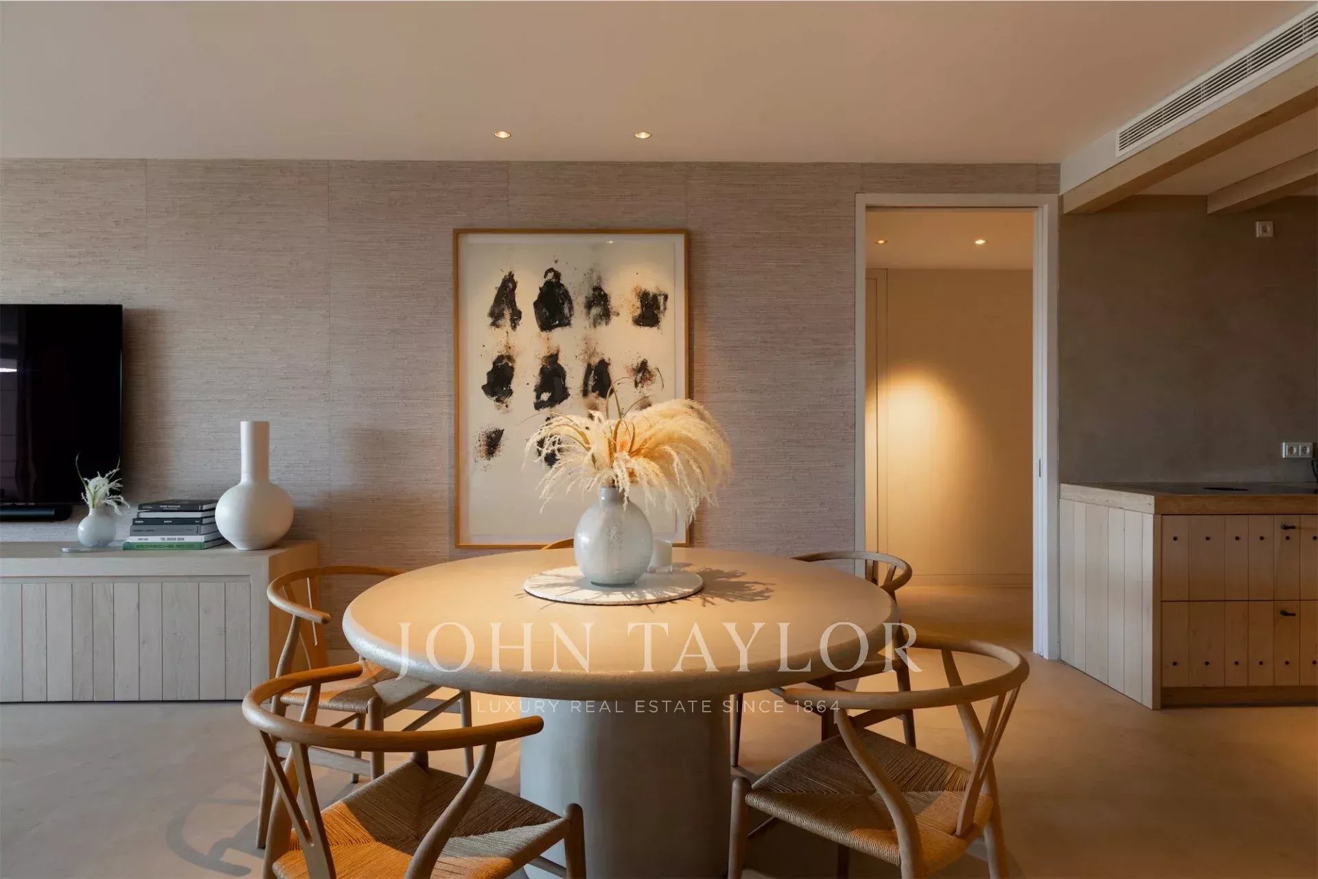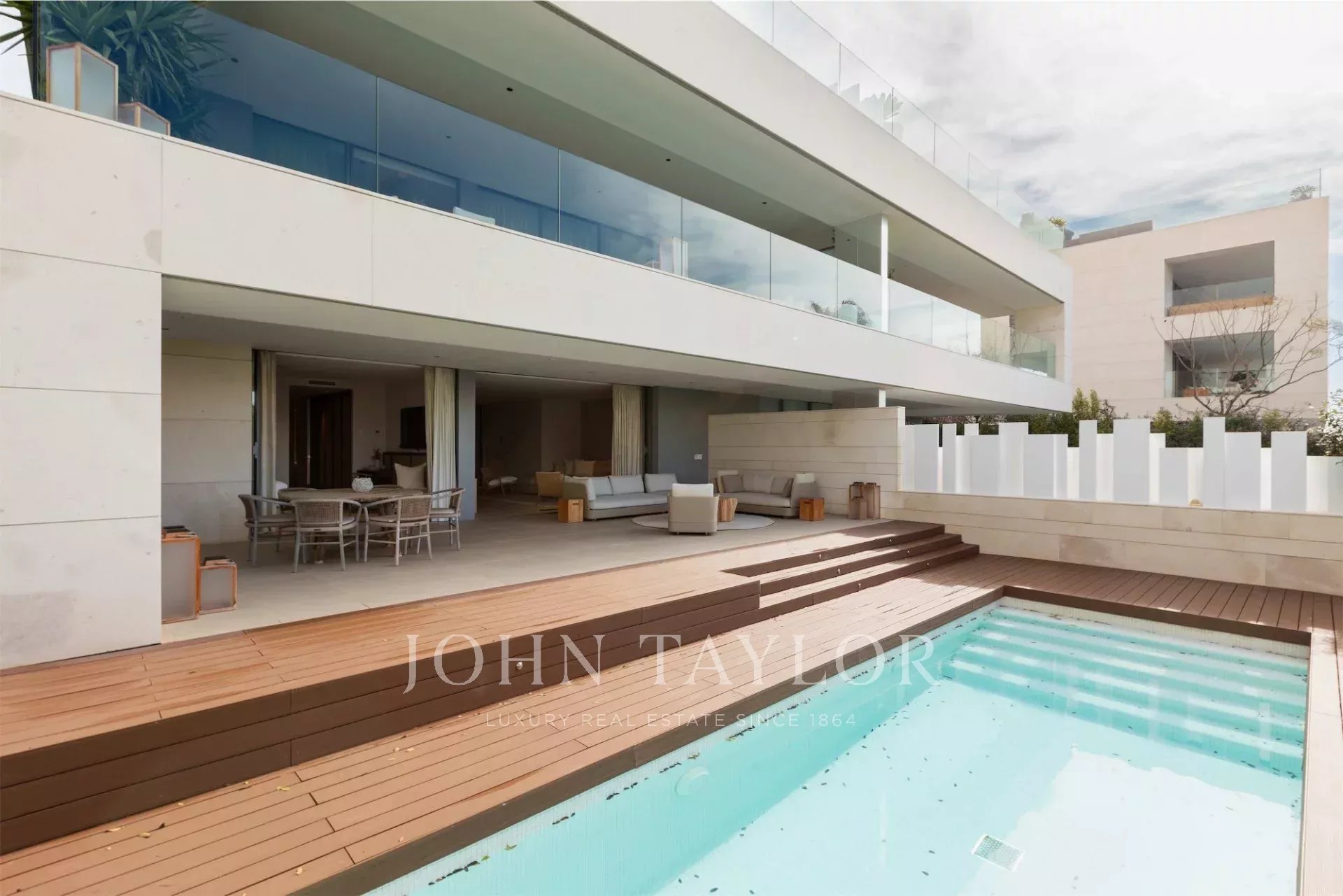 Die Immobilie wird vollständig möbliert und ausgestattet verkauft. Sie umfasst vier Stellplätze in der Tiefgarage, zwei Abstellräume, integriertes Soundsystem, Fußbodenheizung, Klimaanlage nach Zonen und ein modernes Smart-Home-System.