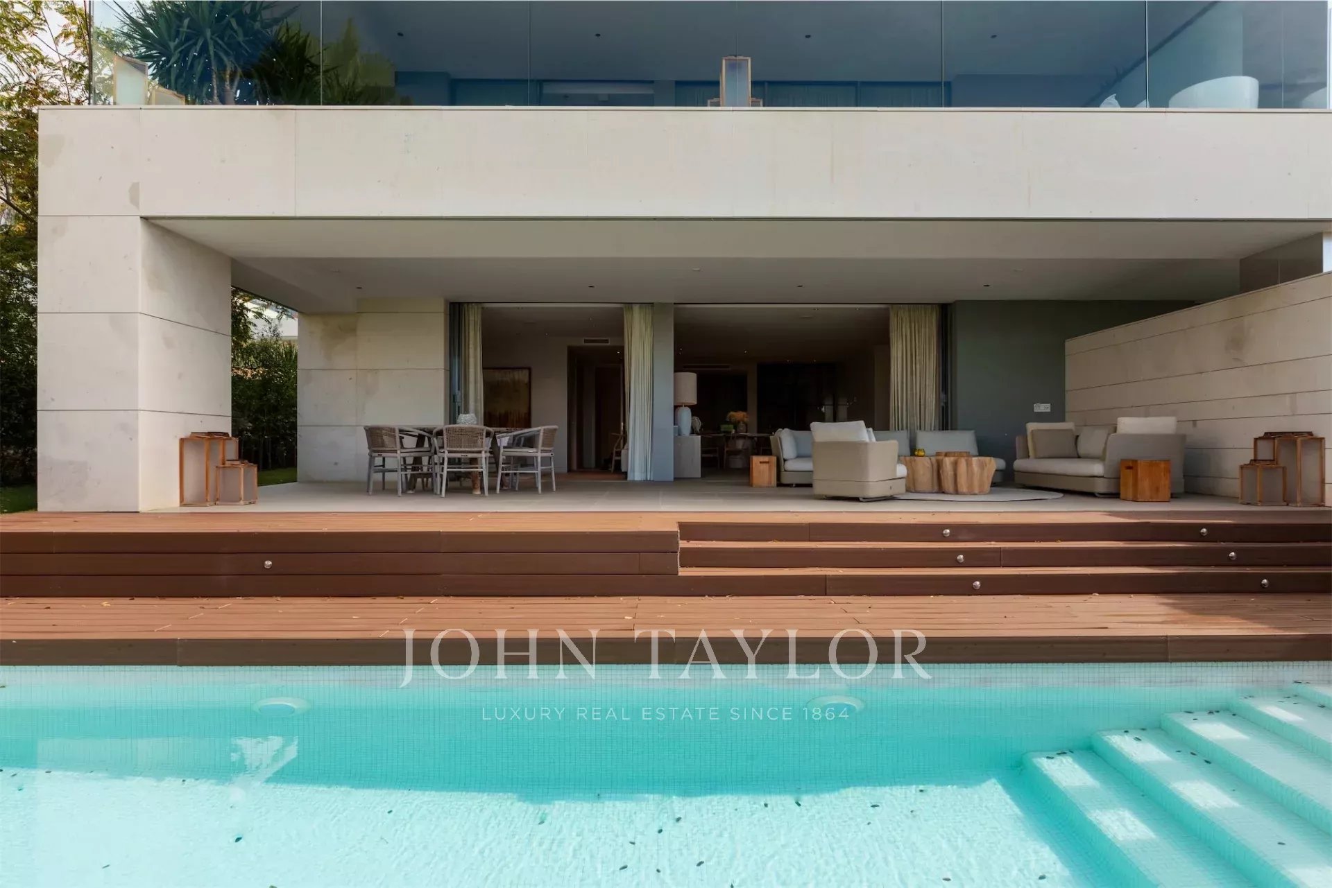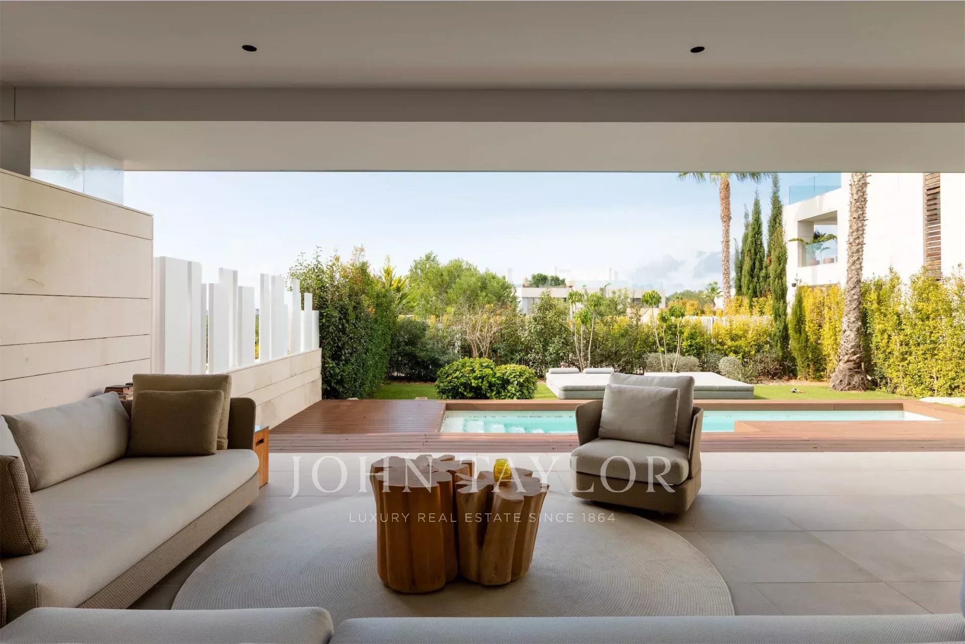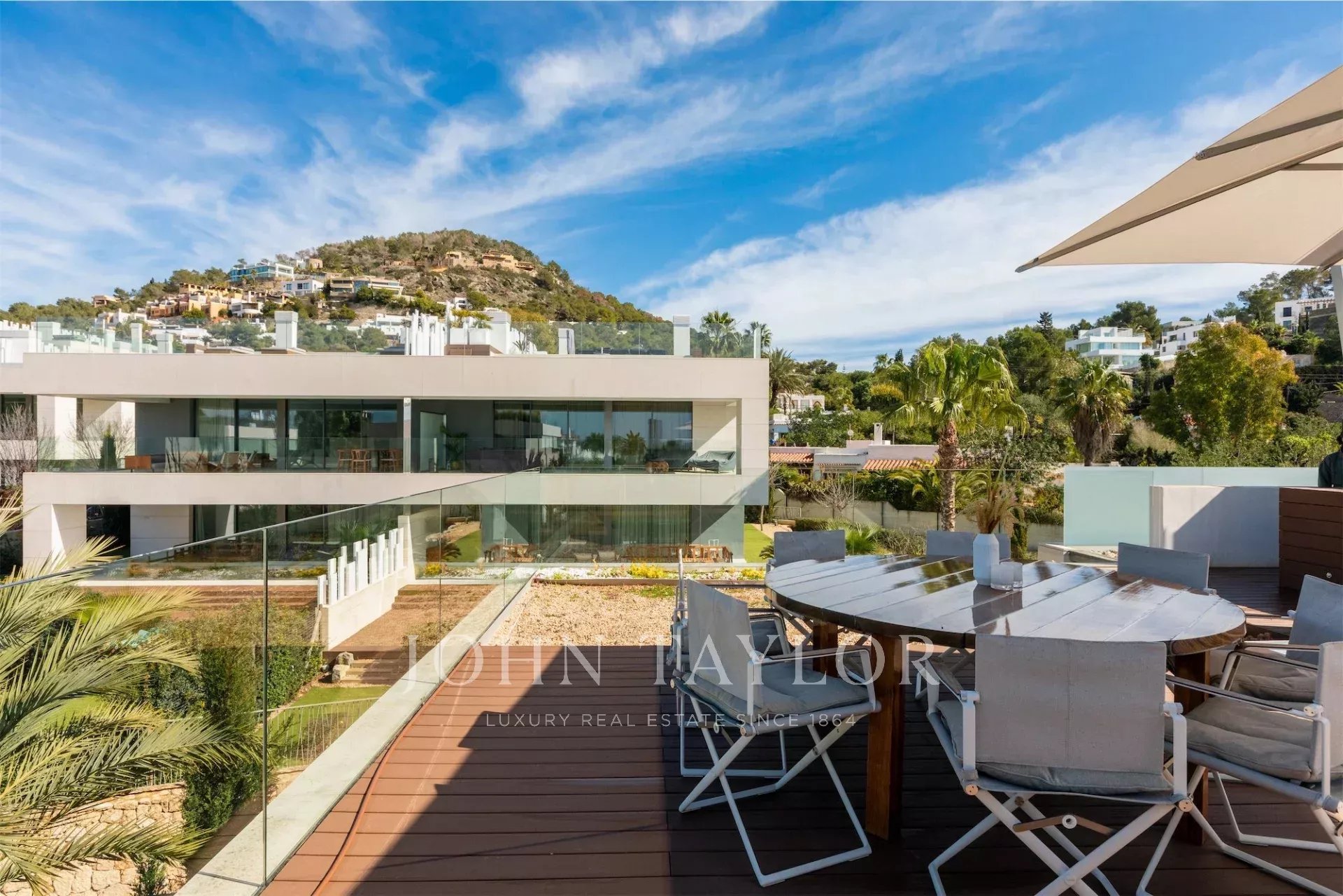 Das Highlight ist die Dachterrasse mit zweitem privaten Pool, Lounge-Bereich und spektakulärem Panoramablick. Dank Südwest-Ausrichtung genießt man hier Sonne den ganzen Tag.