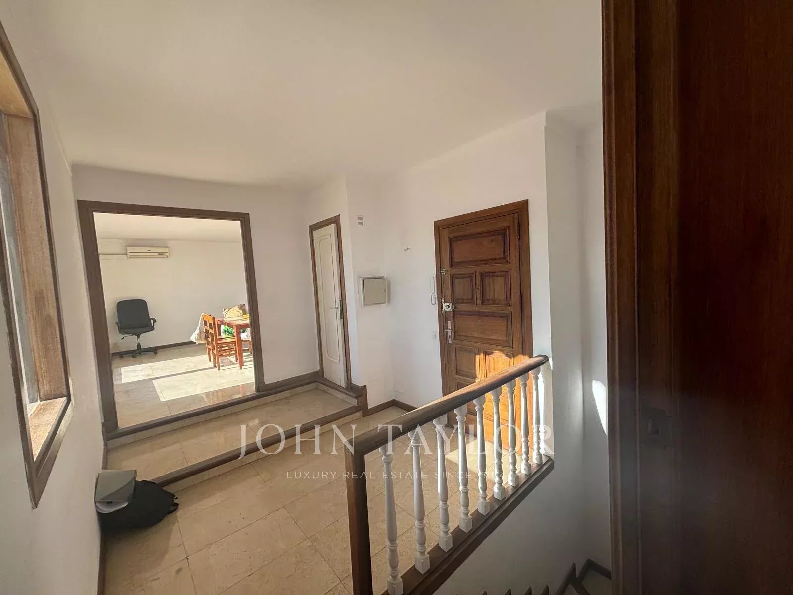 Im oberen Stockwerk führt ein geräumiger Eingangsbereich zu einem Wohnzimmer mit Blick auf Dalt Vila, einem separaten Esszimmer mit Blick auf den Hafen und das Meer sowie einer unabhängigen Küche. Außerdem gibt es ein eigenständiges Apartment mit eigenem Eingang, bestehend aus Küche, Wohnzimmer mit Kamin, einem Schlafzimmer und einem Bad mit Dusche.