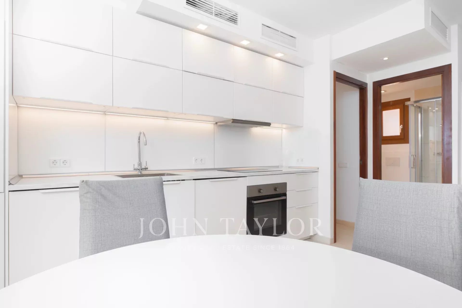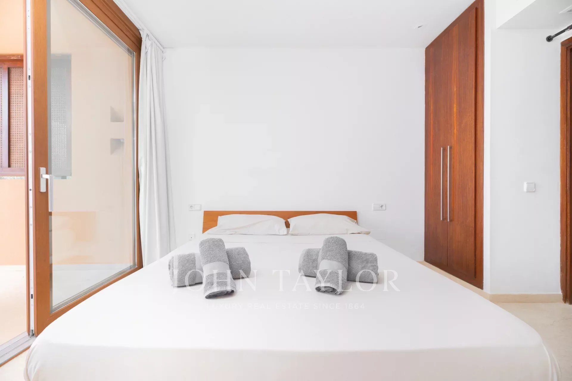 Das Innere der Wohnung ist so gestaltet, dass es Komfort und Funktionalität vereint, mit einer gut durchdachten Raumaufteilung, die zwei helle Schlafzimmer und zwei Badezimmer umfasst. Die Kombination aus natürlichem Licht und modernem Design schafft eine einladende und geräumige Atmosphäre, ideal sowohl als Hauptwohnsitz als auch als Feriendomizil.