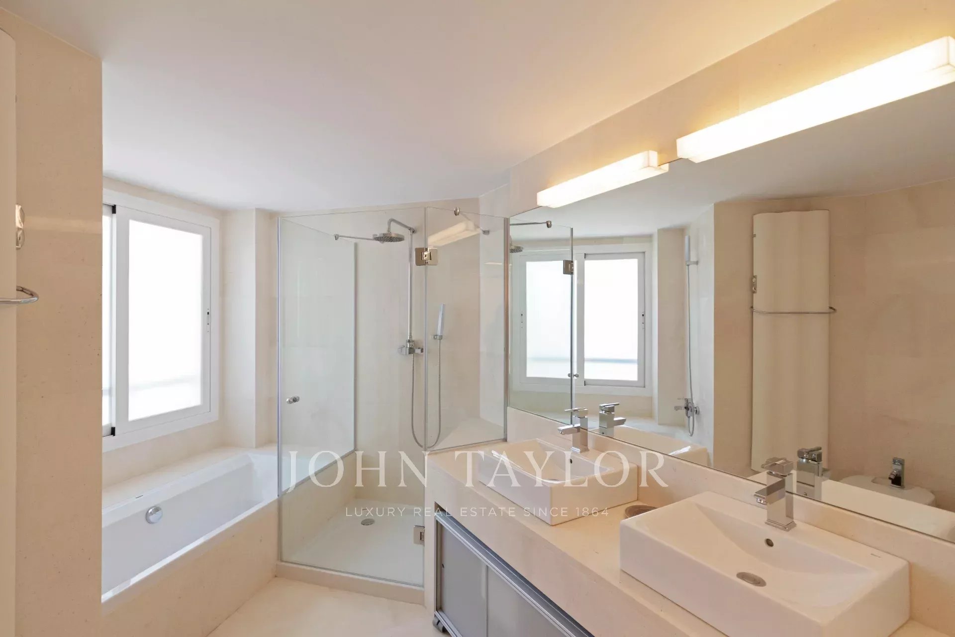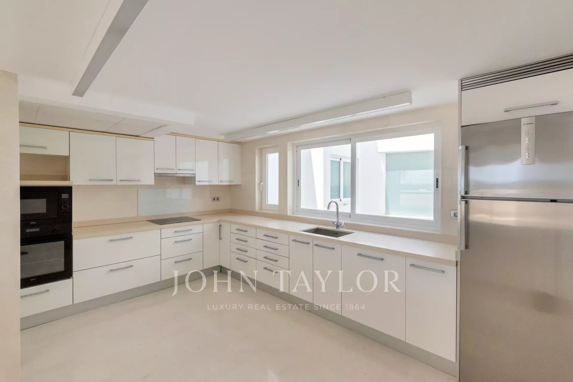 Exklusives 254 m² großes Penthouse, das Großzügigkeit, Komfort und wirklich spektakuläre Meerblicke vereint. Die Wohnung verfügt über vier Schlafzimmer, drei voll ausgestattete Badezimmer, eine offene amerikanische Küche, die in den geräumigen Wohn-Essbereich integriert ist, und eine große Hauptterrasse von über 40 m² mit freiem Meerblick – ideal zum Entspannen oder um die frische Luft zu genießen.