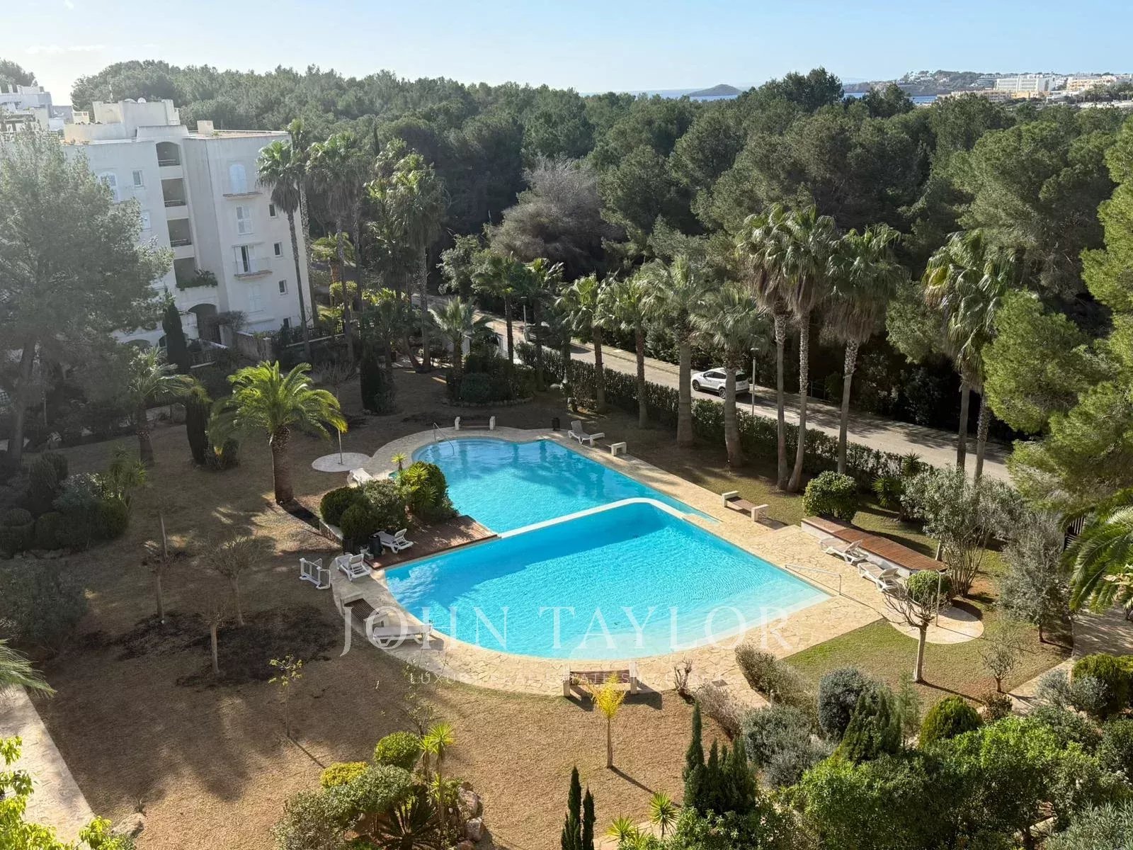 Die Wohnanlage verfügt über ca. 7.000 m² gepflegte Gärten, zwei Pools und Padelplätze und liegt etwa 400 Meter vom Strand entfernt sowie nur wenige Fahrminuten von Santa Eulalia del Río. Eine ideale Immobilie für alle, die Ruhe, Meerblick und großzügige Außenflächen im Norden Ibizas suchen.