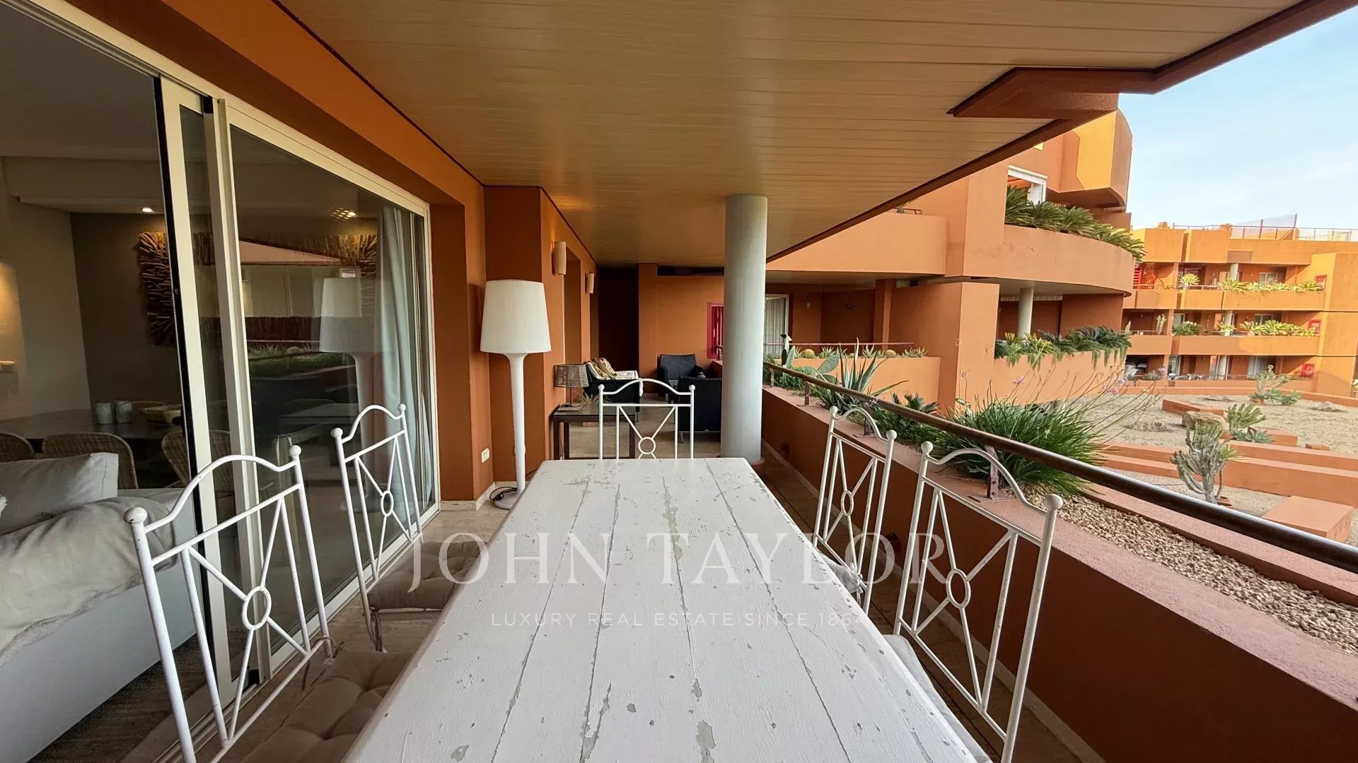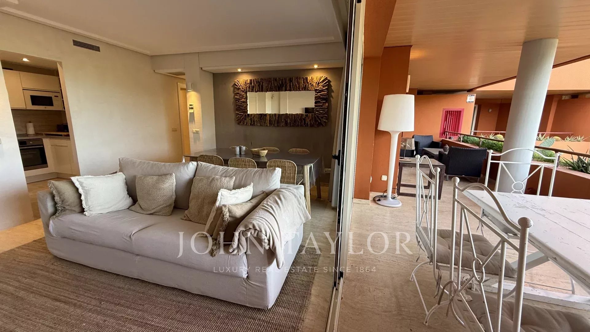 Im Außenbereich lädt eine großzügige Terrasse dazu ein, das mediterrane Klima in vollen Zügen zu genießen. Dieser Bereich, ideal für Mahlzeiten im Freien, wird durch eine gepflegte Chill-out-Zone ergänzt, die perfekt zum Entspannen und zum Genießen der umliegenden Natur geeignet ist.