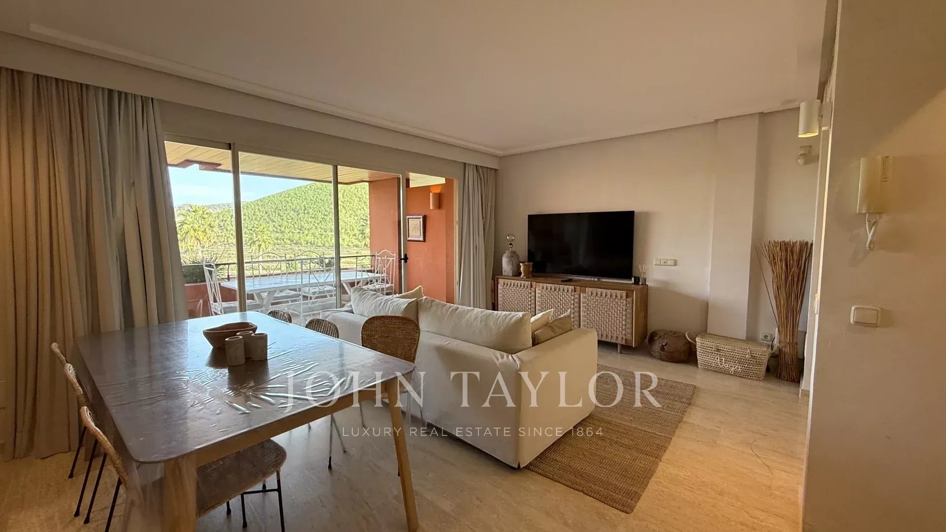 Die Immobilie verfügt über zwei Doppelschlafzimmer – eines davon mit eigenem Bad – sowie ein drittes Einzelzimmer, das als weiteres Schlafzimmer, Büro oder Gästebereich genutzt werden kann. Das helle und großzügige Wohn-Esszimmer öffnet sich zu den Bergen hin und vermittelt ein anhaltendes Gefühl von Ruhe und Weite.