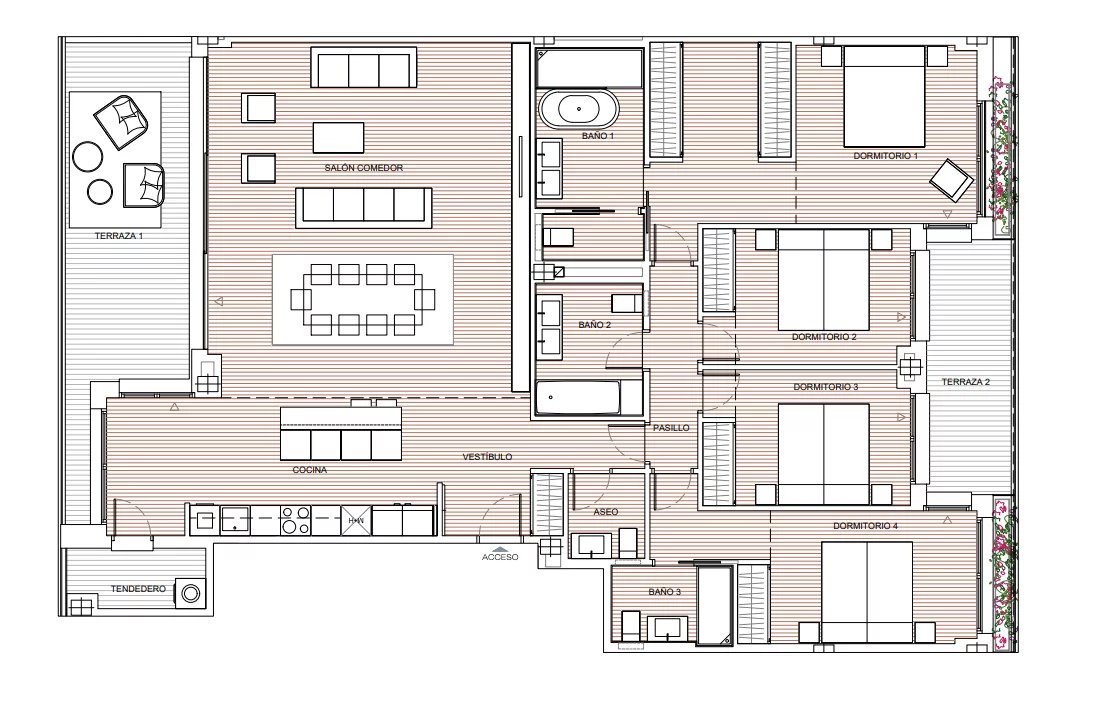 Bei John Taylor präsentieren wir Ihnen diese exklusive, 234 m² große Wohnung, die für diejenigen gedacht ist, die einen außergewöhnlichen Lebensstil suchen. Die Immobilie besticht durch ihre Helligkeit und ihre fließende Architektur, die ein elegantes Wohn-Esszimmer mit großen Fenstern und Zugang zu einer der Terrassen verbindet, die das ganze Jahr über zum Leben im Freien einladen. Die Küche mit modernem Design und hochwertigen Geräten ist dank einer imposanten Insel in der Mitte perfekt integriert und wird so zum wahren Herzstück der Wohnung. Ein praktischer Waschraum und ein Gäste-WC vervollständigen den Sozialbereich.