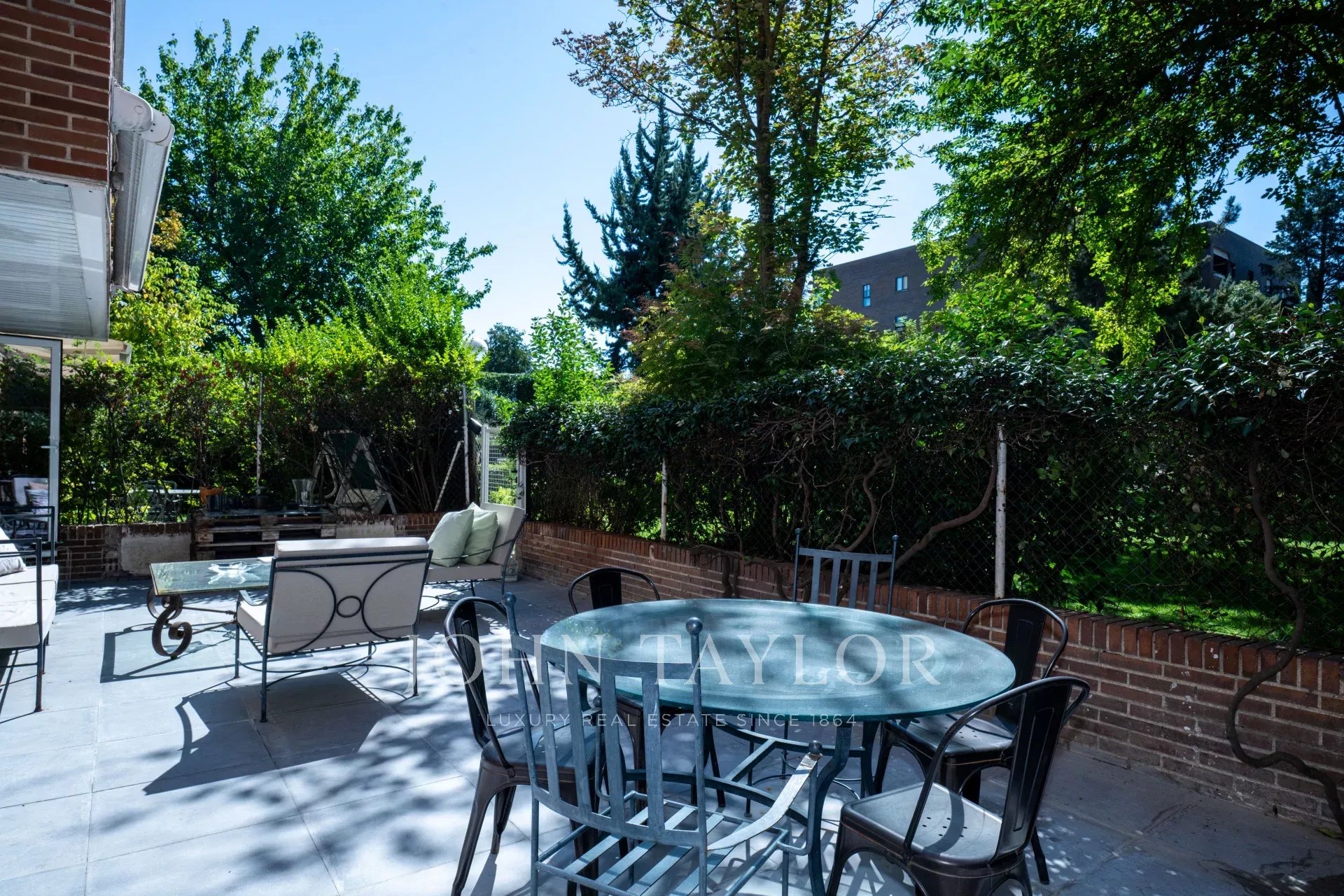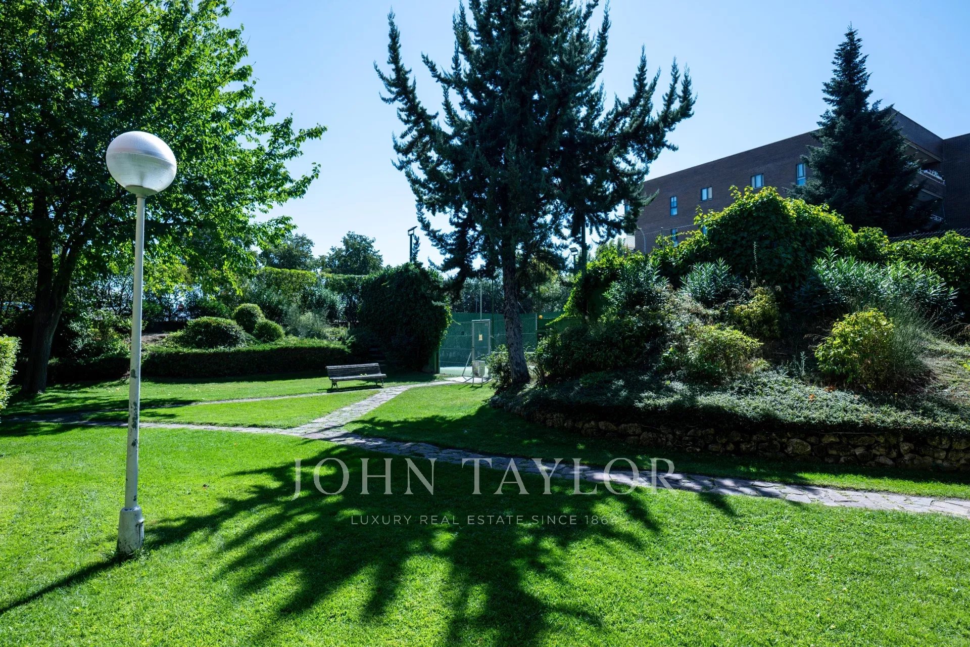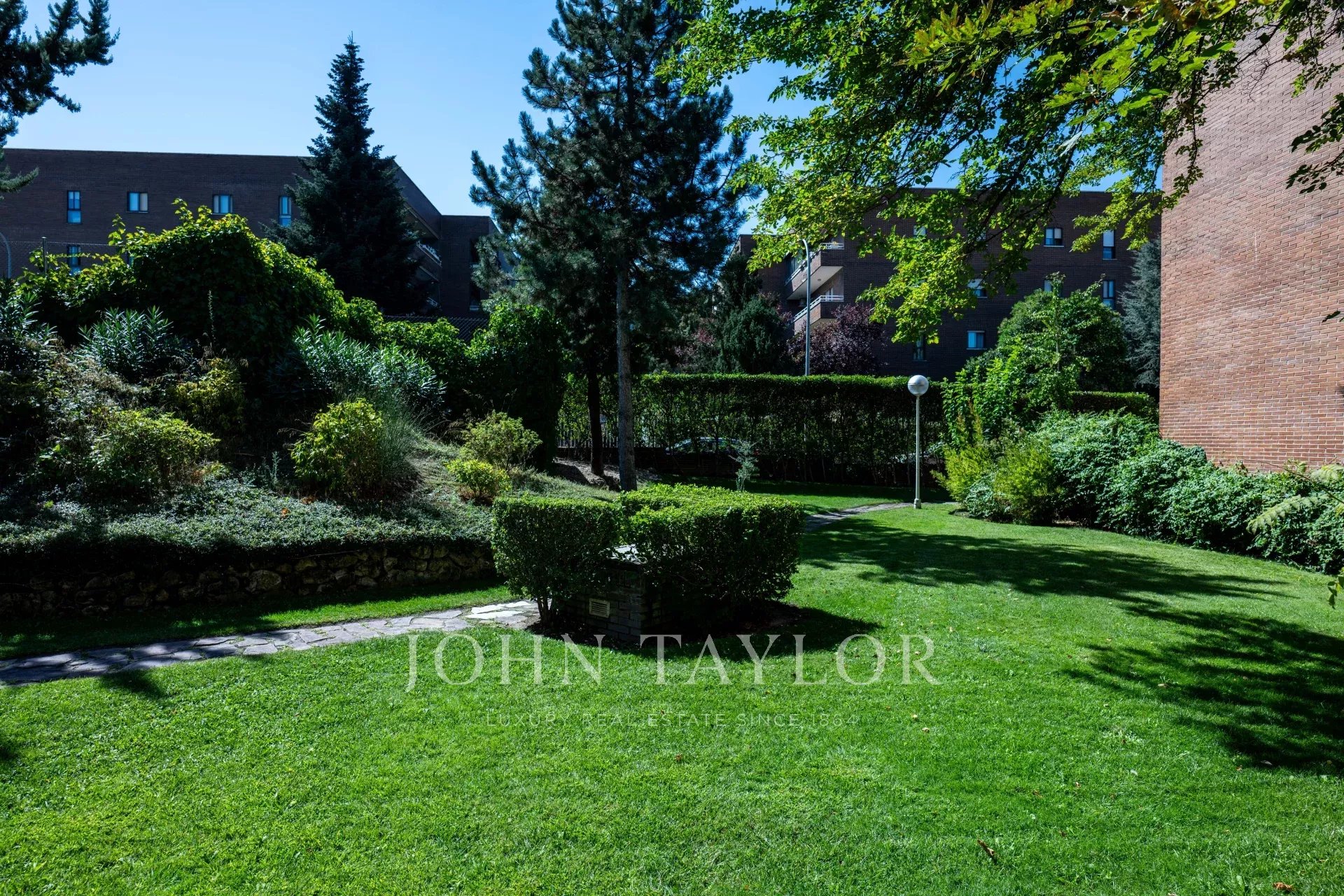John Taylor präsentiert diese prächtige Wohnung, ein Außenerdgeschoss mit Aufzug, in Pozuelo de Alarcón, einer der exklusivsten und begehrtesten Wohngegenden von Madrid. Mit einer bebauten Fläche von 164 m².