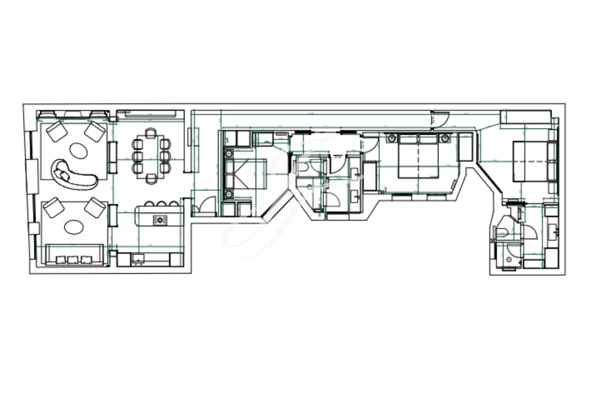 Mit 149 m², 3 Meter hohen Decken und Westausrichtung bietet die Immobilie drei Schlafzimmer und zwei Bäder, die so verteilt sind, dass Helligkeit und Großzügigkeit in jedem Raum wahrgenommen werden. Die drei Balkone sorgen für Licht und Ausblicke auf die elegante Umgebung, während die Höhe des Grundrisses das Gefühl von Großzügigkeit noch verstärkt.
