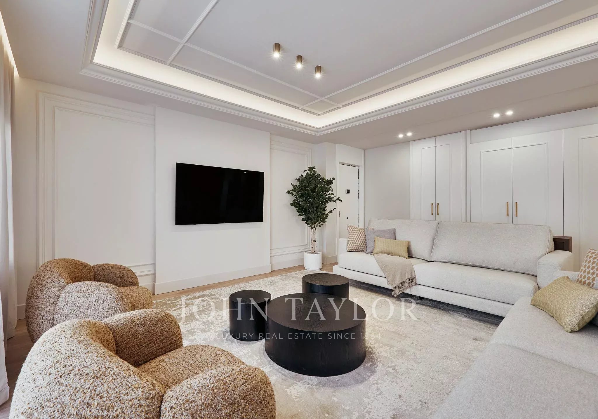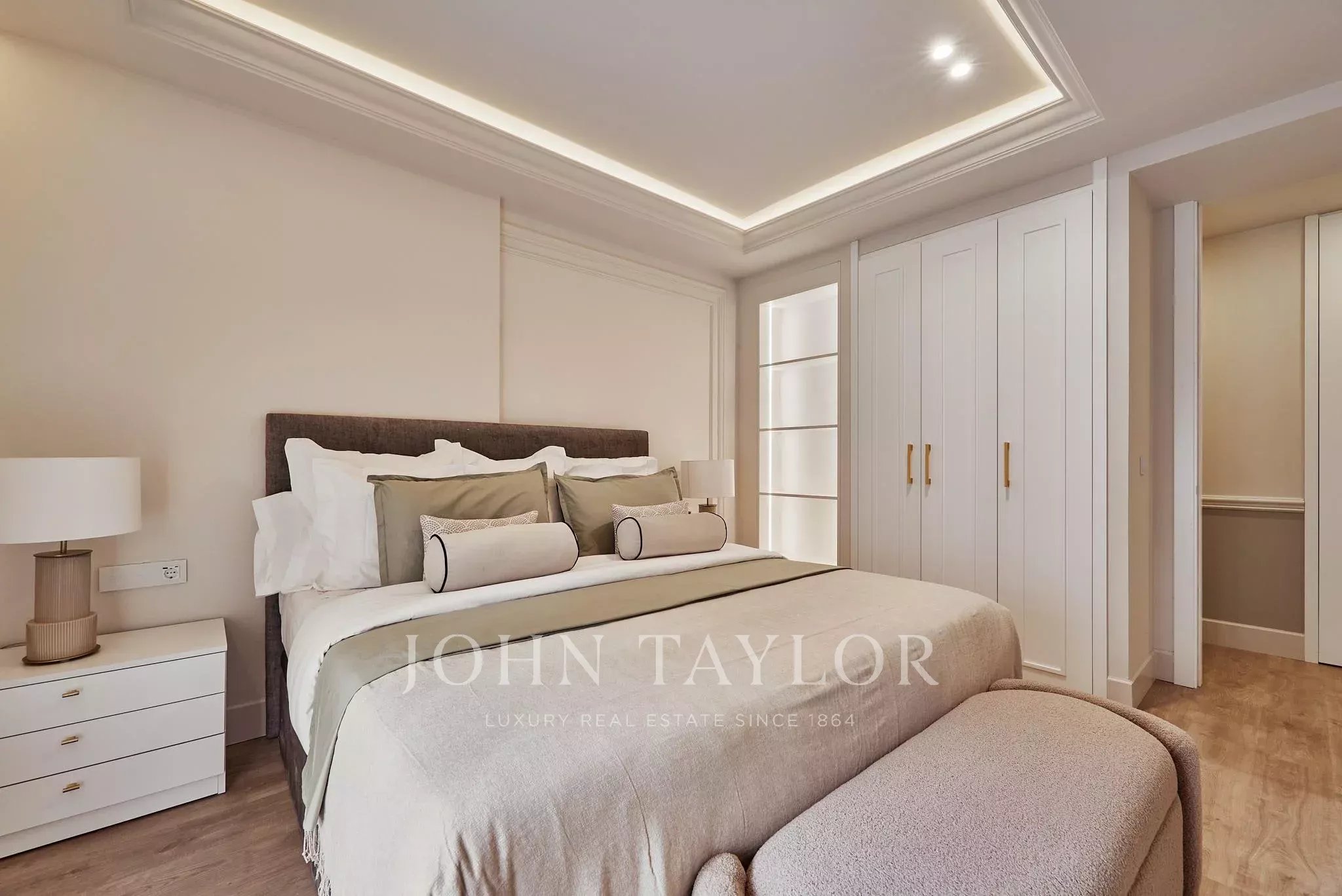 Die Wohnung verfügt über fünf Schlafzimmer und fünf voll ausgestattete Badezimmer sowie eine Gästetoilette. Die sorgfältige Raumaufteilung gewährleistet Privatsphäre in jedem Raum, inklusive Ankleidezimmer und großzügigen Flächen, die ihr exklusives Wesen unterstreichen.