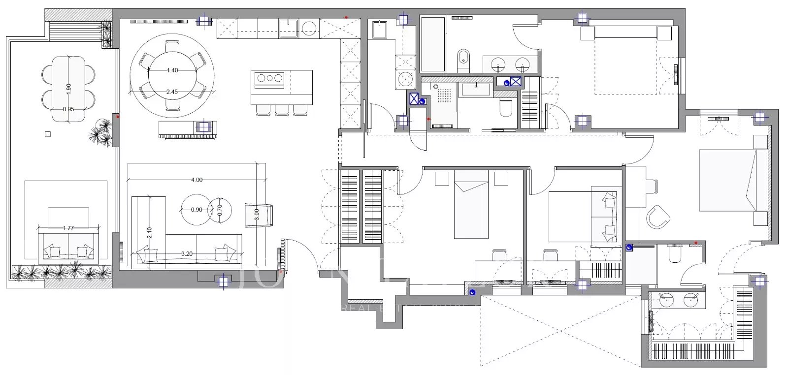 Die Wohnung verfügt über vier Zimmer und drei Badezimmer, mit einer Verteilung, die jeden Quadratmeter großzügig nutzt. Die integrierte Hausautomation ermöglicht die Verwaltung des Heims mit höchstem Komfort, und der Erhaltungszustand ist makellos, bereit für Einzug ohne jeglichen Interventionen.