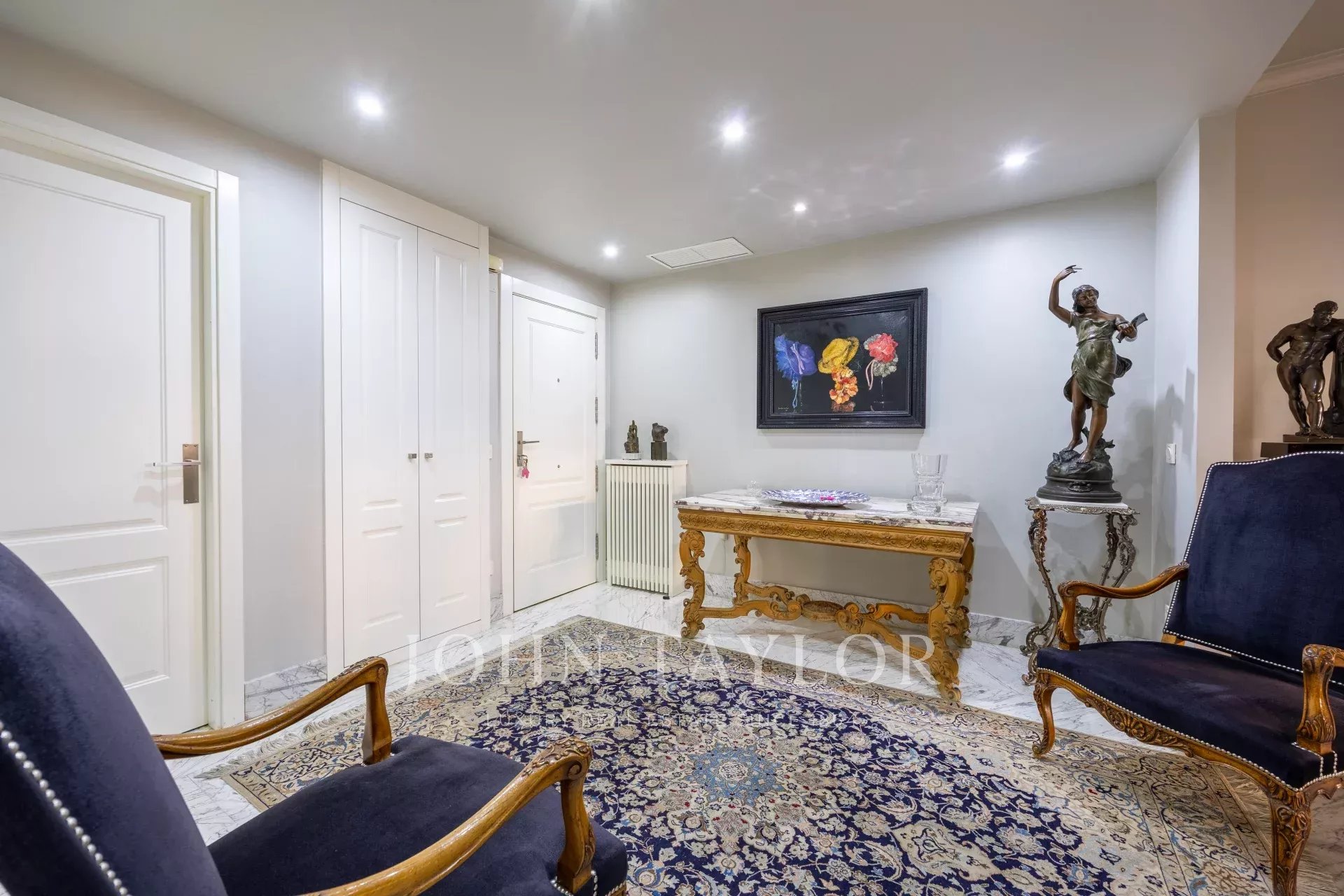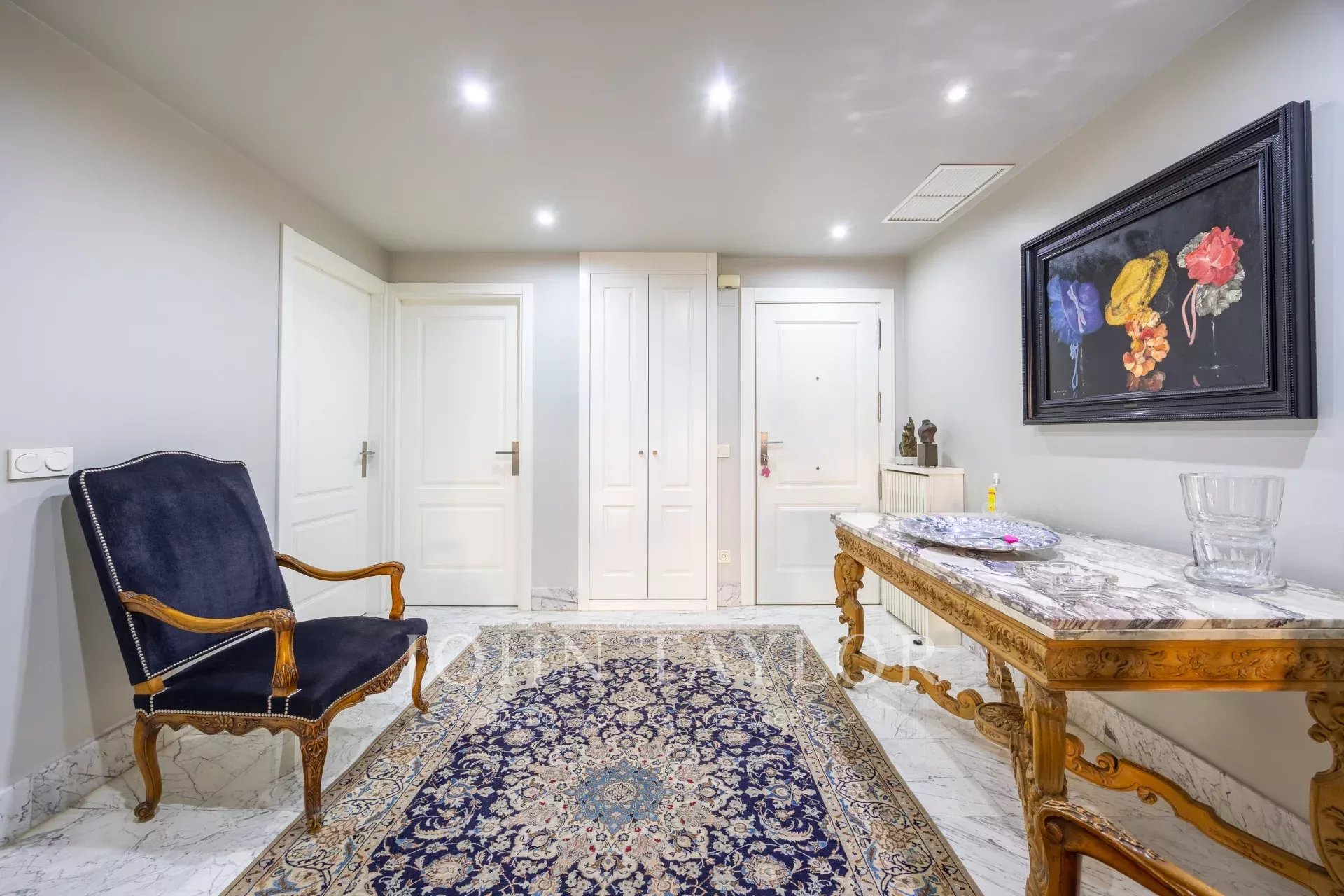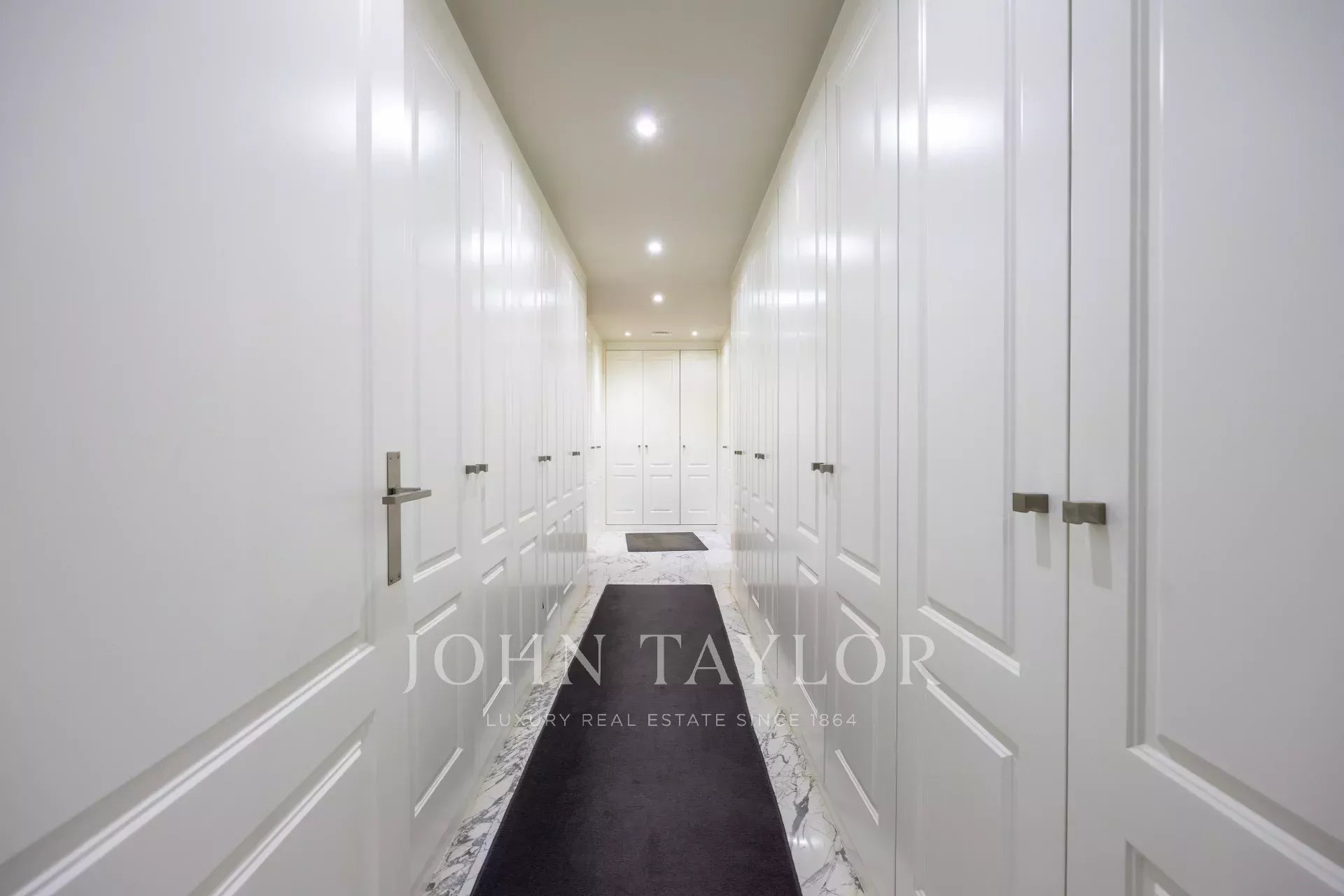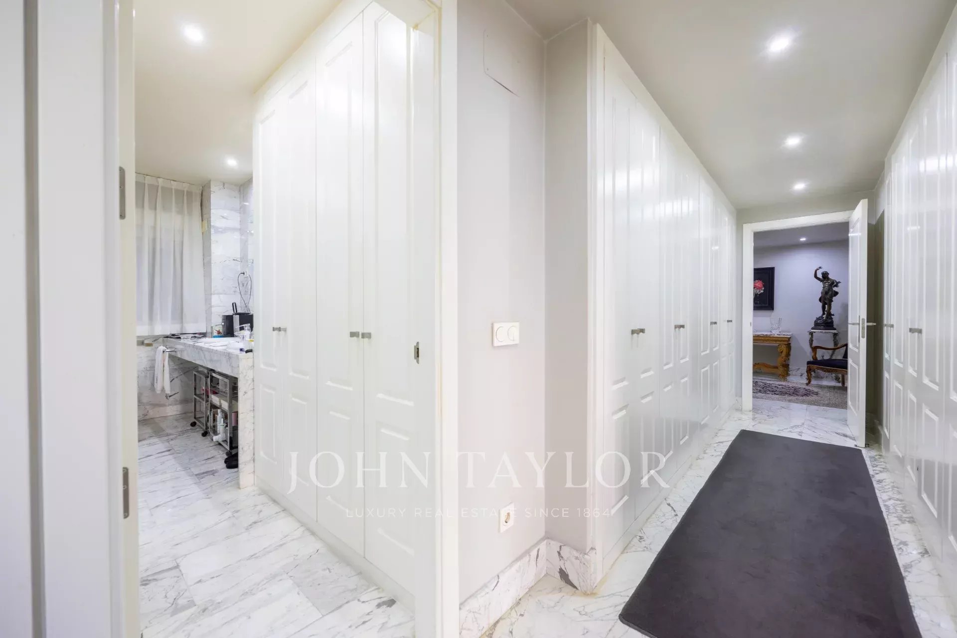 Das Anwesen verfügt über eine Eingangshalle mit Garderobe, die zum Wohn- / Esszimmer mit Zugang zum Balkon führt. Es gibt drei große Schlafzimmer mit eigenem Bad, eines davon mit Zugang zu einer nach Westen ausgerichteten Terrasse mit Blick auf einen großen Innenhof. Das Hauptschlafzimmer hat einen eigenen Balkon und einen großen Ankleidebereich mit mehr als 15 Türen und Balkon auf der Vorderseite.