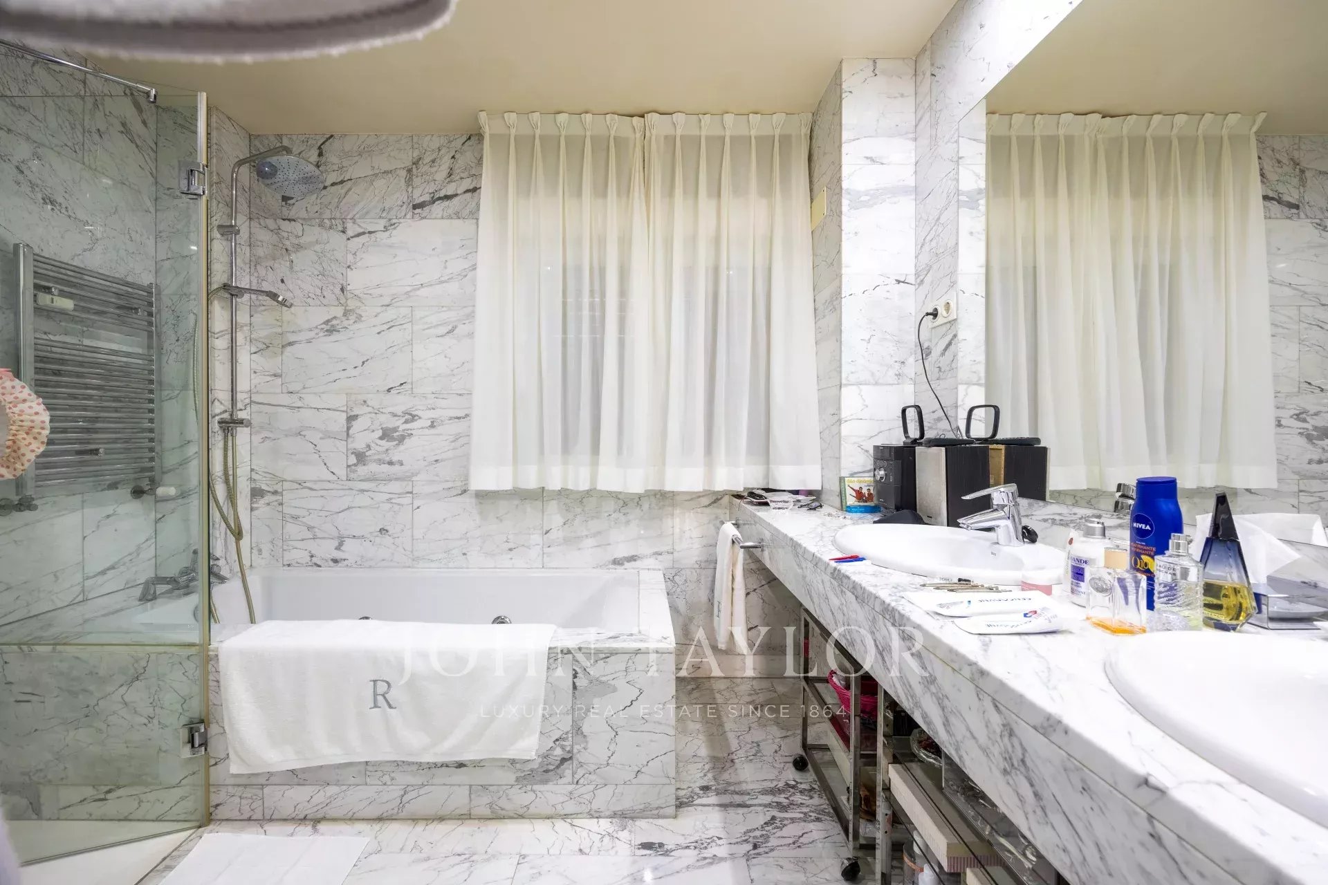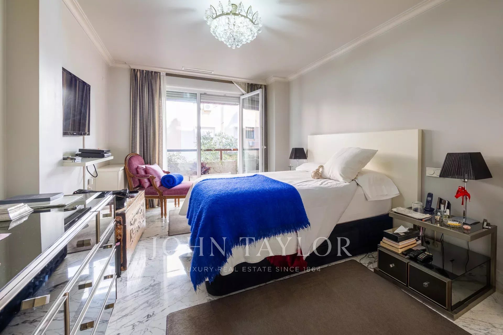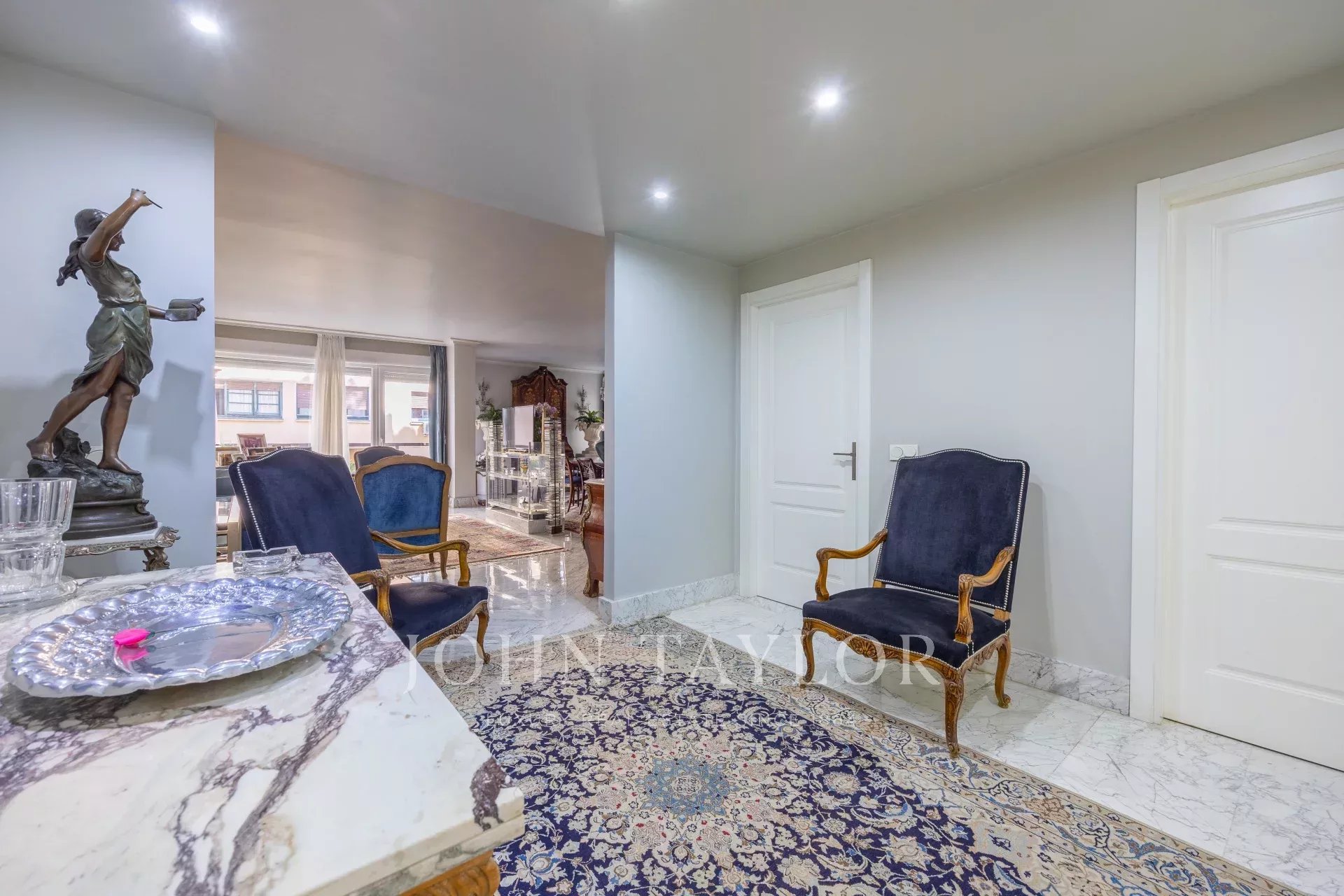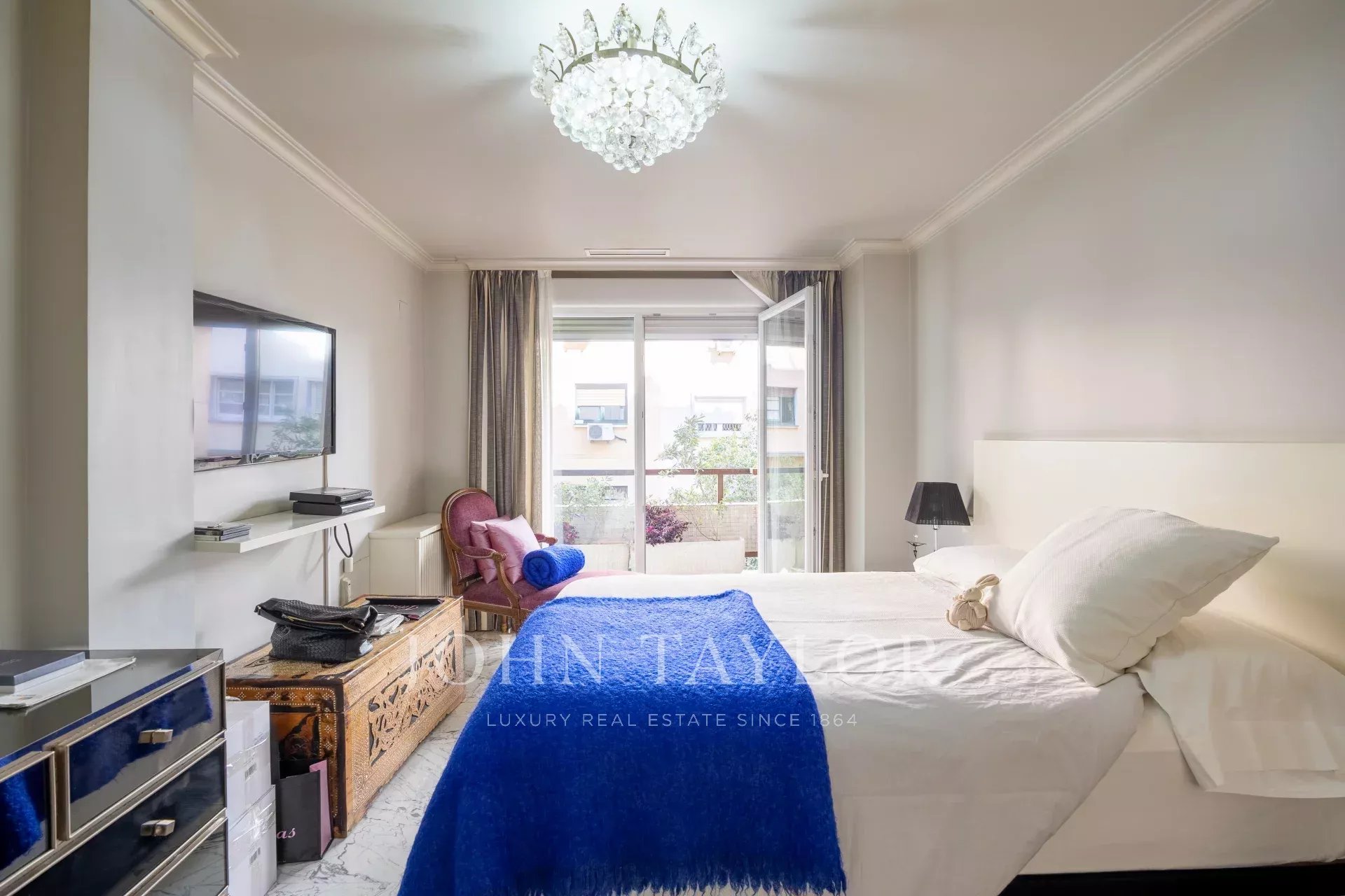 Das Anwesen verfügt über eine Eingangshalle mit Garderobe, die zum Wohn- / Esszimmer mit Zugang zum Balkon führt. Es gibt drei große Schlafzimmer mit eigenem Bad, eines davon mit Zugang zu einer nach Westen ausgerichteten Terrasse mit Blick auf einen großen Innenhof. Das Hauptschlafzimmer hat einen eigenen Balkon und einen großen Ankleidebereich mit mehr als 15 Türen und Balkon auf der Vorderseite.