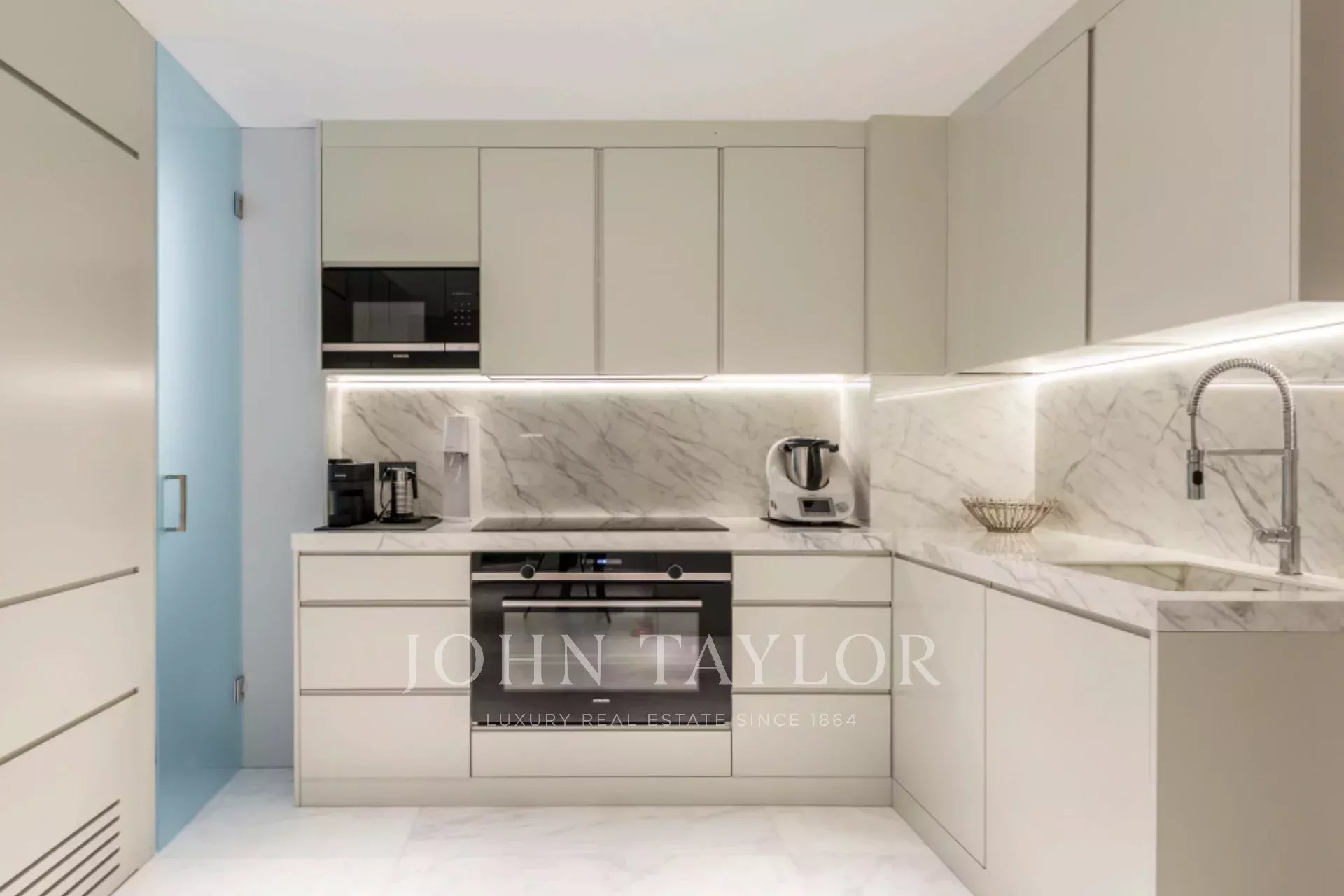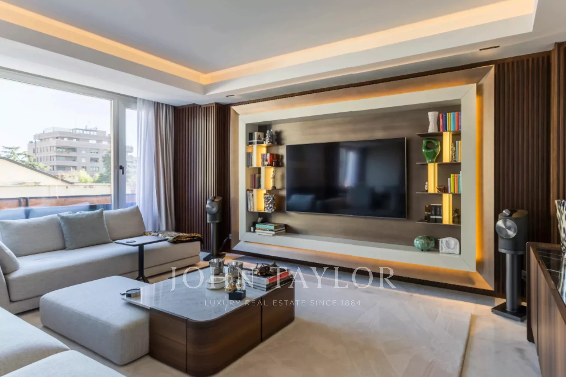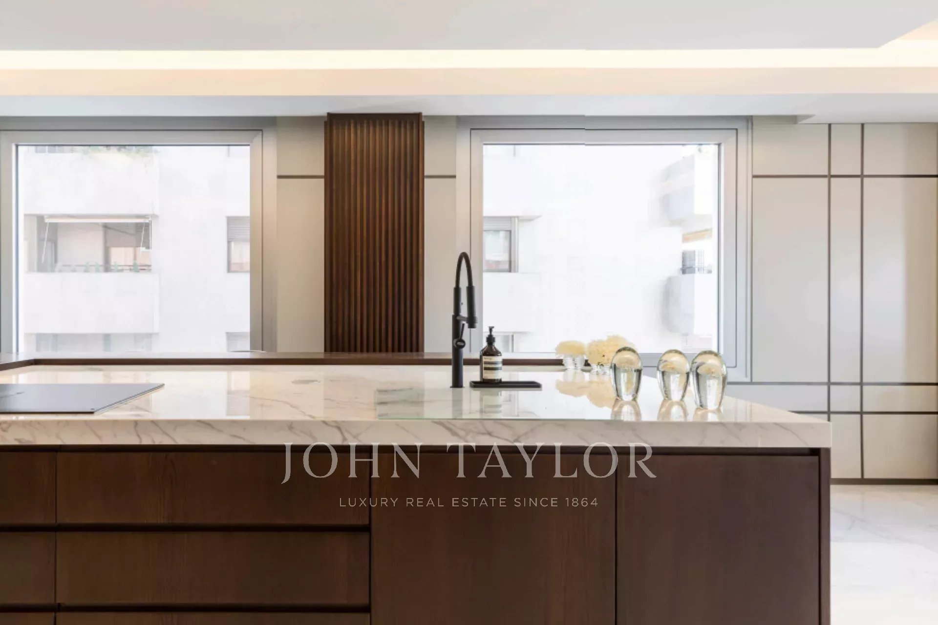 Hohe Decken und maßgefertigte italienische Möbel sowie fortschrittliche Technologien wie das Casambi-Lichtsteuerungssystem und das B&W-Soundsystem schaffen eine Atmosphäre von Luxus und Raffinesse. Dank der großen, nach Osten und Norden ausgerichteten Fenster und der nach Westen ausgerichteten Fenster verfügt die Wohnung über eine hervorragende natürliche Belichtung.