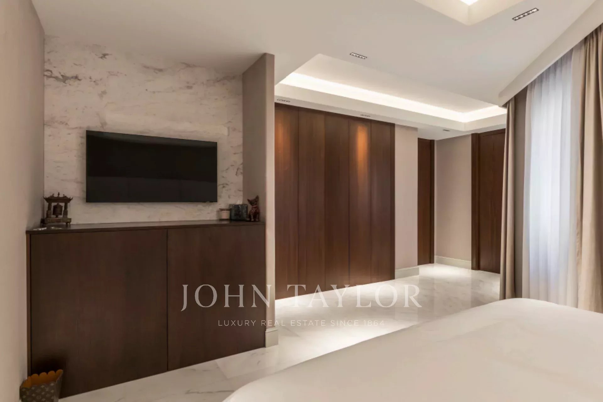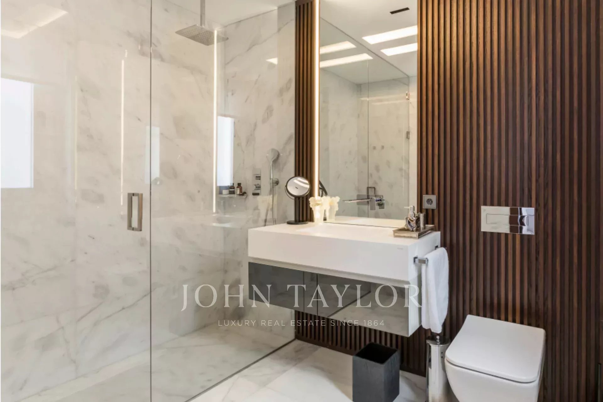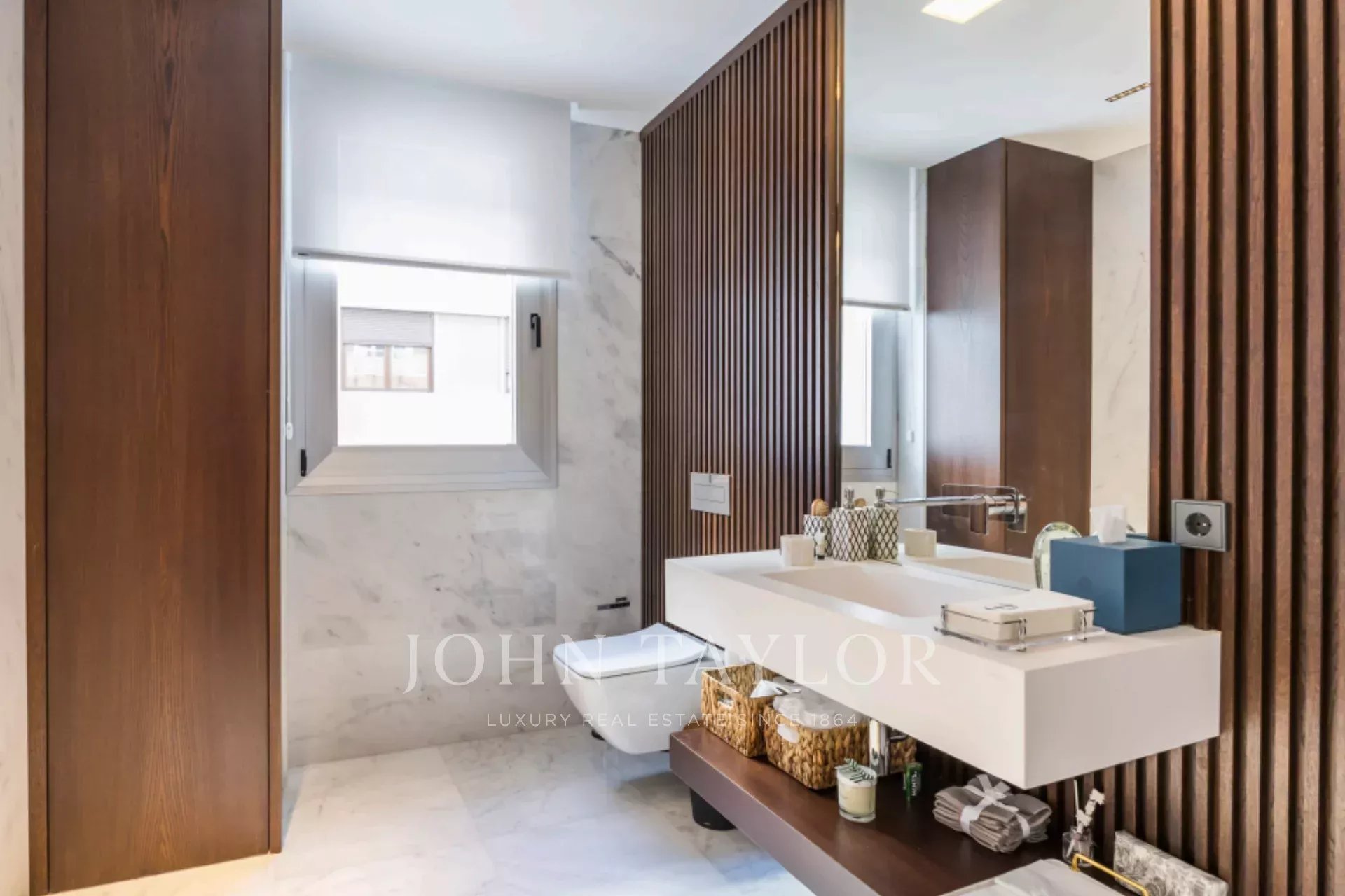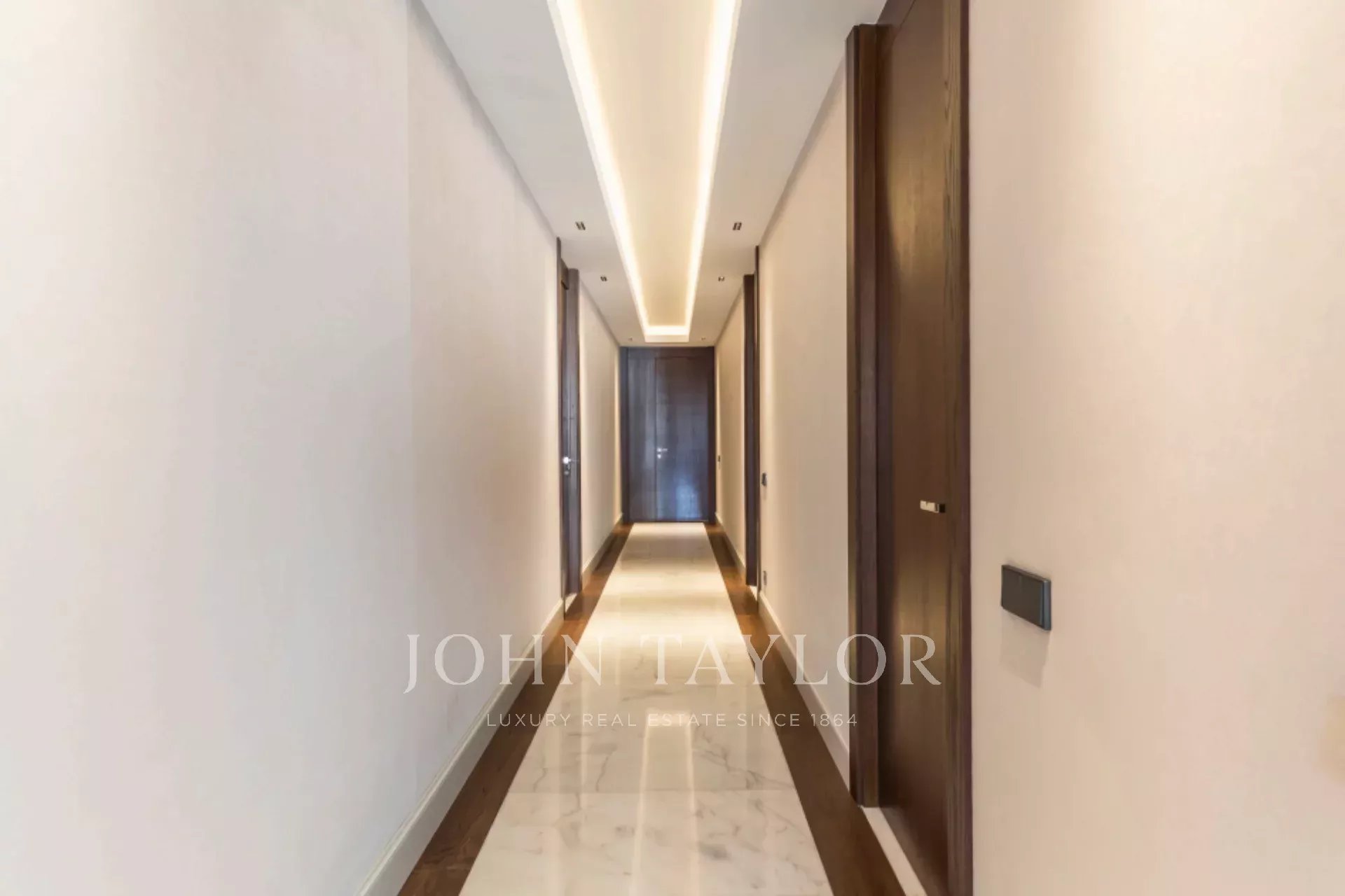 Der Schlafbereich besteht aus drei Schlafzimmern mit eigenem Bad, geräumigen Schränken und modernen Bädern, die mit Marmor und Holz ausgestattet sind. Das Casambi-System ermöglicht es außerdem, die Beleuchtung an die jeweiligen Bedürfnisse anzupassen und so eine entspannte und komfortable Umgebung zu schaffen. Fußbodenheizung und -kühlung, die mit aerothermischer Energie betrieben werden, sorgen für außergewöhnlichen Komfort bei reduziertem Energieverbrauch.