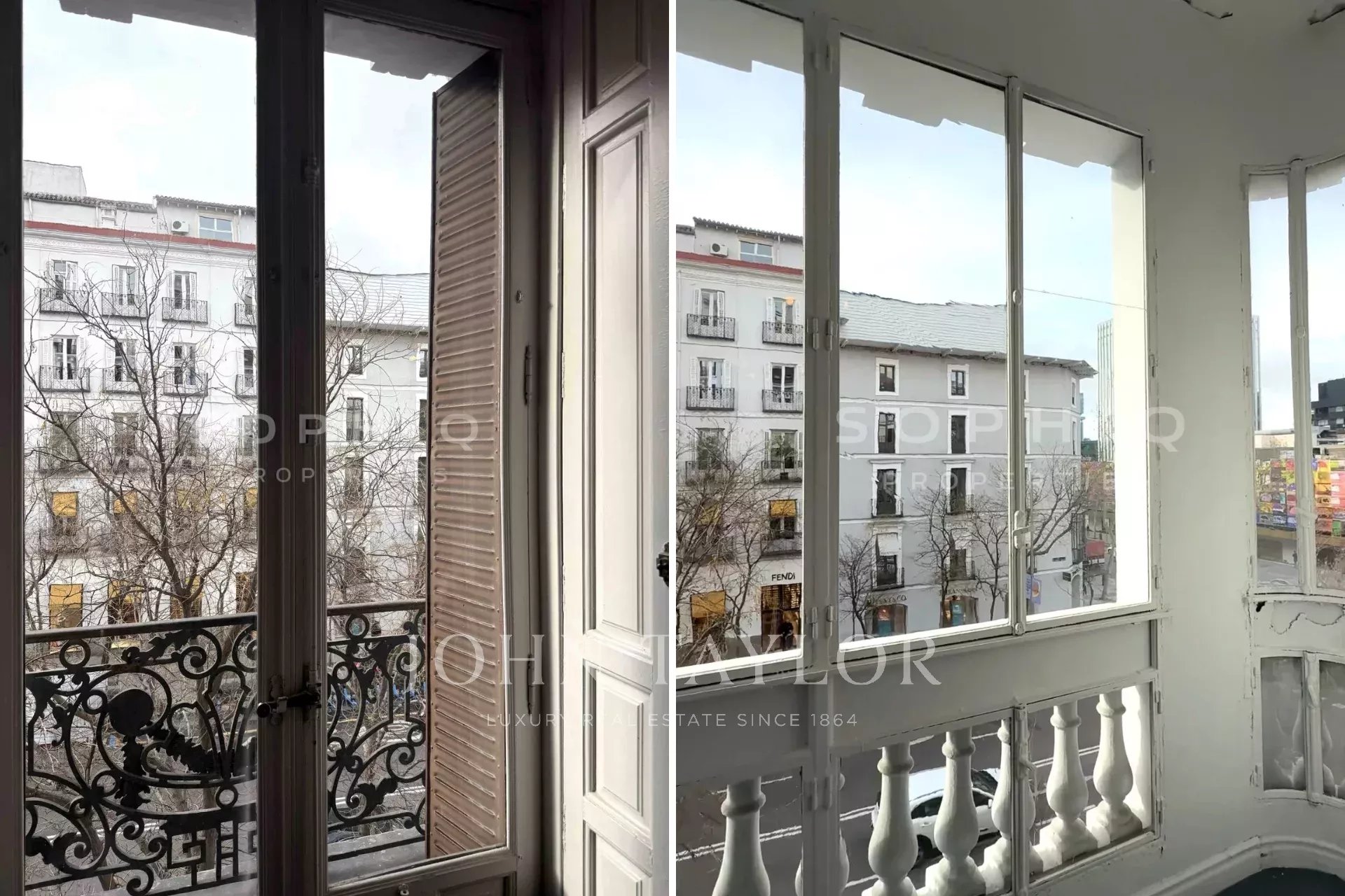 Exklusive, zu renovierende Immobilie in einem der elegantesten und stattlichsten Gebäude in der prestigeträchtigen Straße von José Ortega y Gasset, die ein einzigartiges Wohnerlebnis bietet. Mit einer Südausrichtung und freiem Blick nach Westen, genießt es eine Fülle von natürlichem Licht den ganzen Tag. Die 3,30 Meter hohen Decken und der Sozialbereich mit großen Fenstern, einem klassischen Erker, einem Balkon und einer Steinbalustrade sorgen für einen Hauch von Vornehmheit und Eleganz.