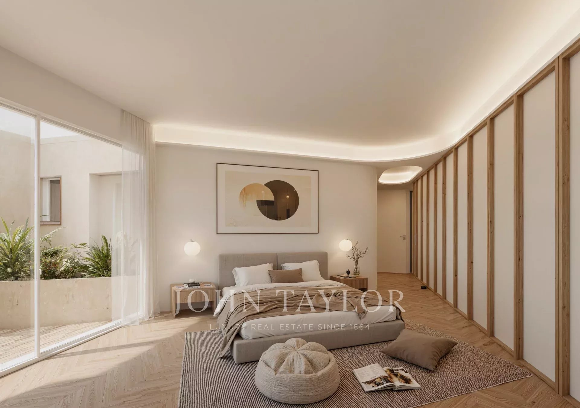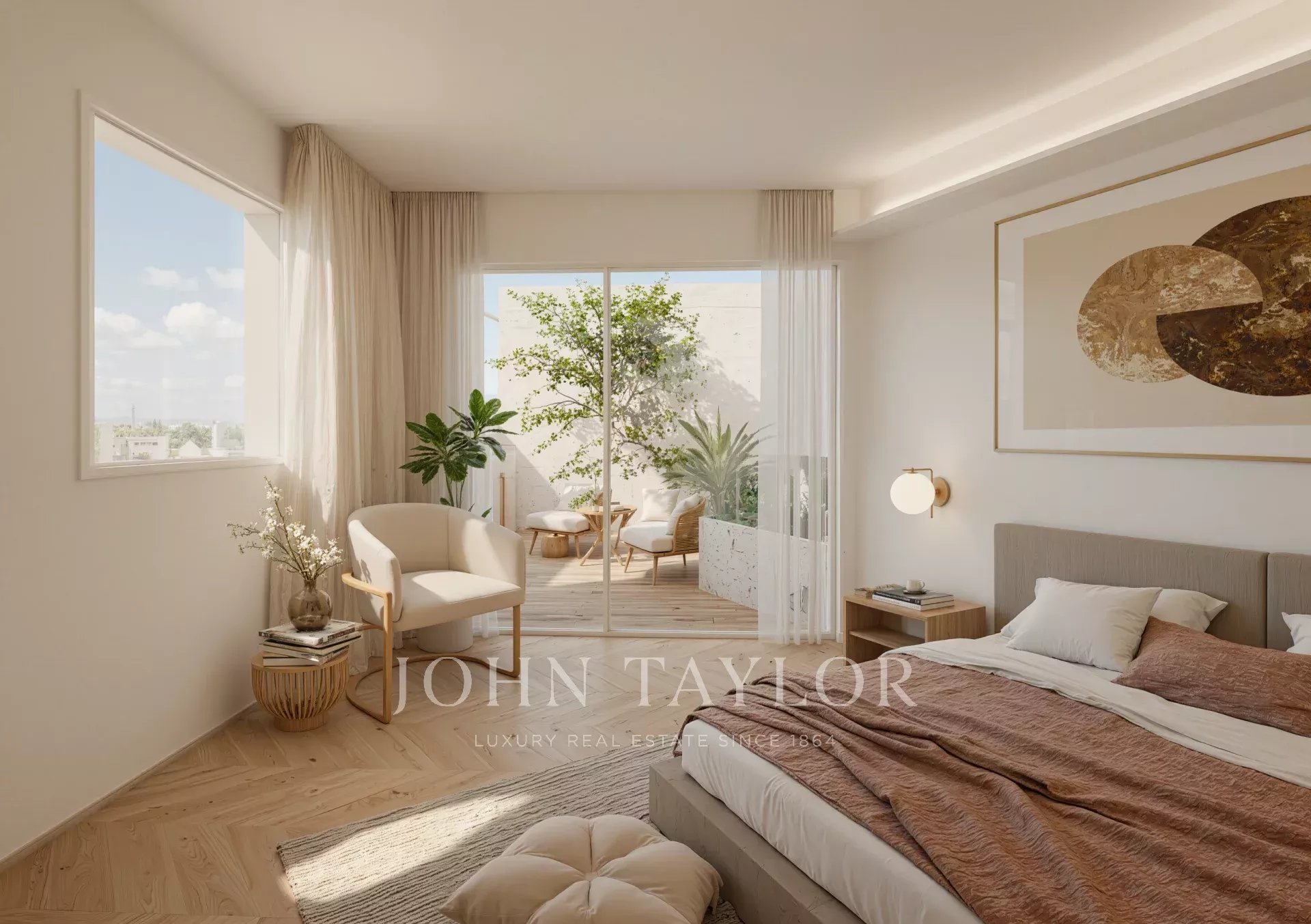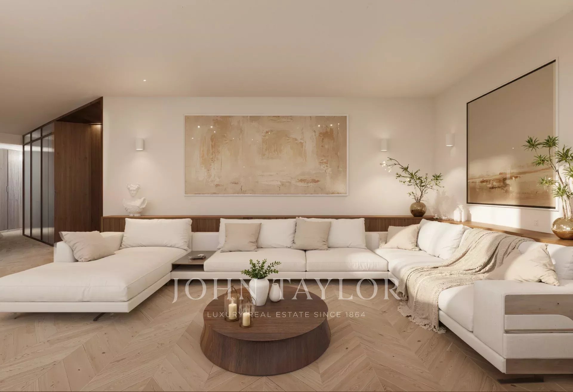 Die Renovierung durch den renommierten Architekten Miguel Molins nutzt die Räume meisterhaft, maximiert das außergewöhnliche natürliche Licht, das durch die drei Ausrichtungen zur Verfügung steht, und schafft eine moderne, elegante und fröhliche Atmosphäre.