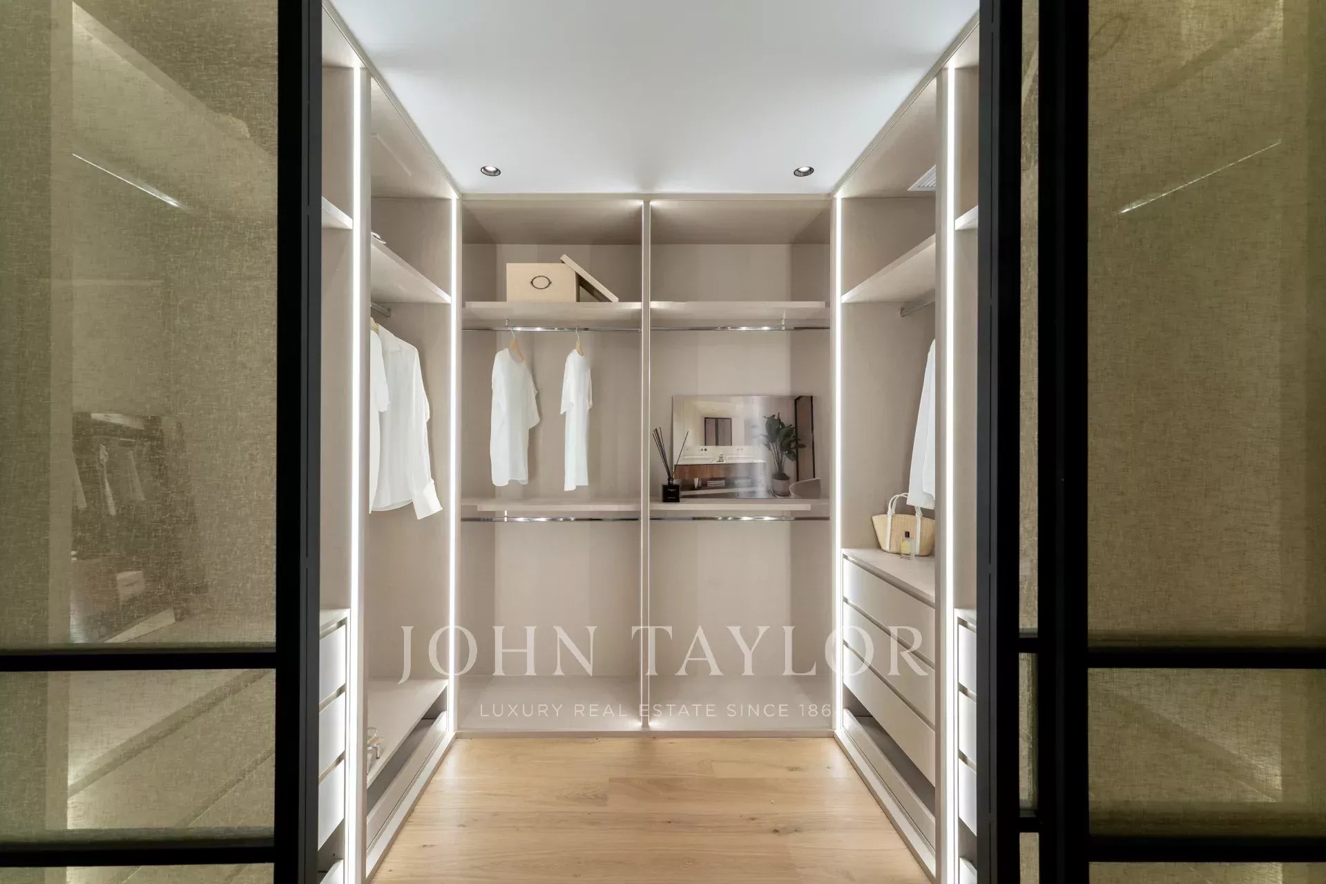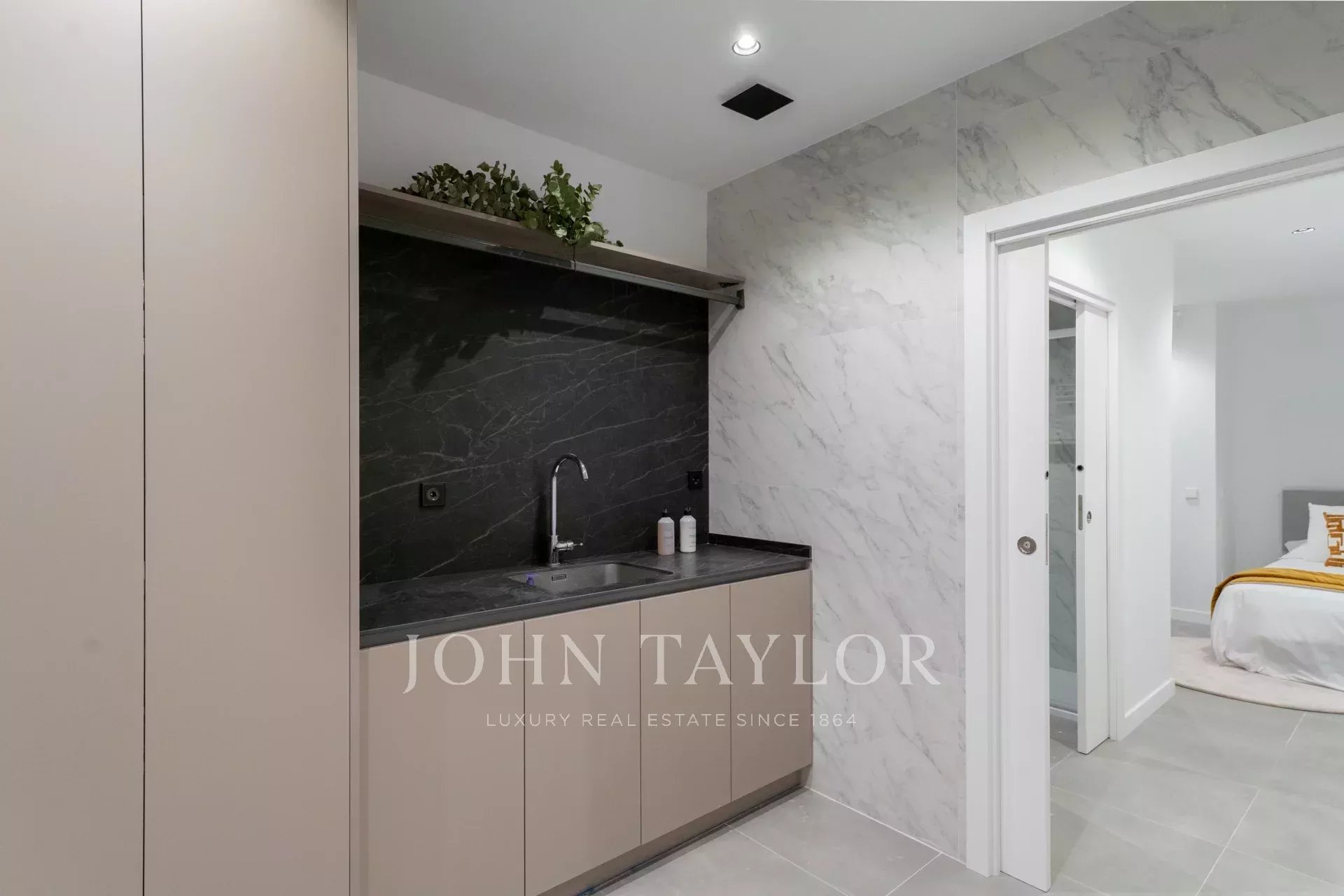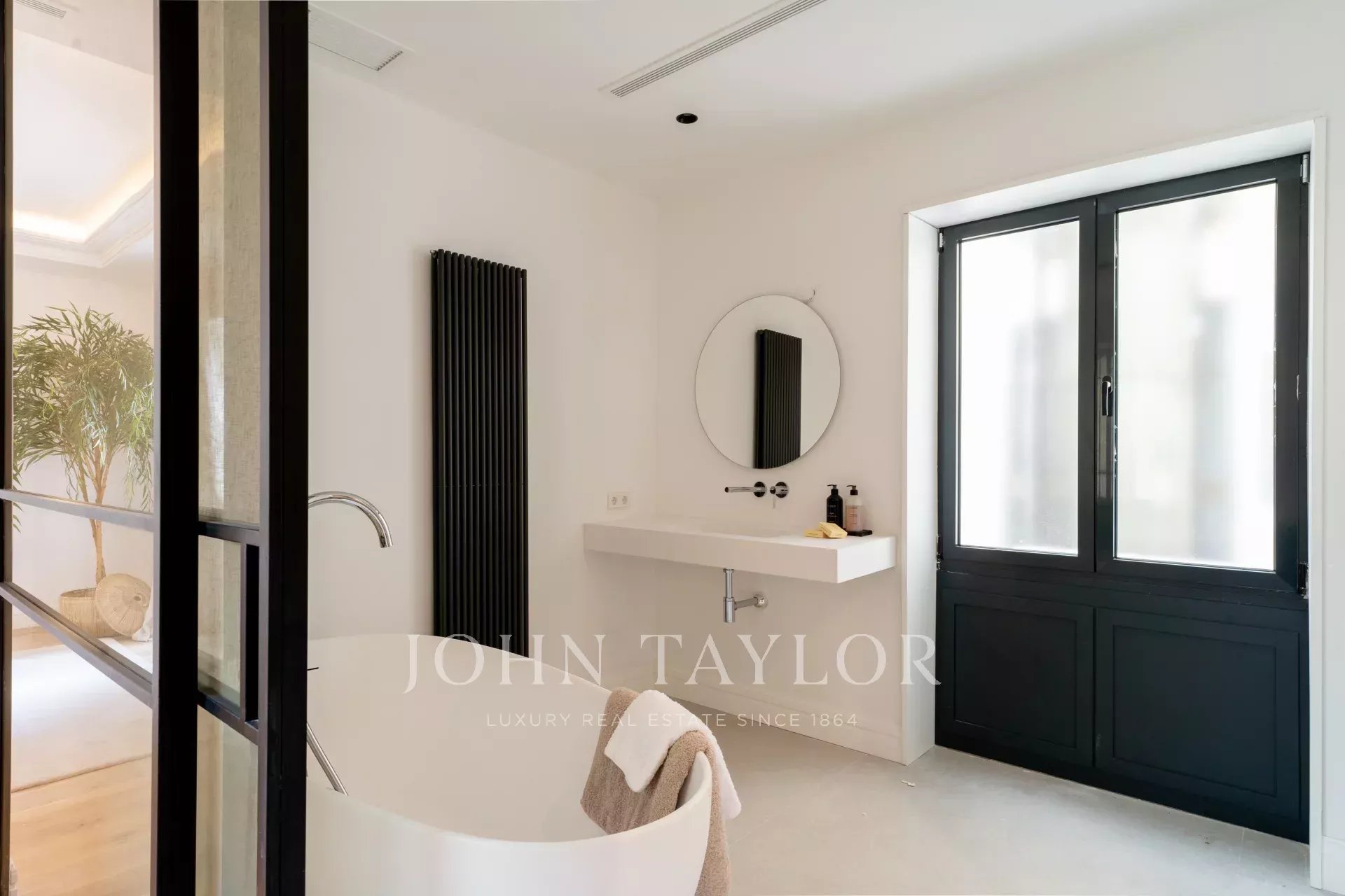 Mit einer ausgezeichneten Verteilung mit offenen und hellen Räumen und 3 Meter hohen Decken, wurde diese zeitgenössische Design-Eigenschaft komplett mit Premium-Qualitäten renoviert. Sie verfügt über 3 Doppelschlafzimmer mit eigenem Bad, geräumigen Ankleidezimmern und natürlichem Licht, sowie ein Personalzimmer mit eigenem Bad.