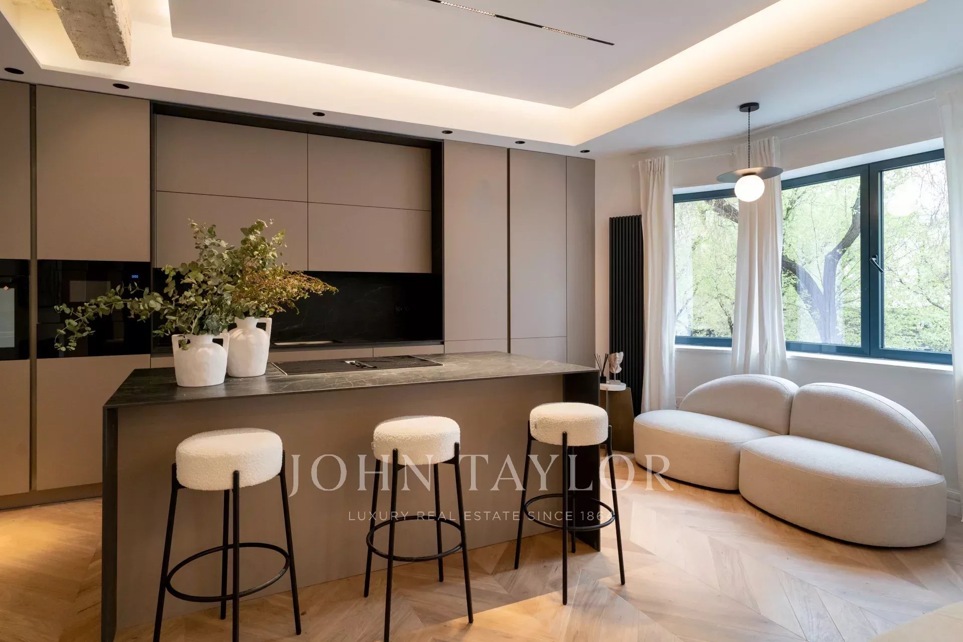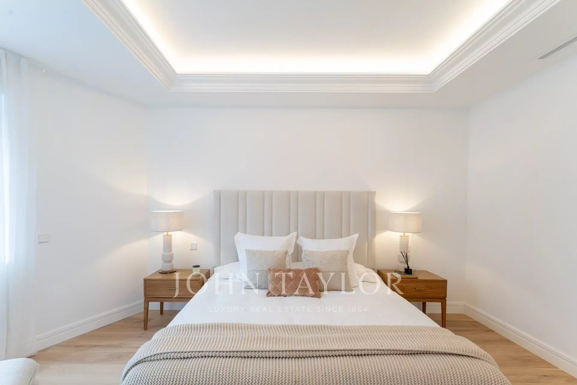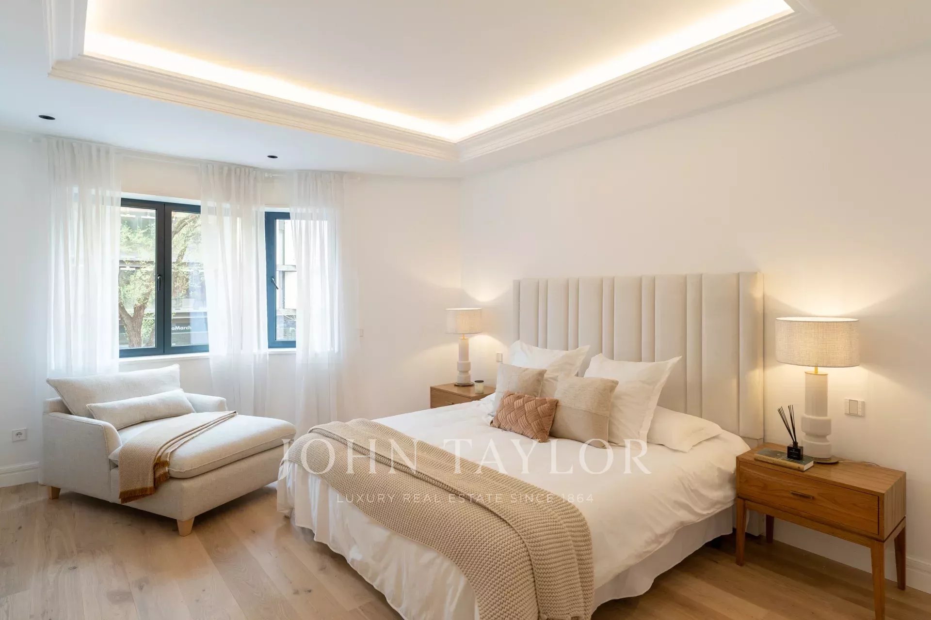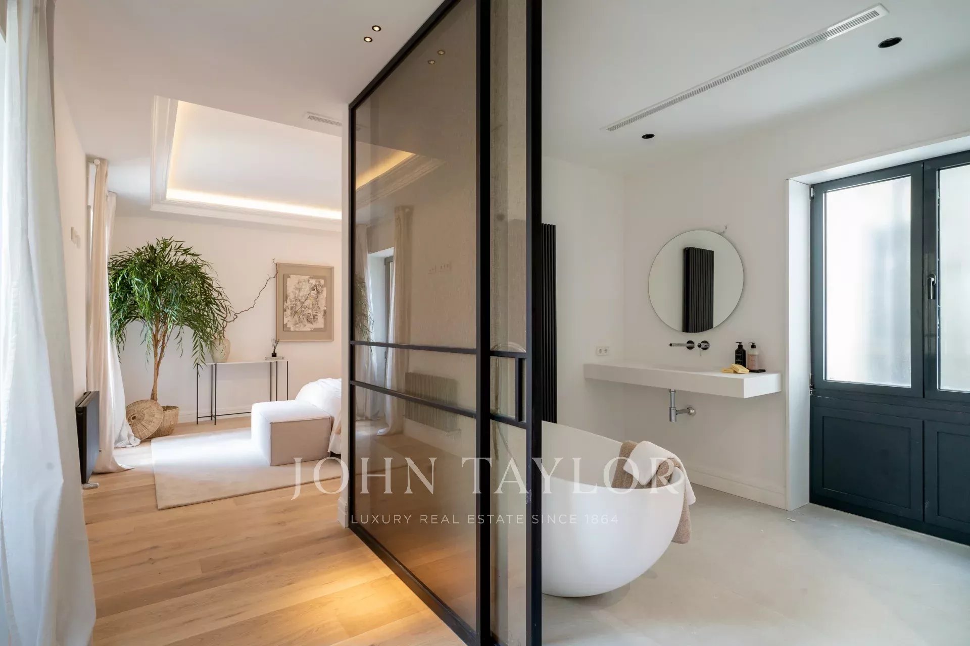 Mit einer ausgezeichneten Verteilung mit offenen und hellen Räumen und 3 Meter hohen Decken, wurde diese zeitgenössische Design-Eigenschaft komplett mit Premium-Qualitäten renoviert. Sie verfügt über 3 Doppelschlafzimmer mit eigenem Bad, geräumigen Ankleidezimmern und natürlichem Licht, sowie ein Personalzimmer mit eigenem Bad.