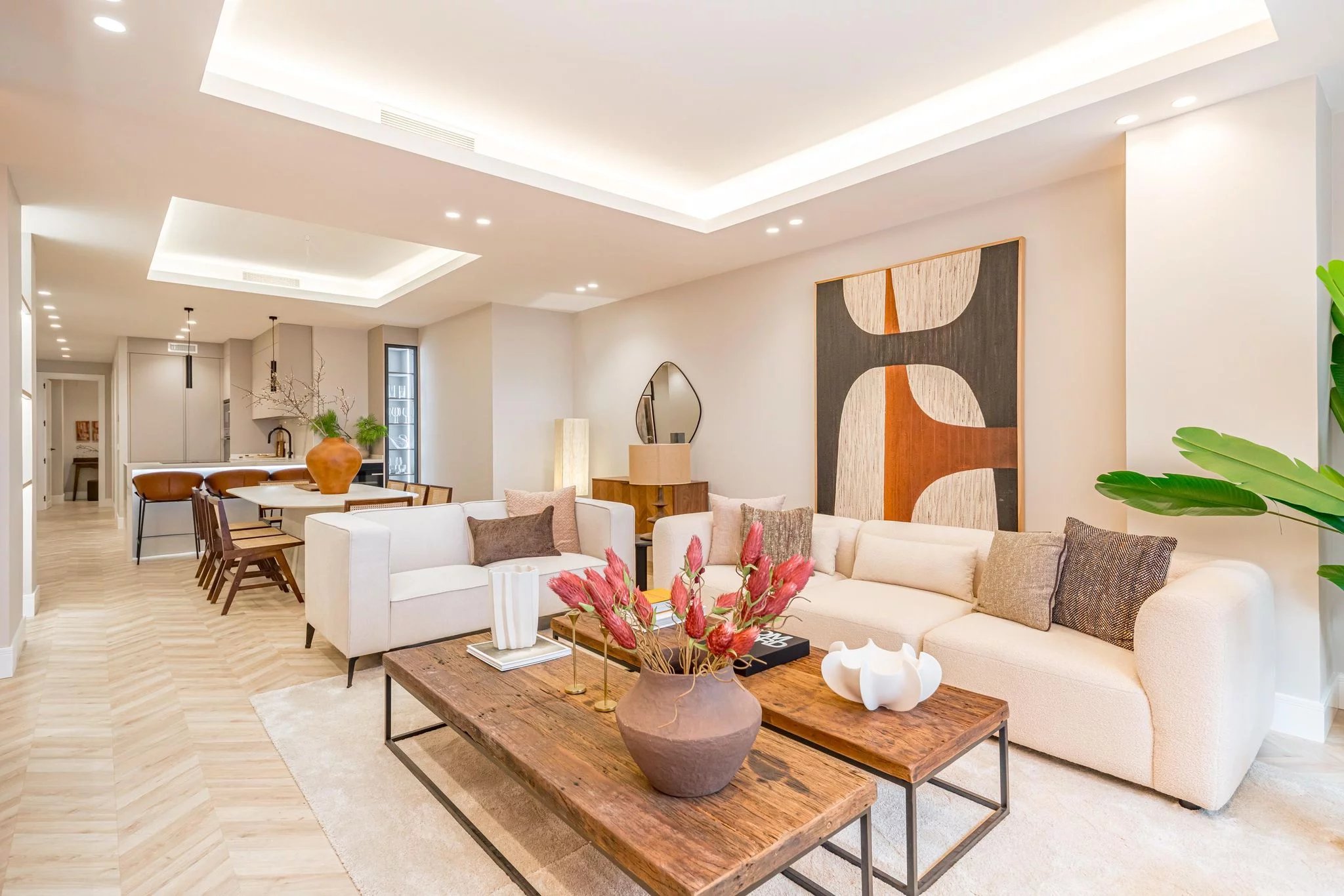 Der soziale Bereich gliedert sich um ein geräumiges Wohn- und Esszimmer, das sich sowohl für den Alltag als auch für den Empfang von Gästen eignet, sowie um eine geräumige und funktionelle Küche, die für eine komfortable und effiziente Nutzung konzipiert wurde.