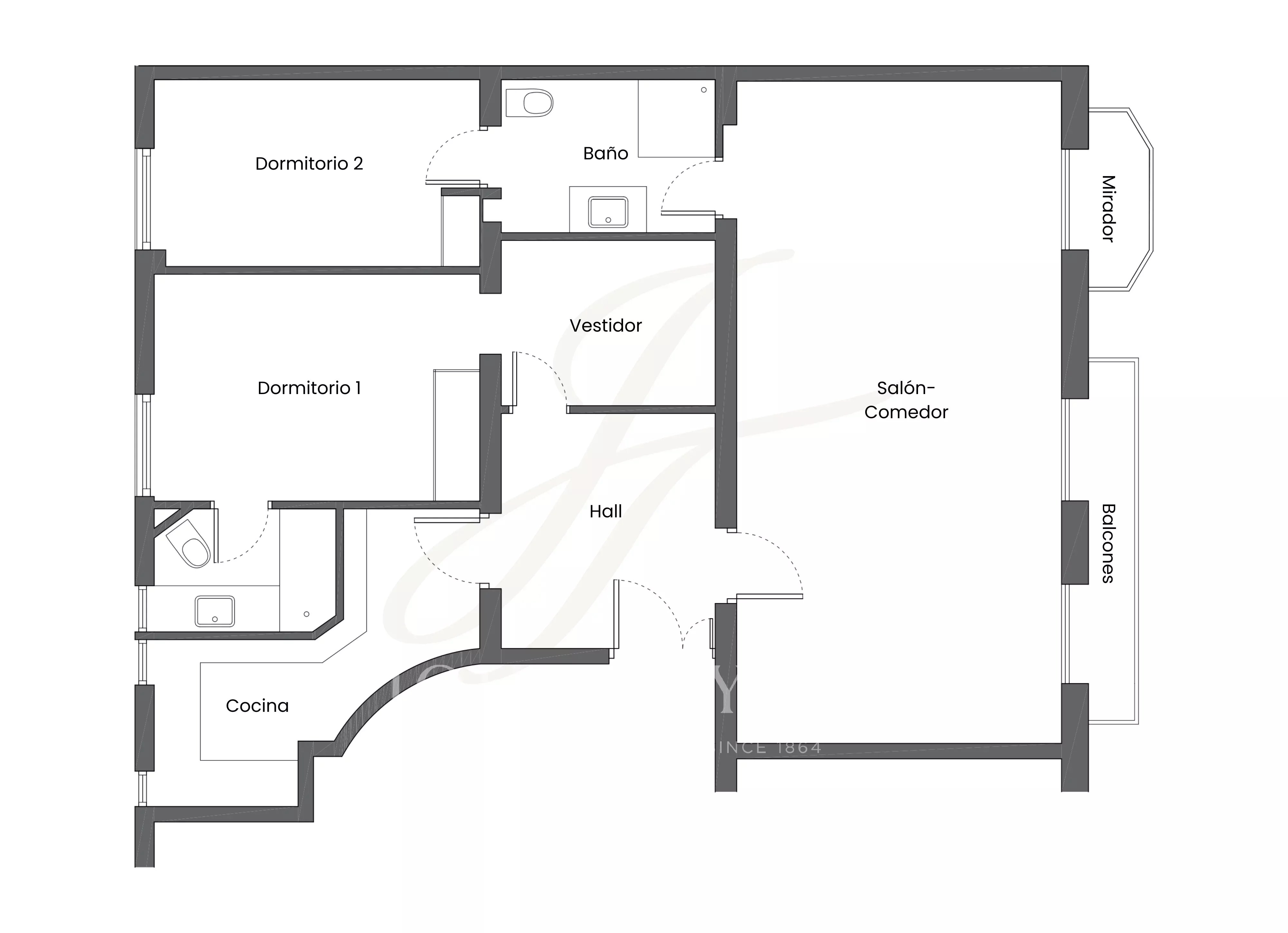 Die Immobilie zeichnet sich durch eine angenehme Aussicht und einen hervorragenden Lichteinfall aus. Zwei Balkone und ein reizvoller Erker verleihen der Fassade Charakter und Unterscheidungskraft. Es wird derzeit zur Renovierung angeboten und bietet außergewöhnliches Potenzial für die Gestaltung eines modernen und funktionalen Hauses mit zwei Schlafzimmern mit eigenem Bad, einem geräumigen Wohnzimmer, einer separaten Küche, einem Gästebad und einem Waschraum.