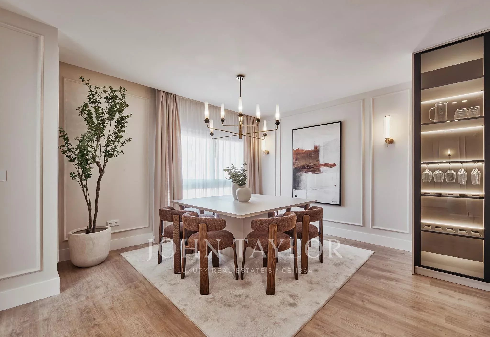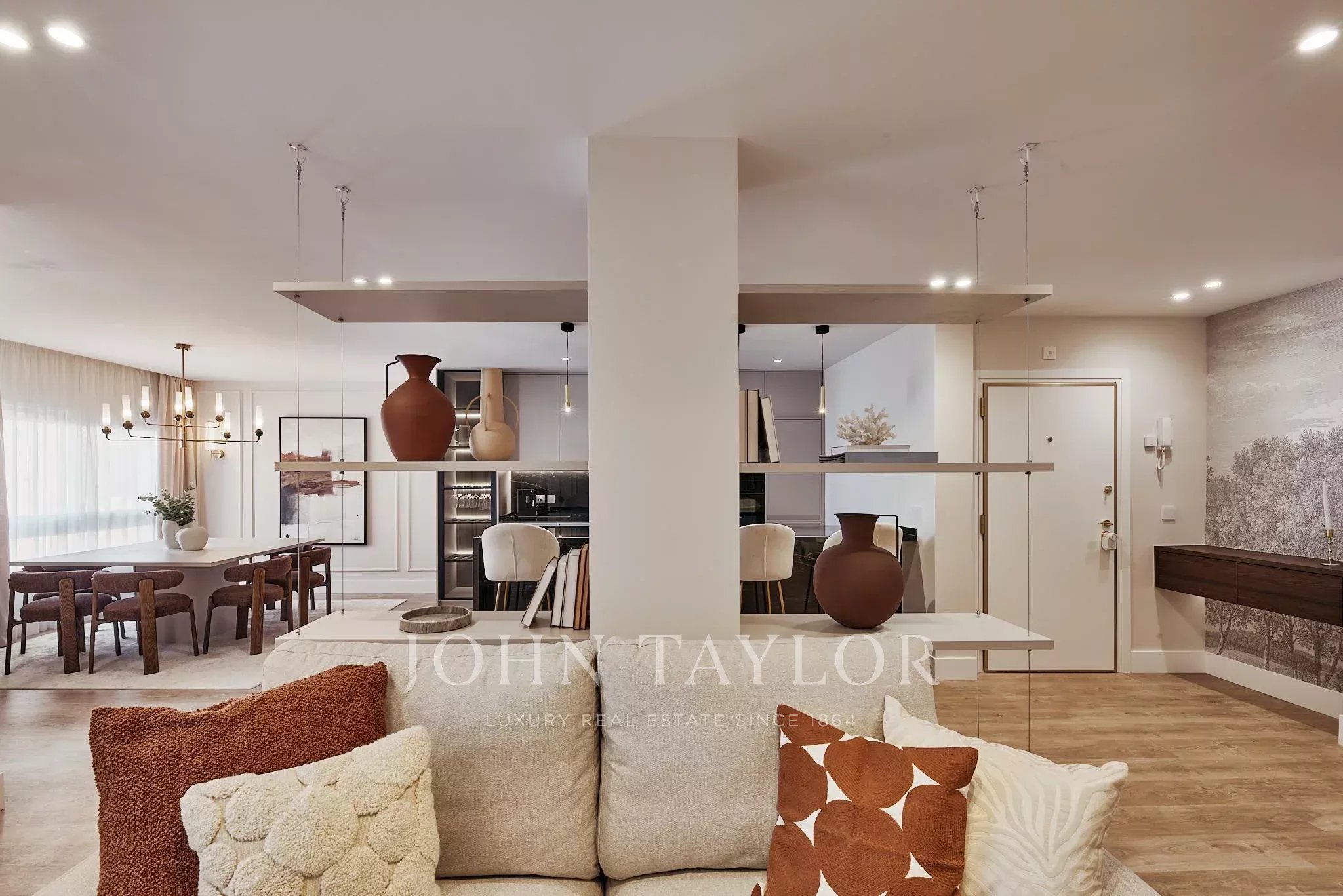Exklusive Außenwohnung von 253 m² im sechsten Stock im Herzen von Castellana, einer der prestigeträchtigsten Gegenden im Stadtteil Salamanca. Modern renoviert, beeindruckt sie durch ihre Geräumigkeit, Helligkeit und elegante Raumaufteilung.Der Tagesbereich bietet ein großes Wohnzimmer mit Zugang zum Außenbereich und eine komplett ausgestattete, harmonisch integrierte Küche. Es verfügt über drei Schlafzimmer und drei Vollbäder sowie Ankleidezimmer und maßgeschneiderte Stauraumlösungen.Die Wohnung wird möbliert und ausgestattet mit Hausautomation, Zentralheizung und Klimaanlage übergeben. Befindet sich in einem klassischen Gebäude mit Hausmeister, inklusive Tiefgaragenstellplatz und Abstellraum.Eine anspruchsvolle Immobilie, bereit zum Einziehen, in einer der exklusivsten Adressen Madrids.