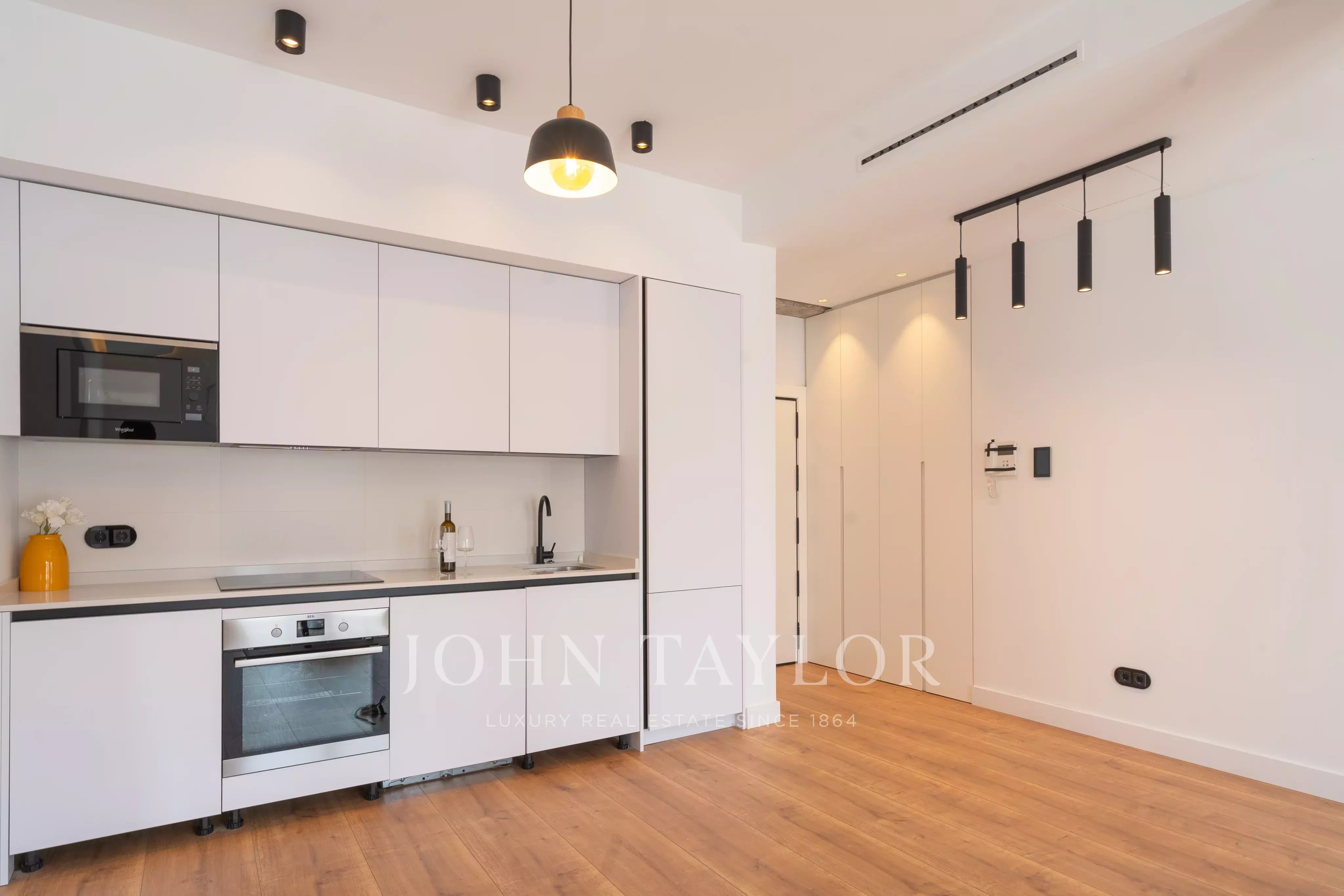 Die Wohnung befindet sich in einem repräsentativen Gebäude mit einer repräsentativen Eingangshalle, einem Pförtner und zwei Aufzügen, die ein hohes Maß an Komfort und Sicherheit bieten.