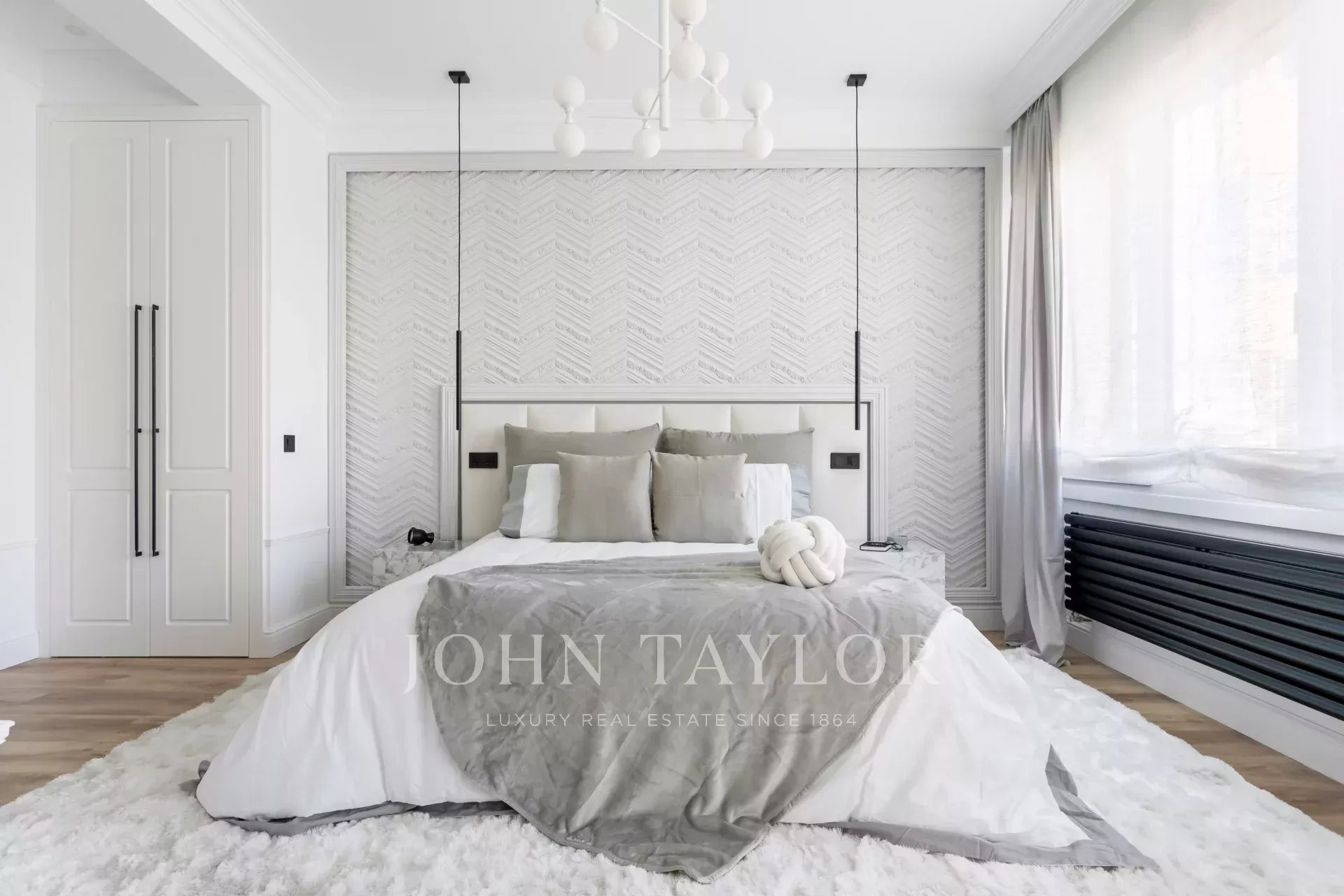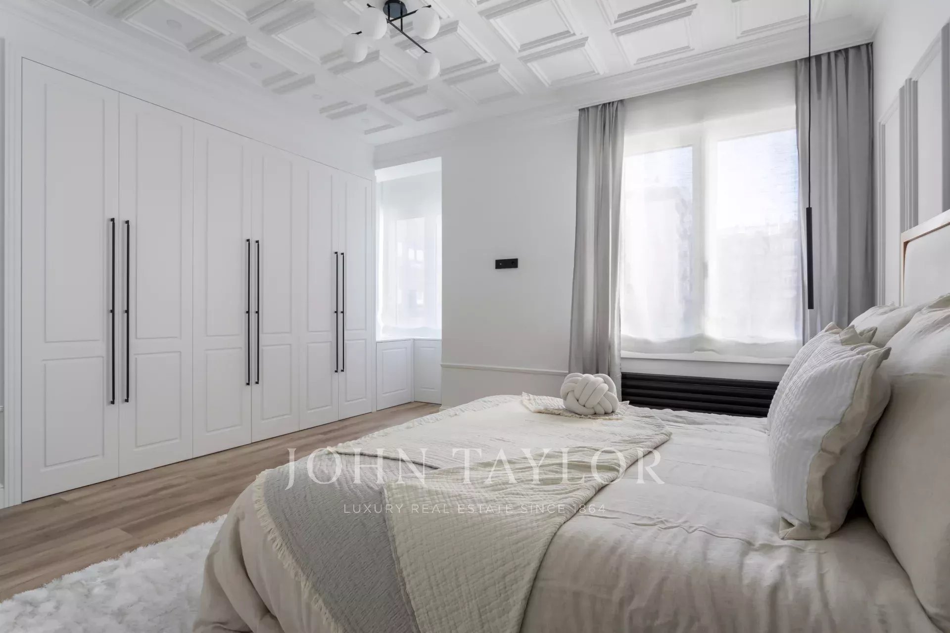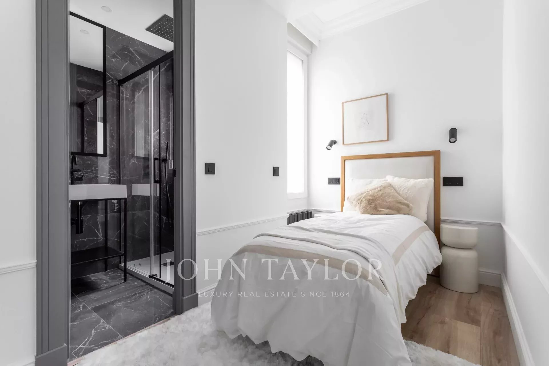 Die Wohnung hat vier Schlafzimmer, alle mit eigenem Bad und großen Einbauschränken. Darüber hinaus gibt es eine Gästetoilette, einen Waschraum und einen Abstellraum.