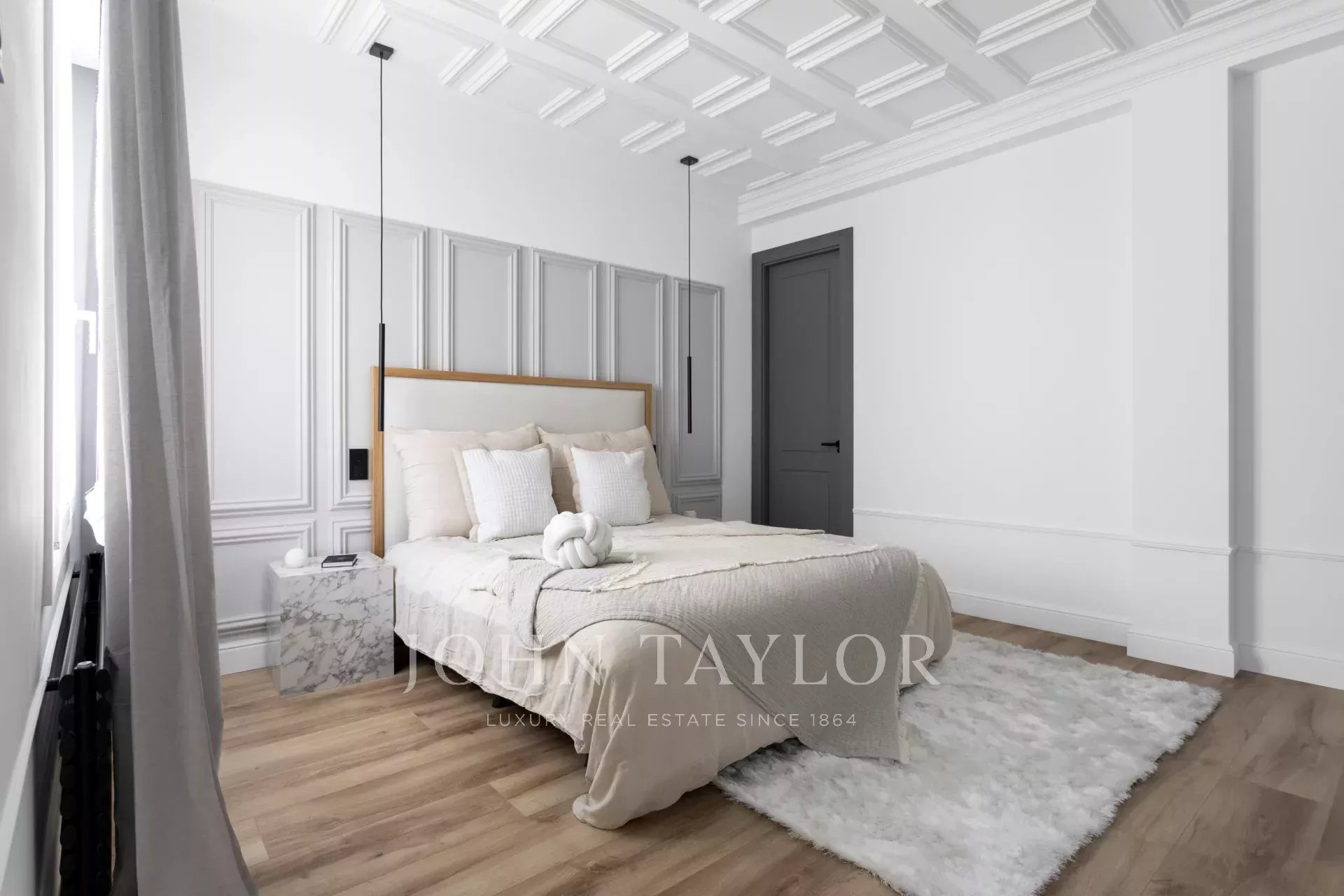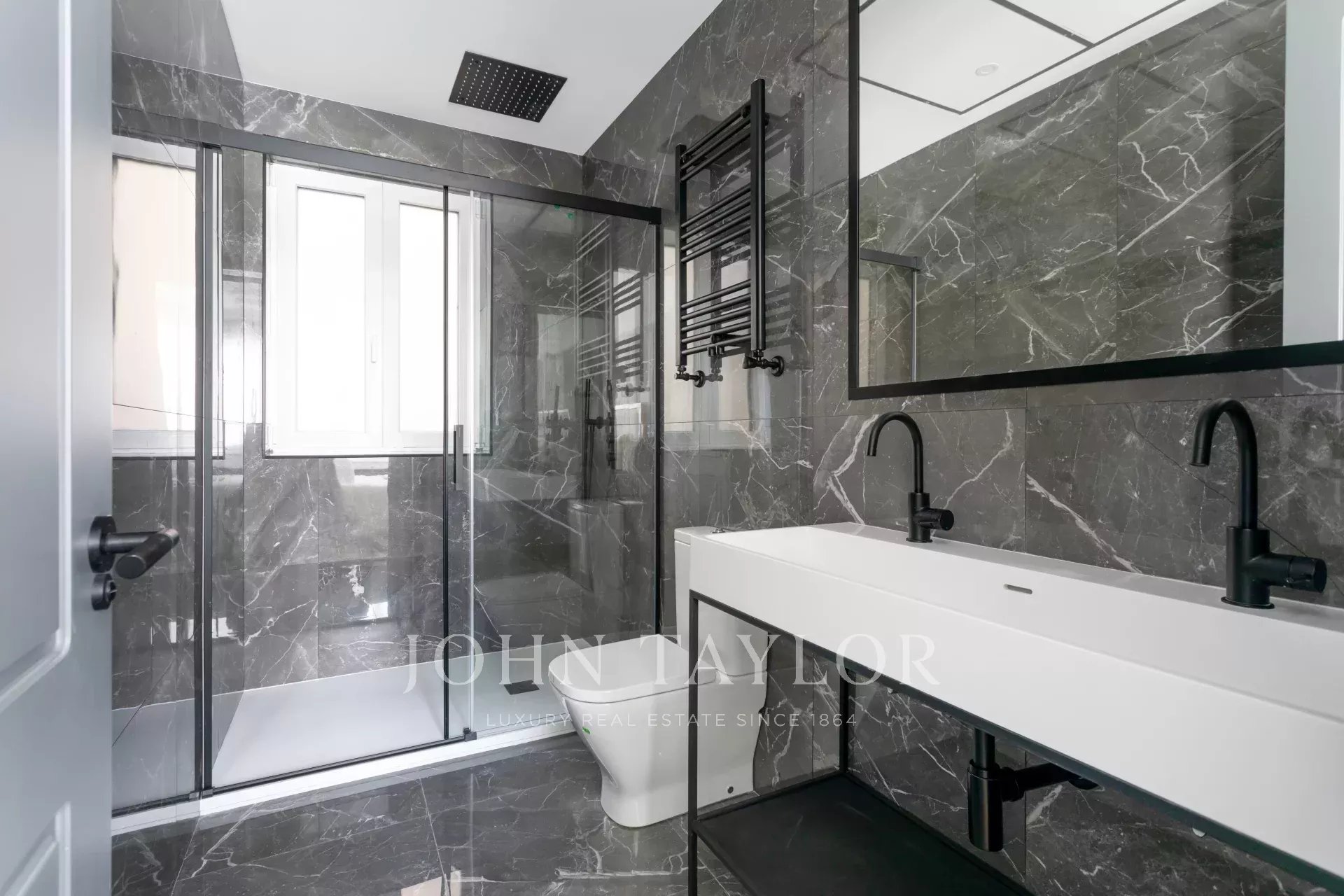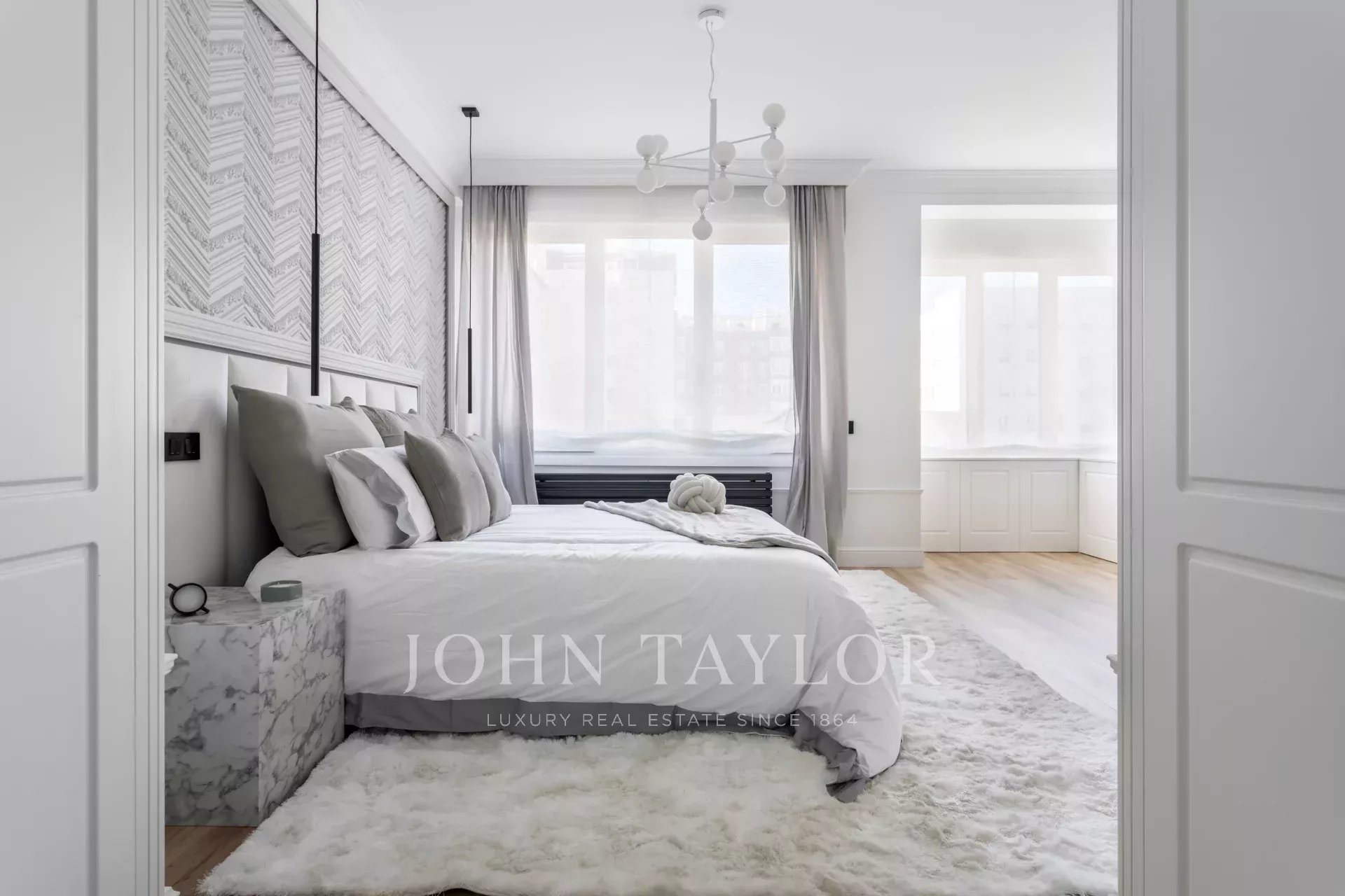 Die Wohnung hat vier Schlafzimmer, alle mit eigenem Bad und großen Einbauschränken. Darüber hinaus gibt es eine Gästetoilette, einen Waschraum und einen Abstellraum.