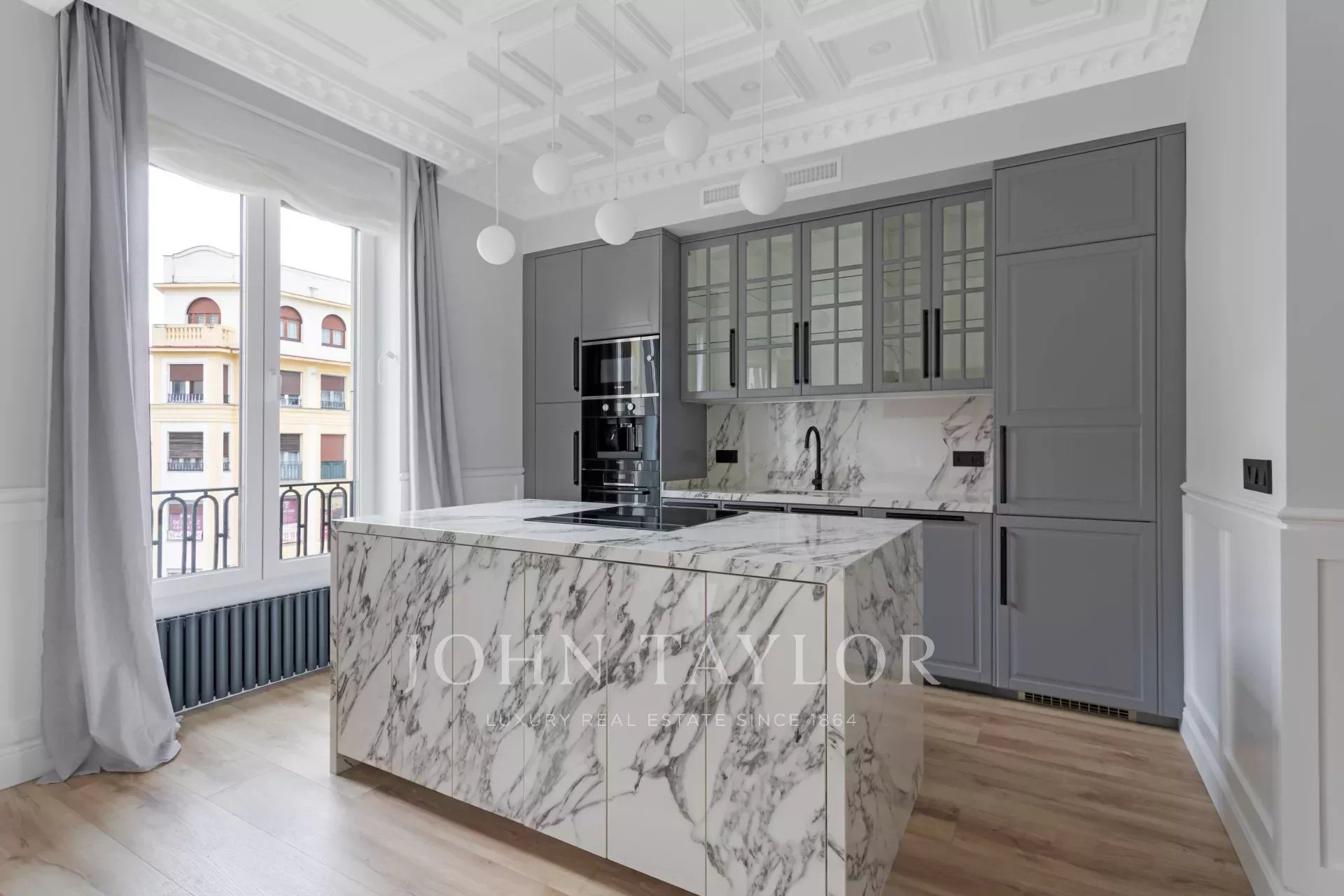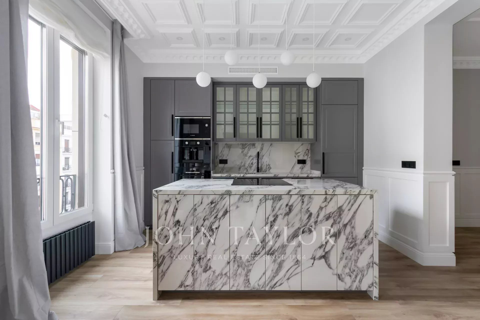 Der Außenbereich wird durch das große Wohnzimmer mit Balkonen mit Blick auf die Alcalá Straße, mit dem modernen Stil Küche, eine große Insel und ausgestattet mit High-End-Geräten besetzt.