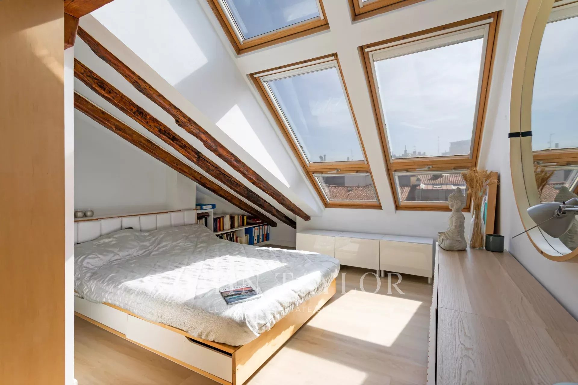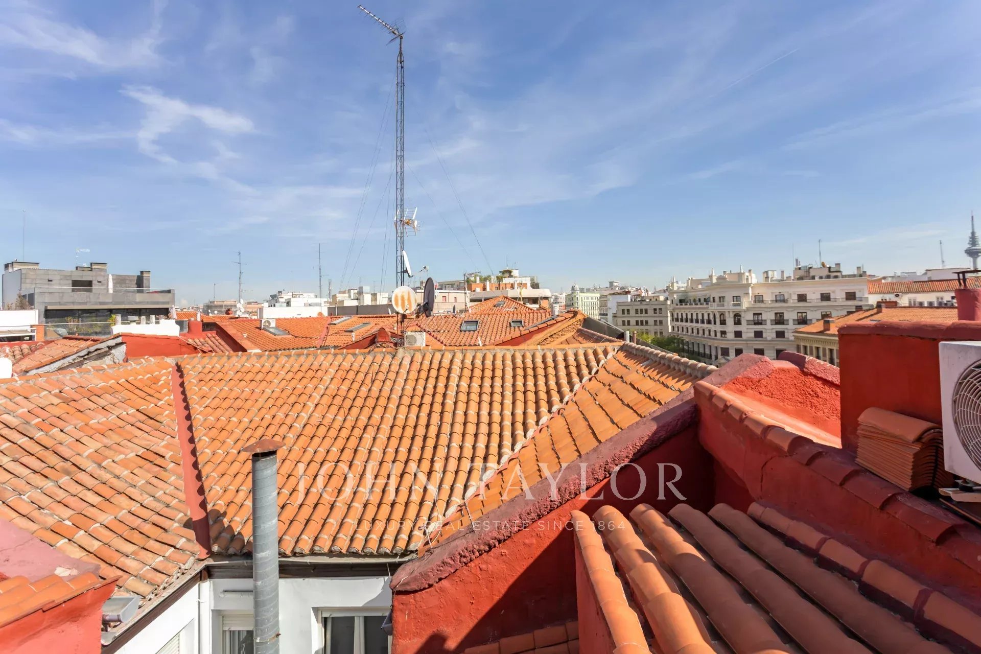 Dieses Duplex zeichnet sich durch seine spektakuläre Terrasse aus, die sich imposant über die benachbarten Gebäude erhebt und einen Blick auf die Skyline von Madrid bietet, und zwar dank der strategischen Lage in absoluter Privatsphäre und ohne Lärm.