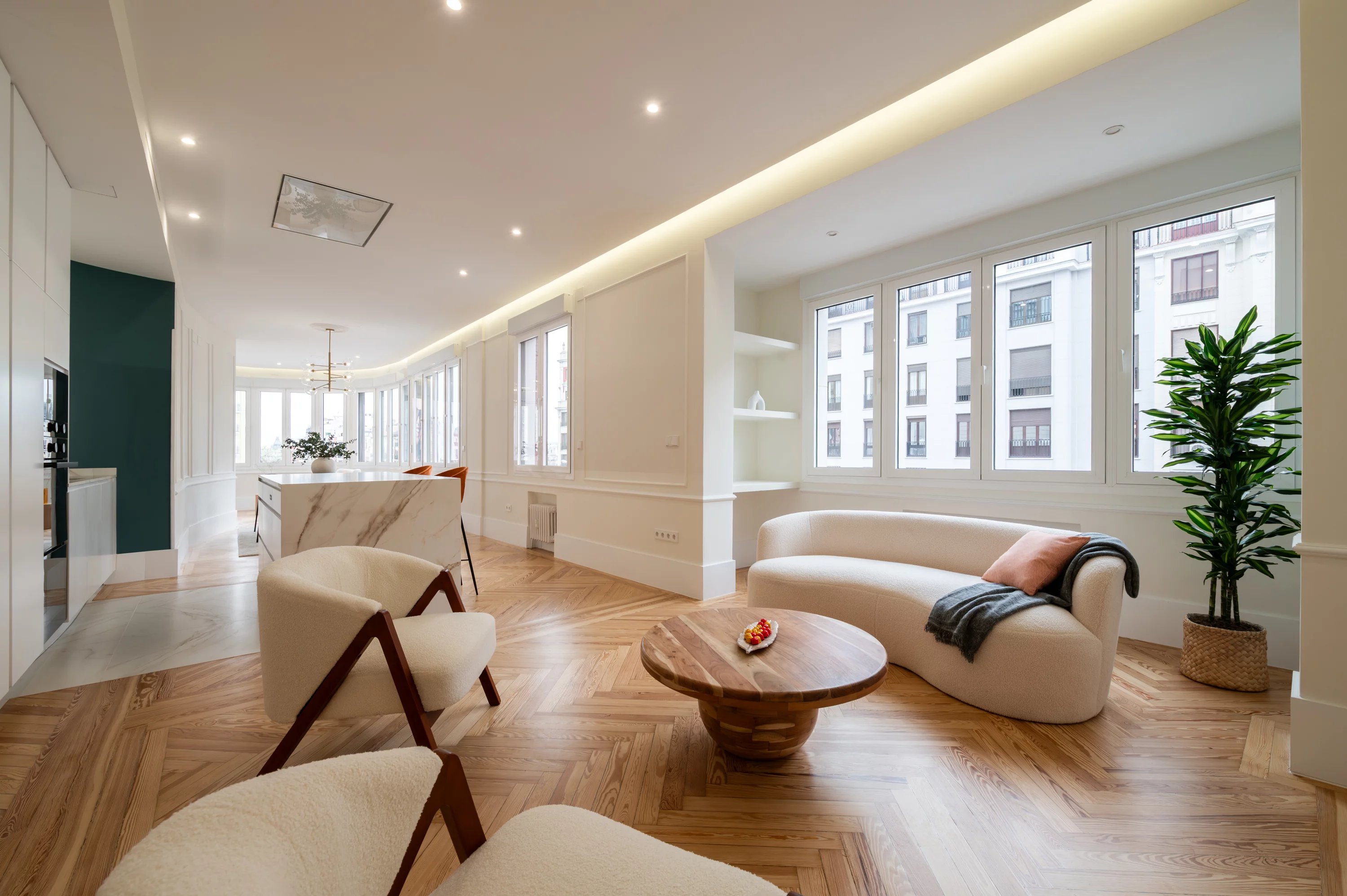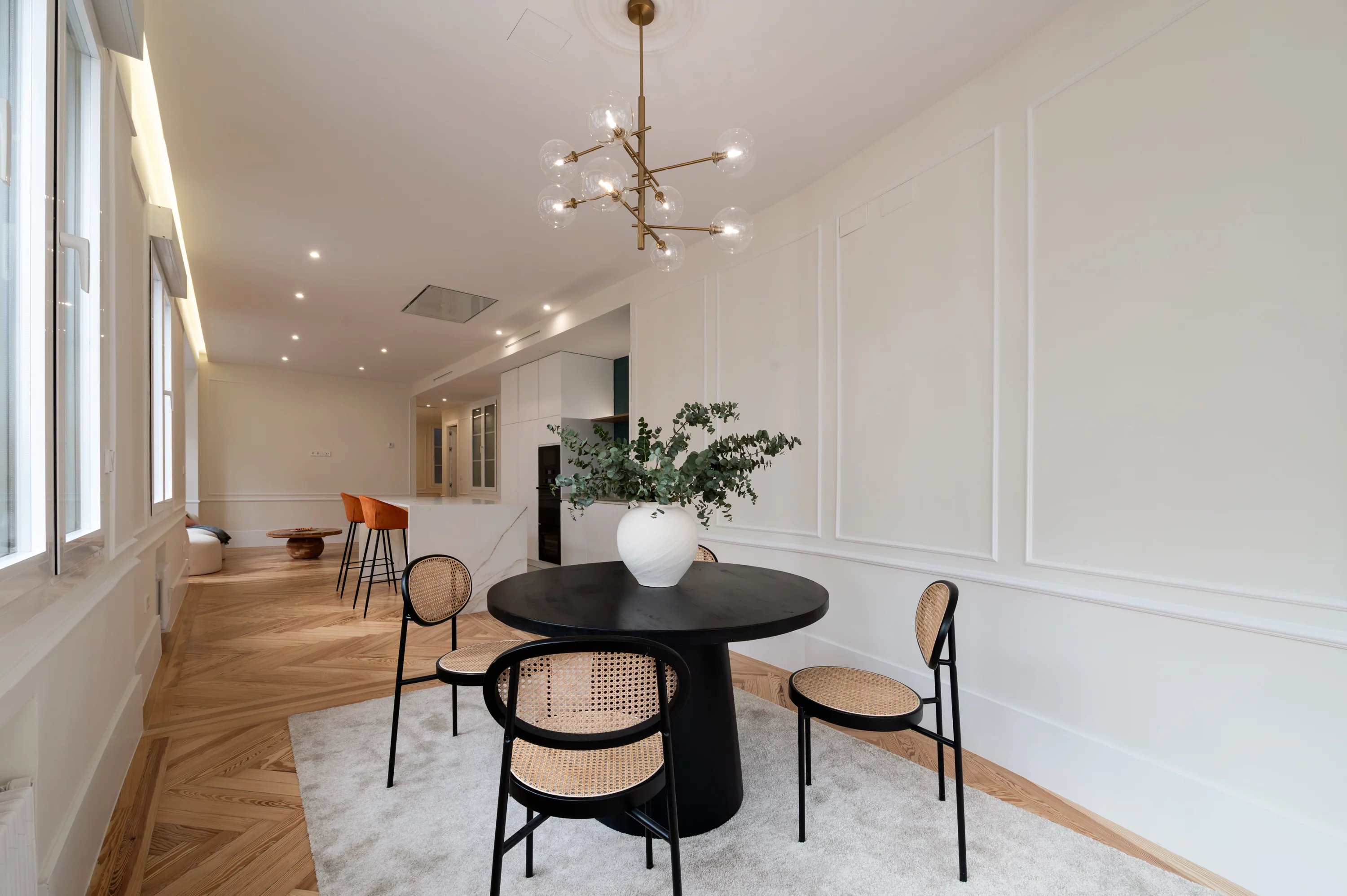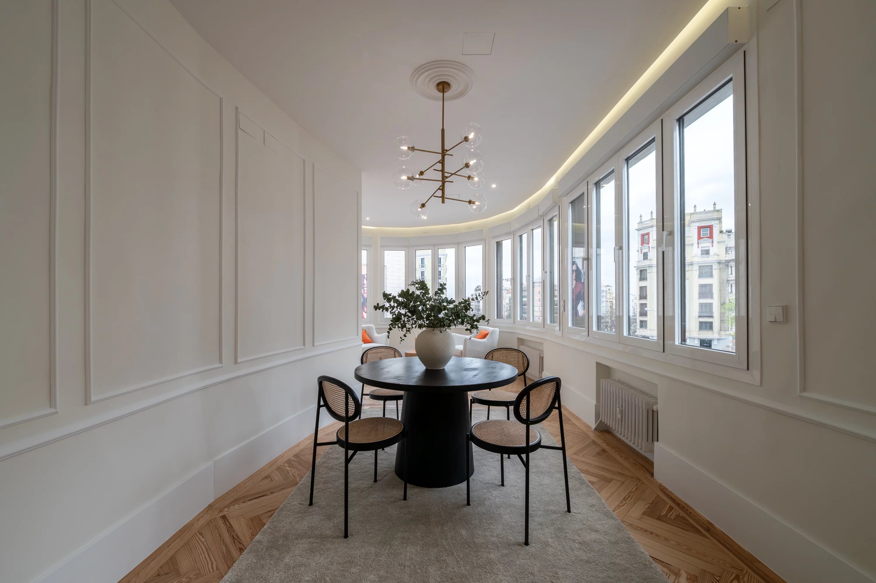Mit einer Fläche von 188 m² verbindet diese Immobilie Eleganz, Geräumigkeit und eine privilegierte Lage und bietet atemberaubende offene Ausblicke auf einige der wichtigsten Straßen der Stadt. Das natürliche Licht durchflutet jeden Raum dank seiner Ausrichtung und der großen Fensterflächen und schafft eine warme und elegante Atmosphäre.