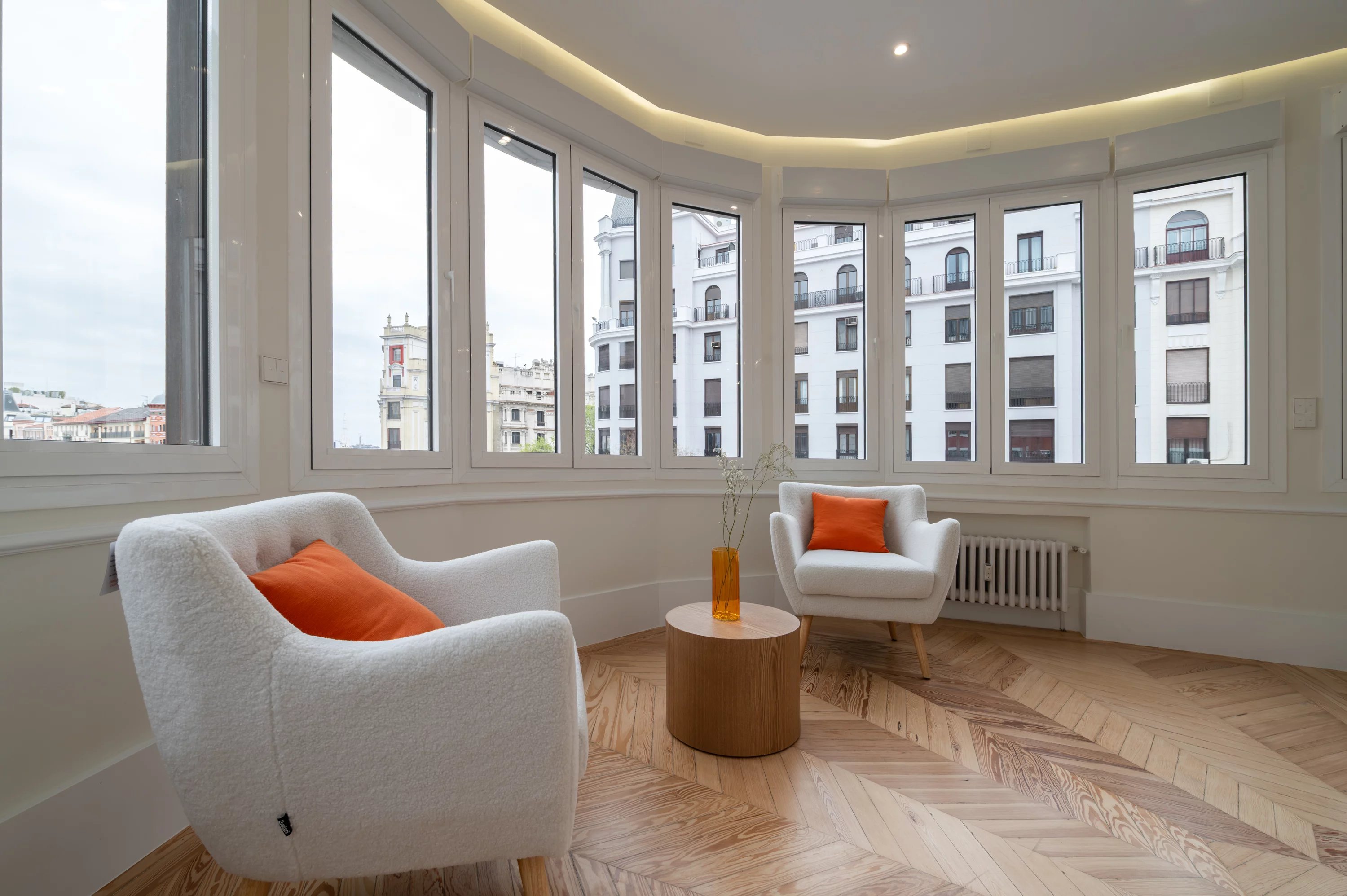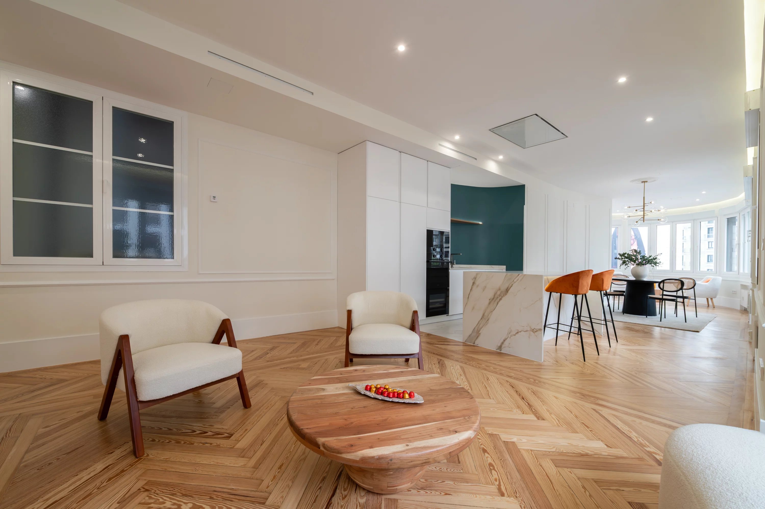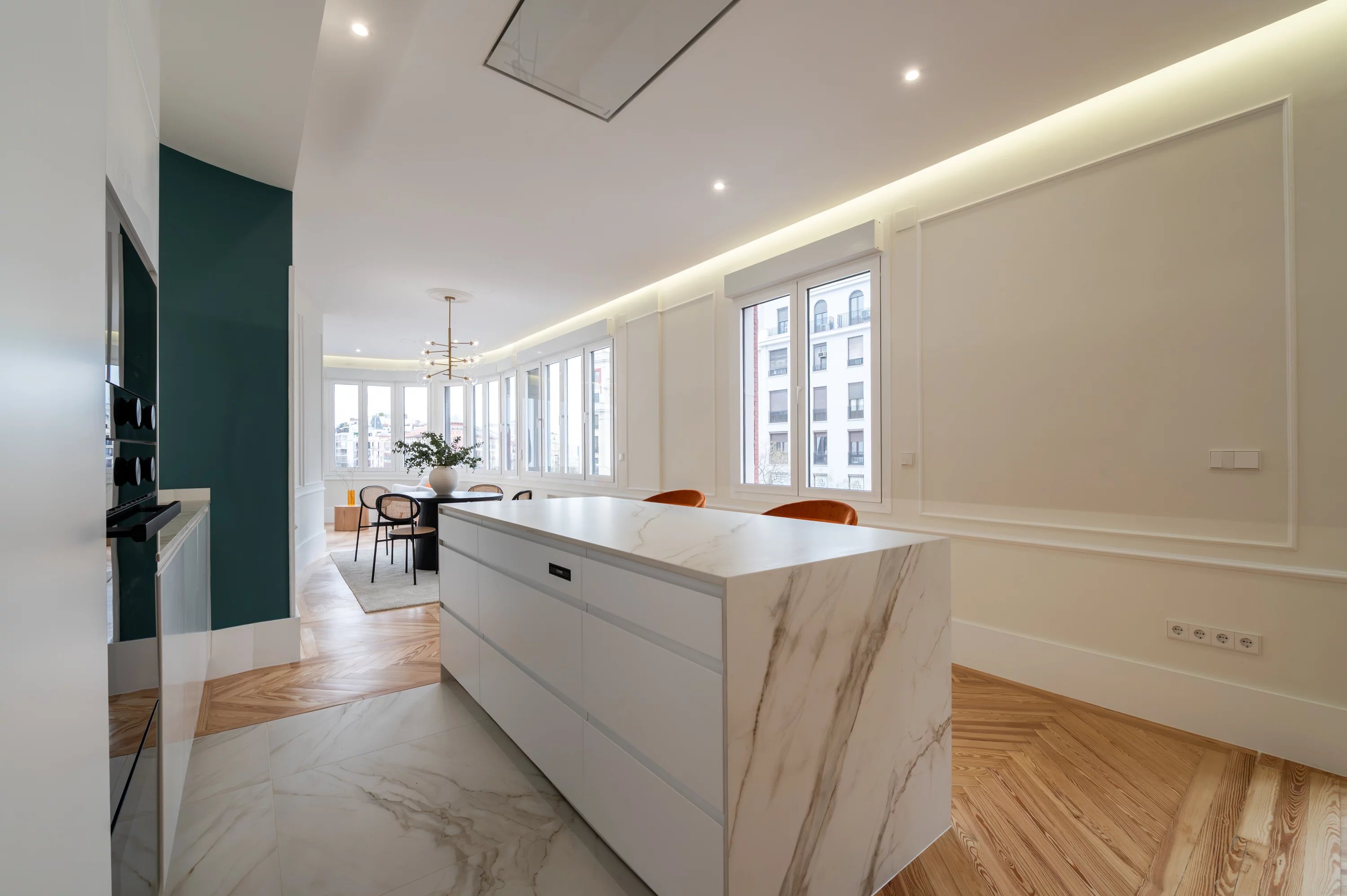 Mit einer Fläche von 188 m² verbindet diese Immobilie Eleganz, Geräumigkeit und eine privilegierte Lage und bietet atemberaubende offene Ausblicke auf einige der wichtigsten Straßen der Stadt. Das natürliche Licht durchflutet jeden Raum dank seiner Ausrichtung und der großen Fensterflächen und schafft eine warme und elegante Atmosphäre.