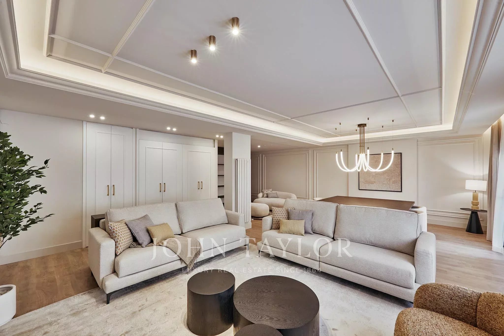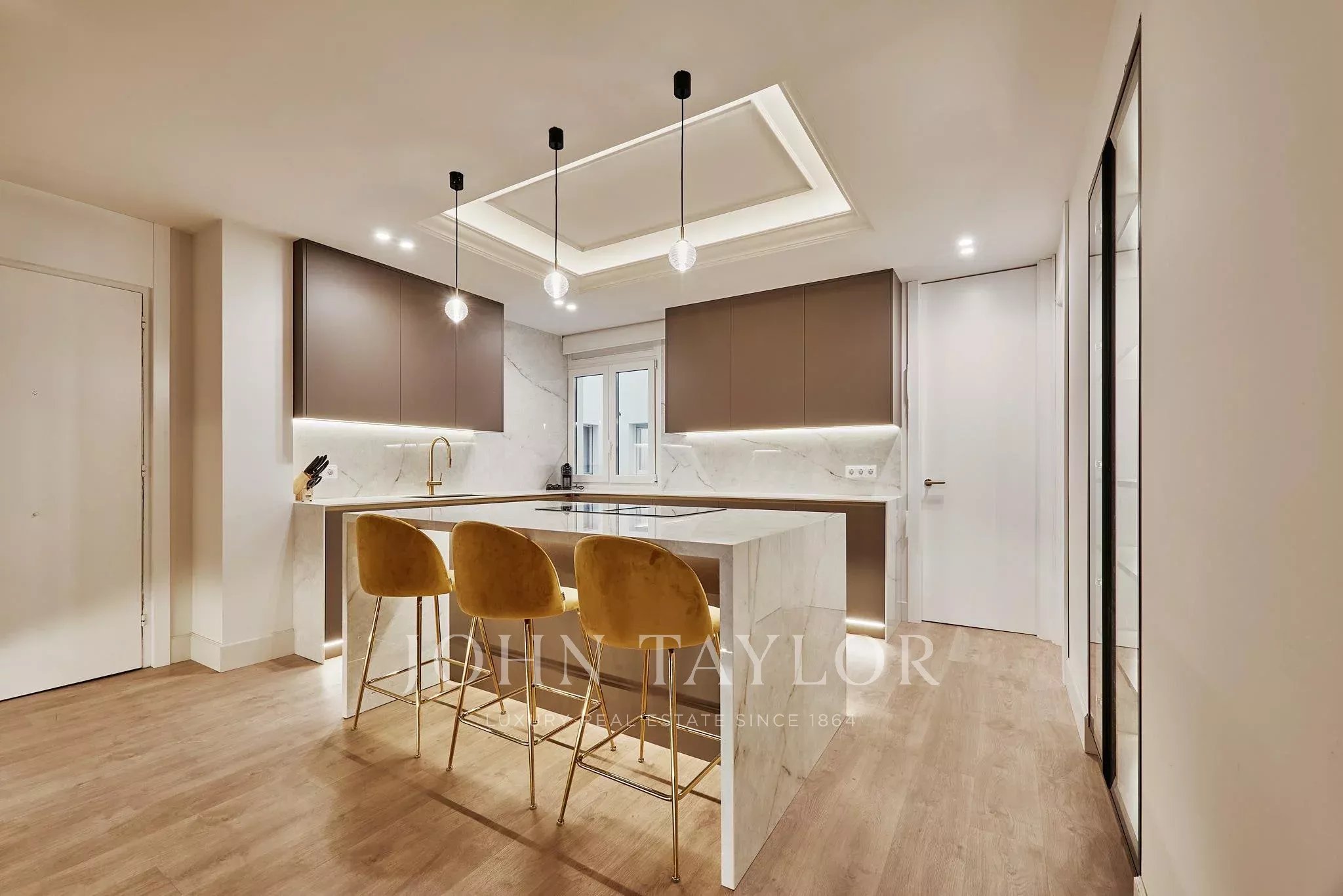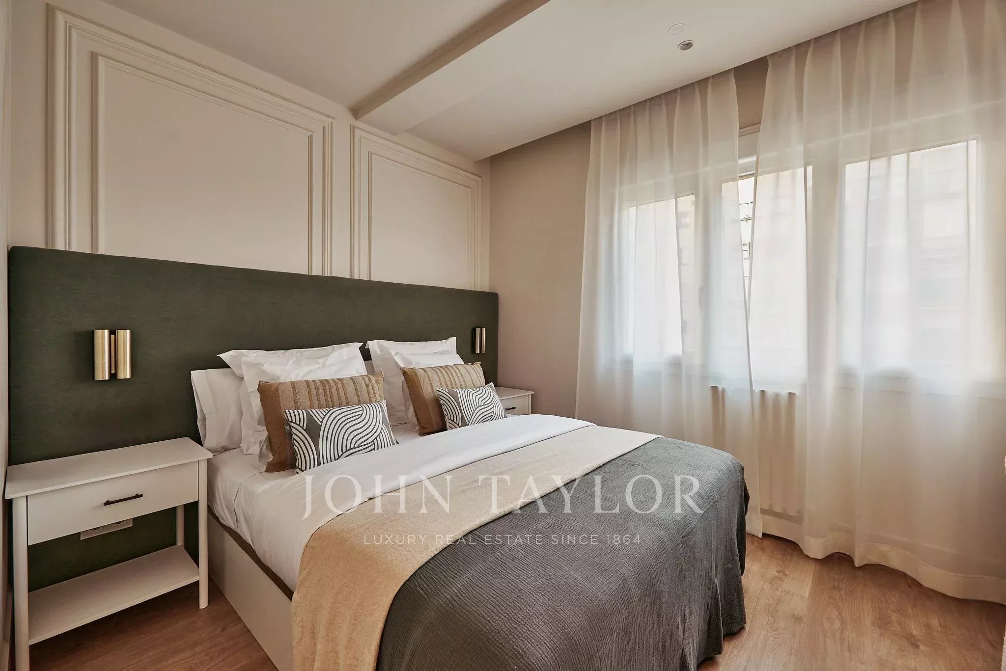 Die Wohnung verfügt über fünf Schlafzimmer und fünf voll ausgestattete Badezimmer sowie eine Gästetoilette. Die sorgfältige Raumaufteilung gewährleistet Privatsphäre in jedem Raum, inklusive Ankleidezimmer und großzügigen Flächen, die ihr exklusives Wesen unterstreichen.