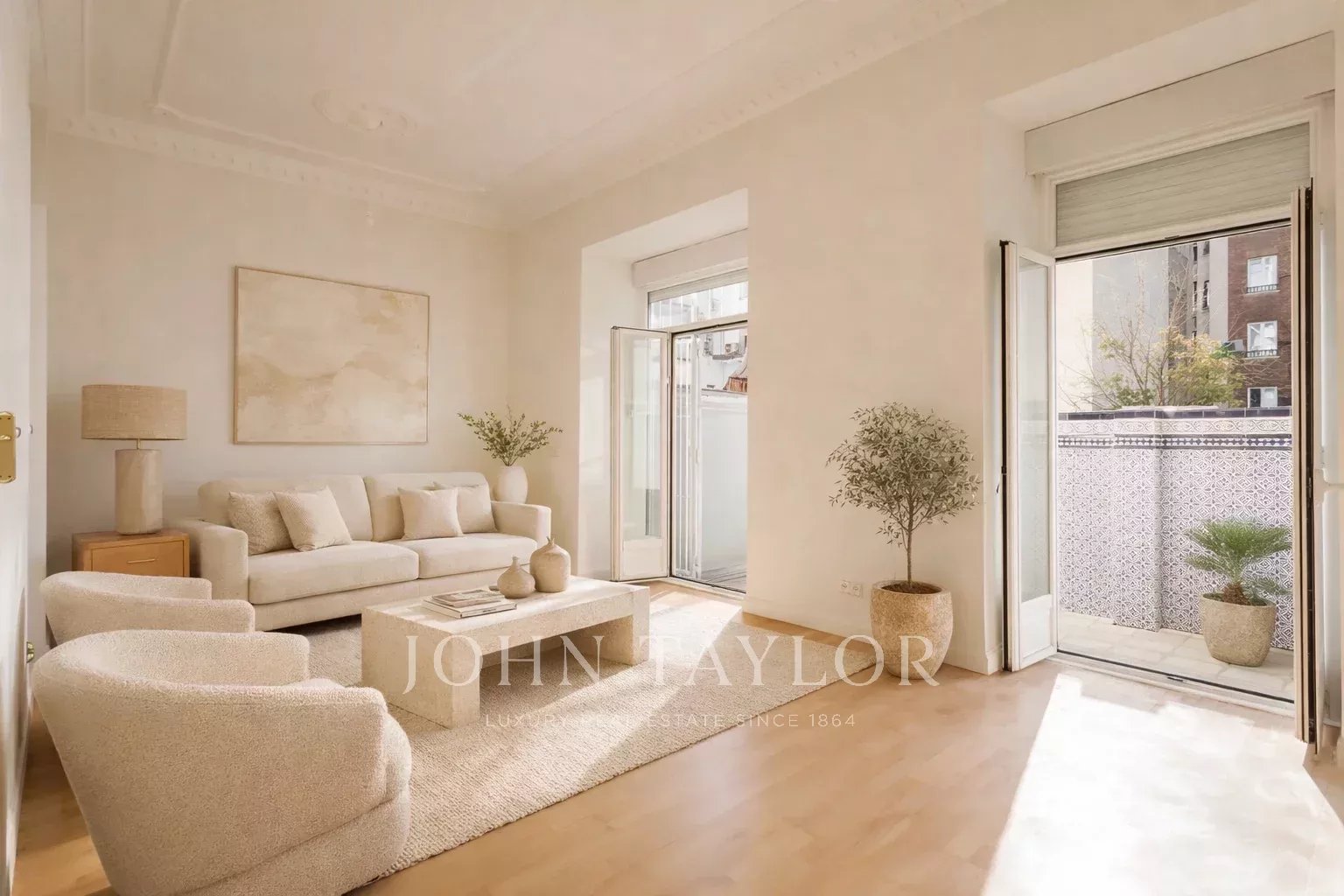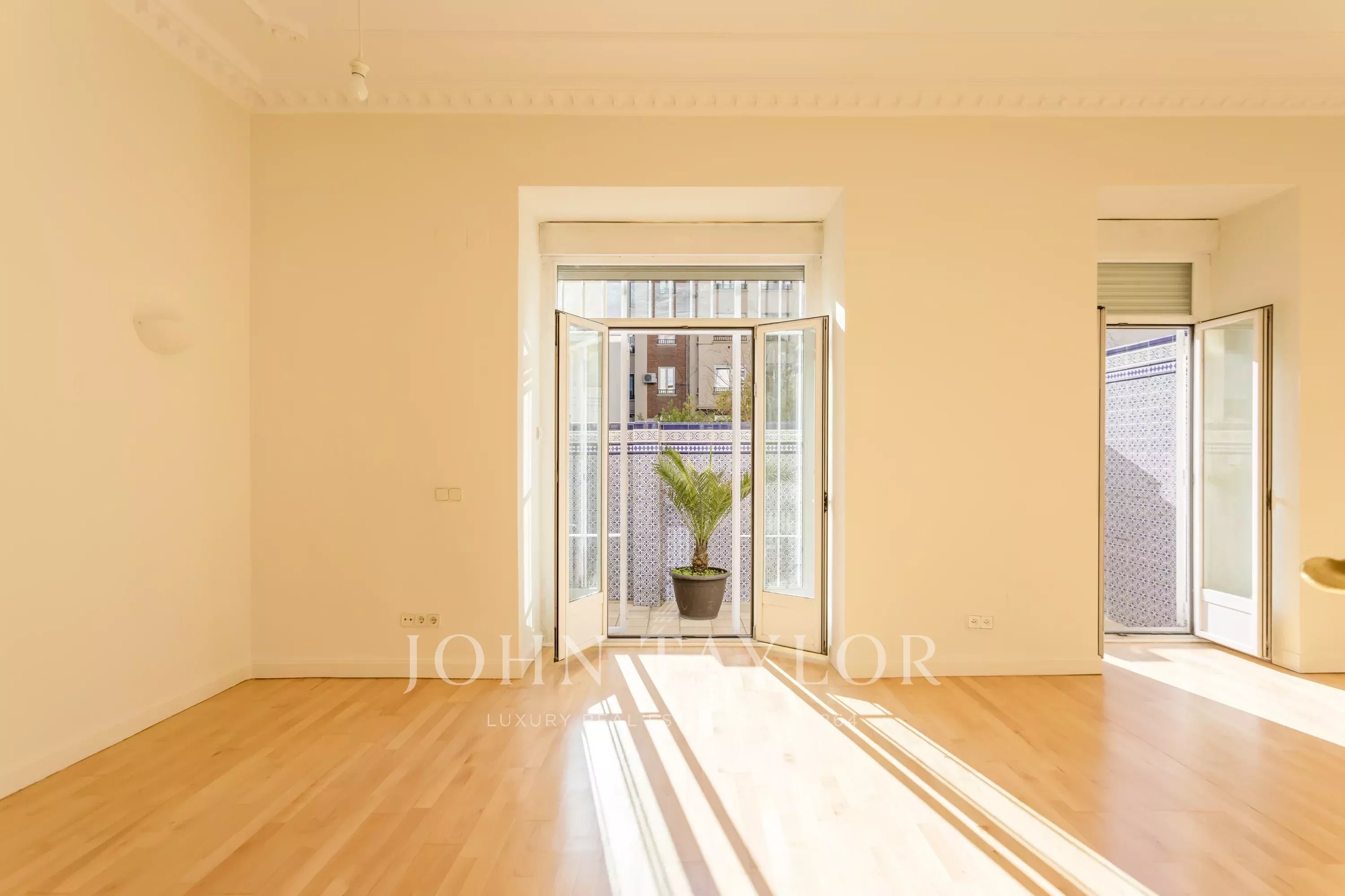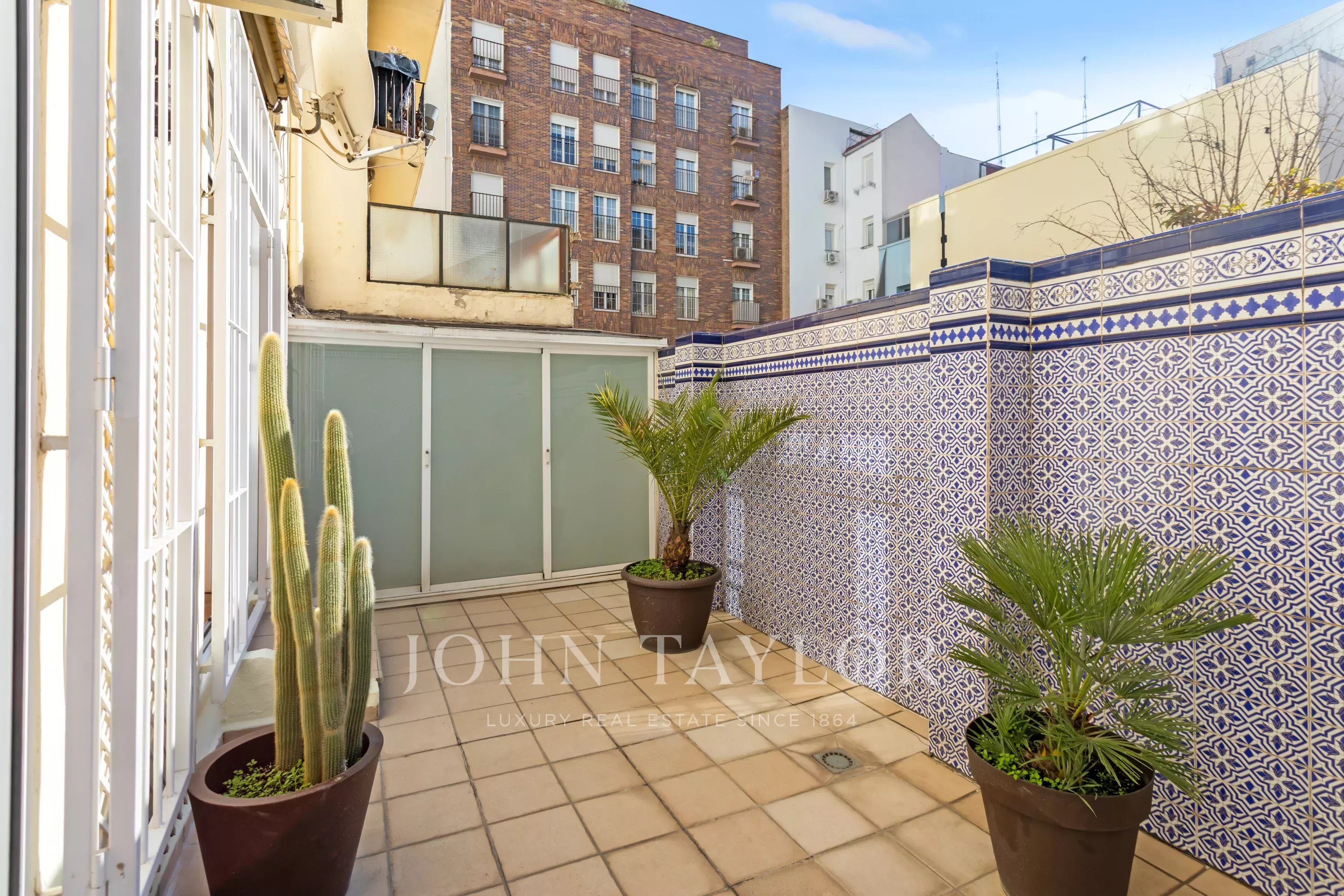 Das Haus hat eine bebaute Fläche von 193 m² und eine Außenterrasse von 20 m² zur exklusiven Nutzung, aufgeteilt in drei Schlafzimmer, ein großes Wohn-Esszimmer, eine separate Küche, zwei komplette Bäder, ein zentraler Korridor organisiert die Verteilung und trennt die Tages- und Nachtbereiche. Hervorzuheben sind die hohen Decken von 3,30 m mit klassischen Ornamenten, die typisch für das Viertel von Salamanca sind, die hellen Räume mit vielen Fenstern, die eine außergewöhnliche Belüftung im ganzen Haus ermöglichen.