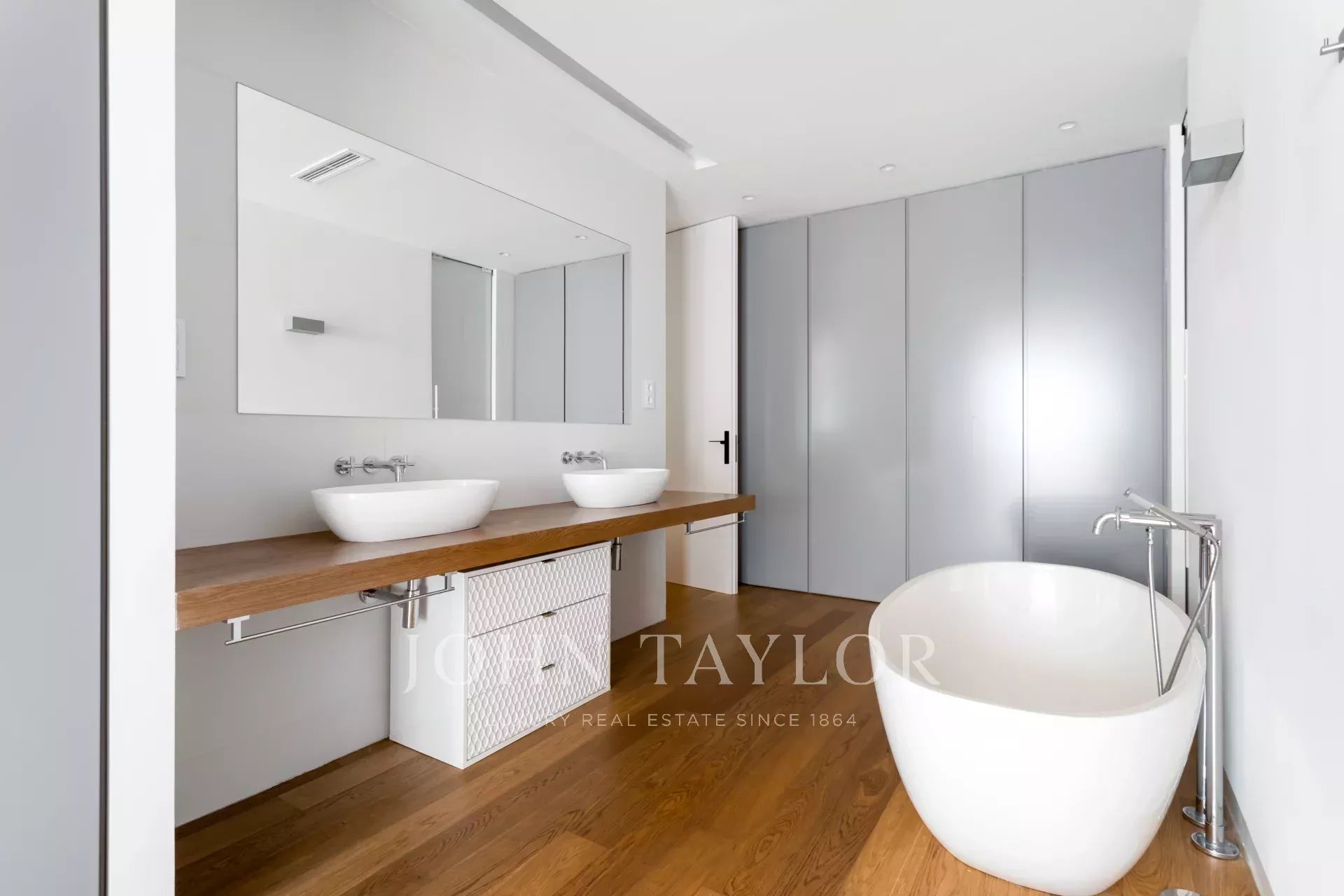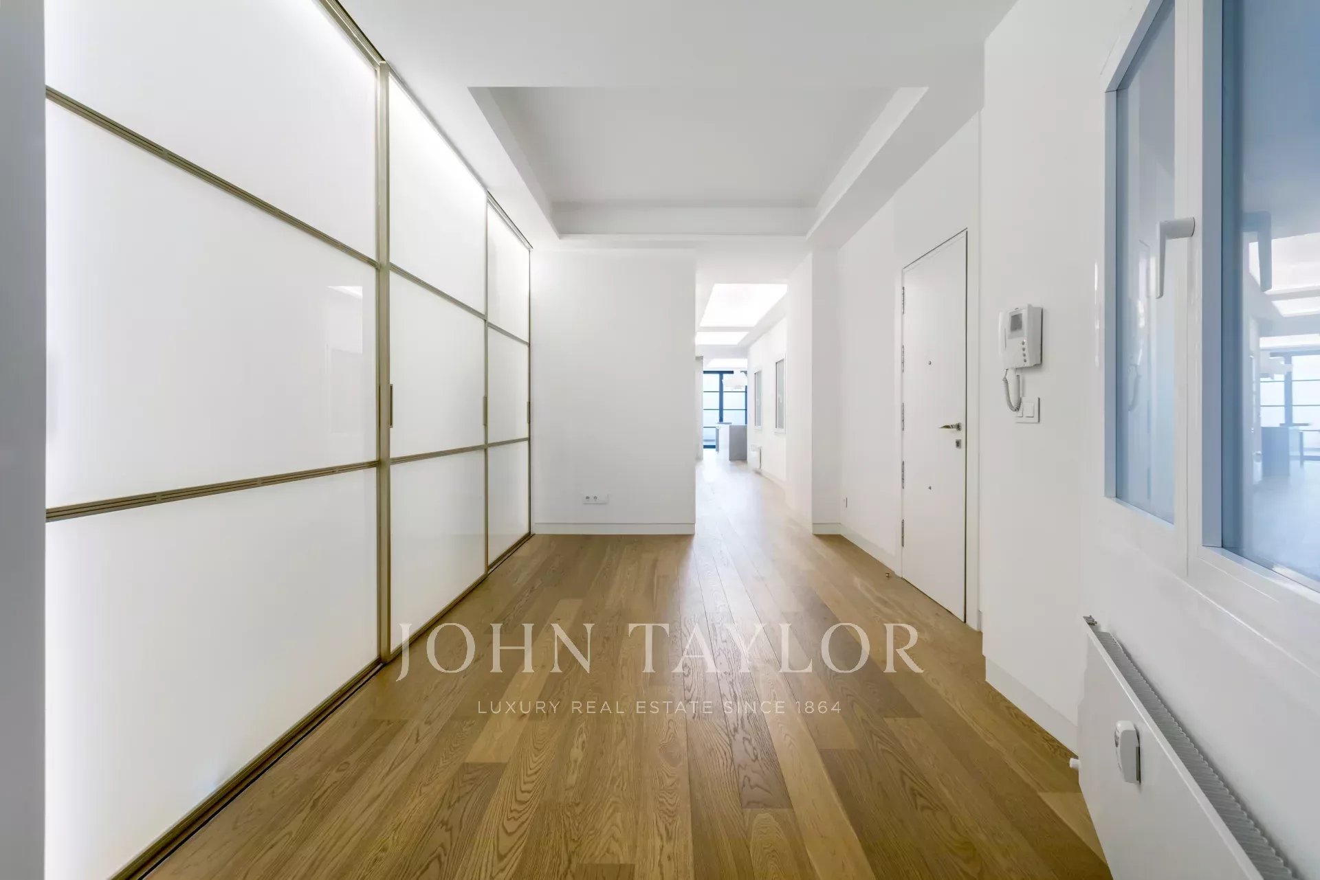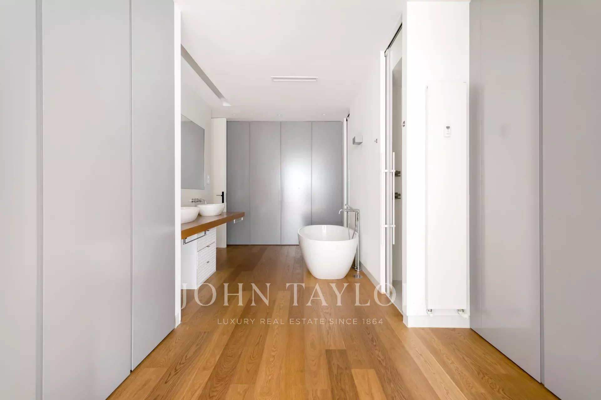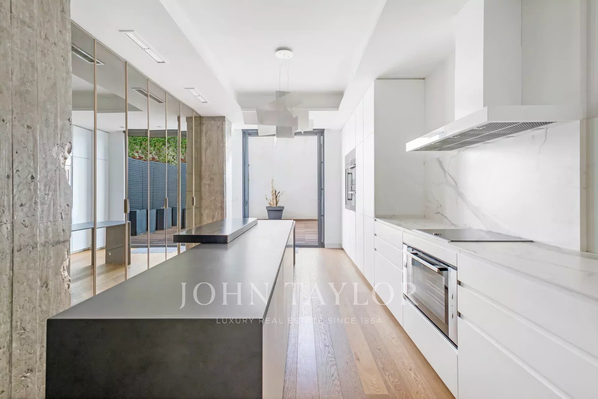 Die Wohnung verfügt über ein großes Wohnzimmer mit Blick auf die Straße, 4 Schlafzimmer, alle mit eigenem Bad, und ein Gästebad. Die Küche ist voll ausgestattet mit Top-Markengeräten, einer großen Insel und einem Weinkeller.
