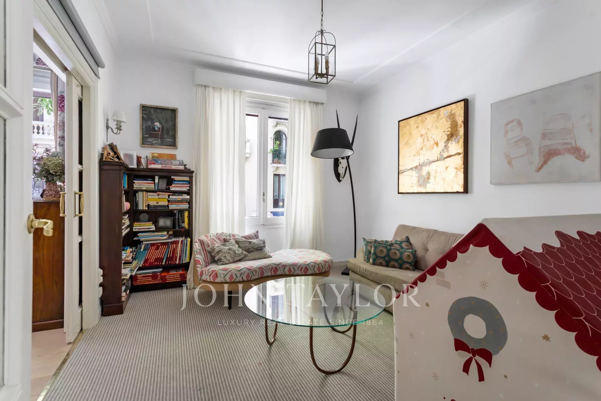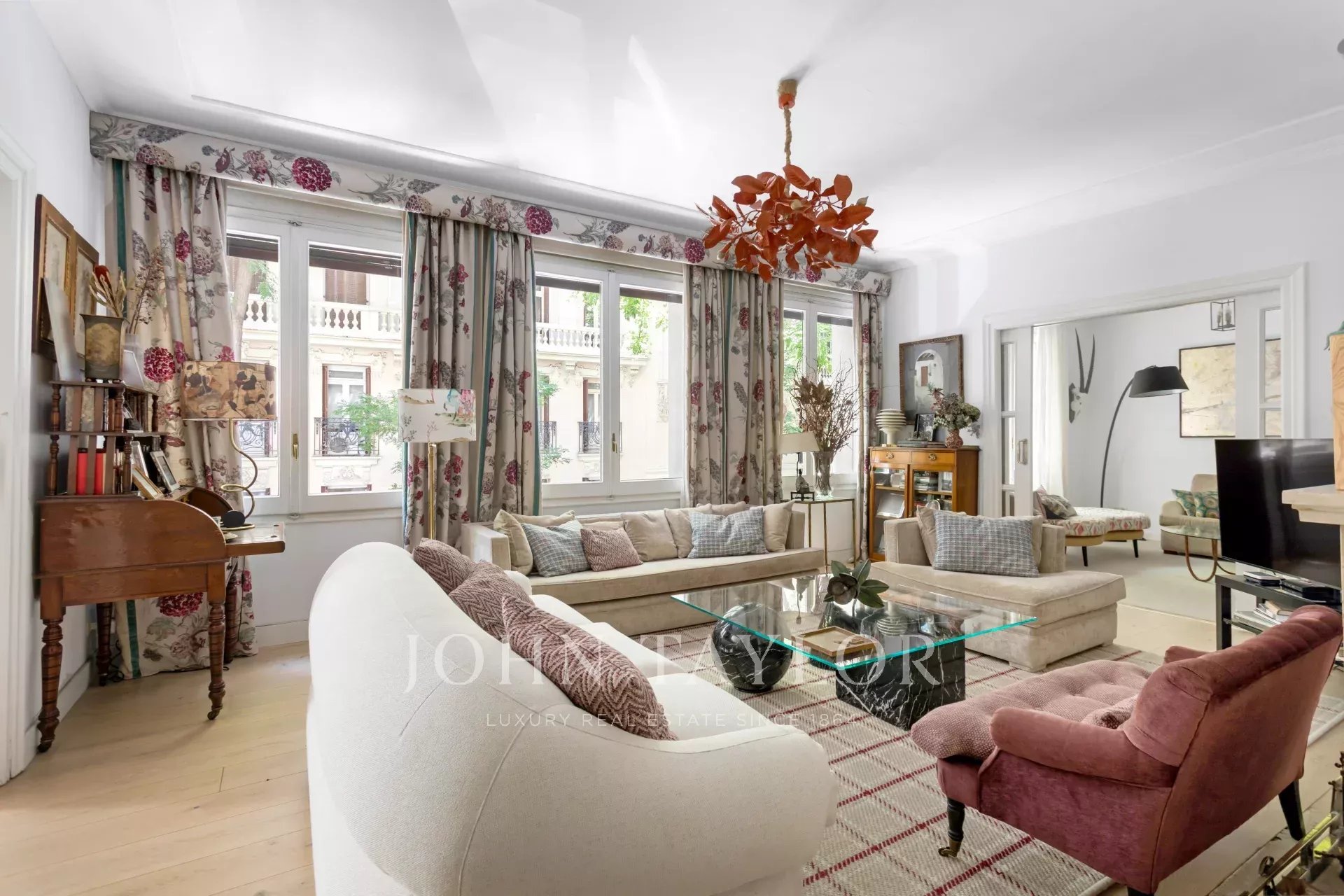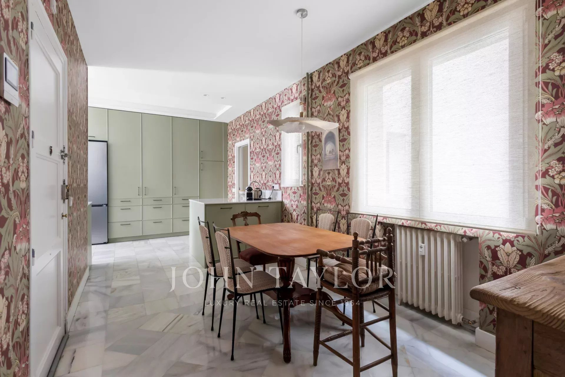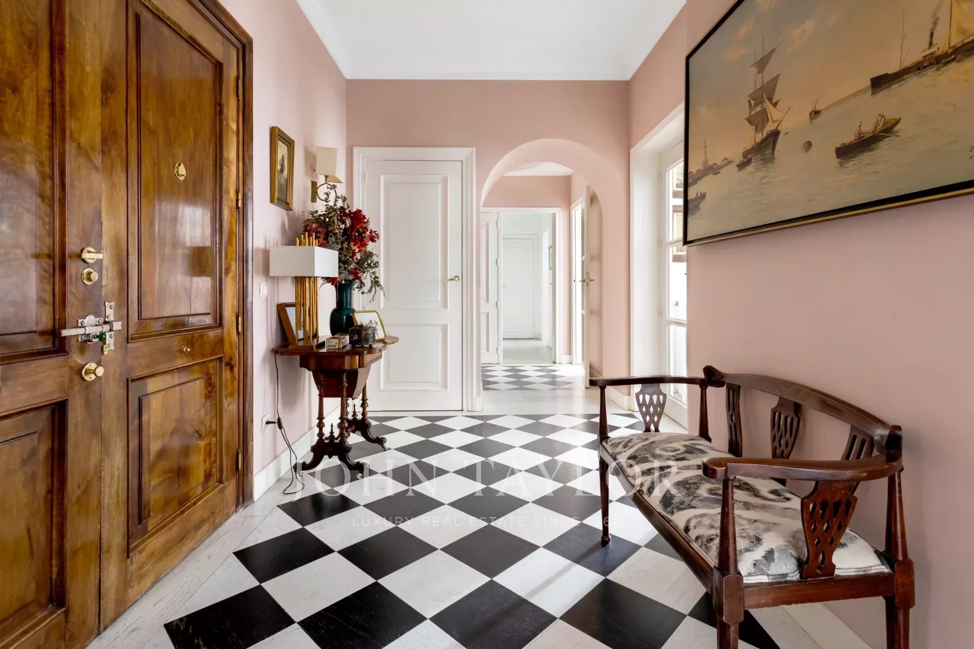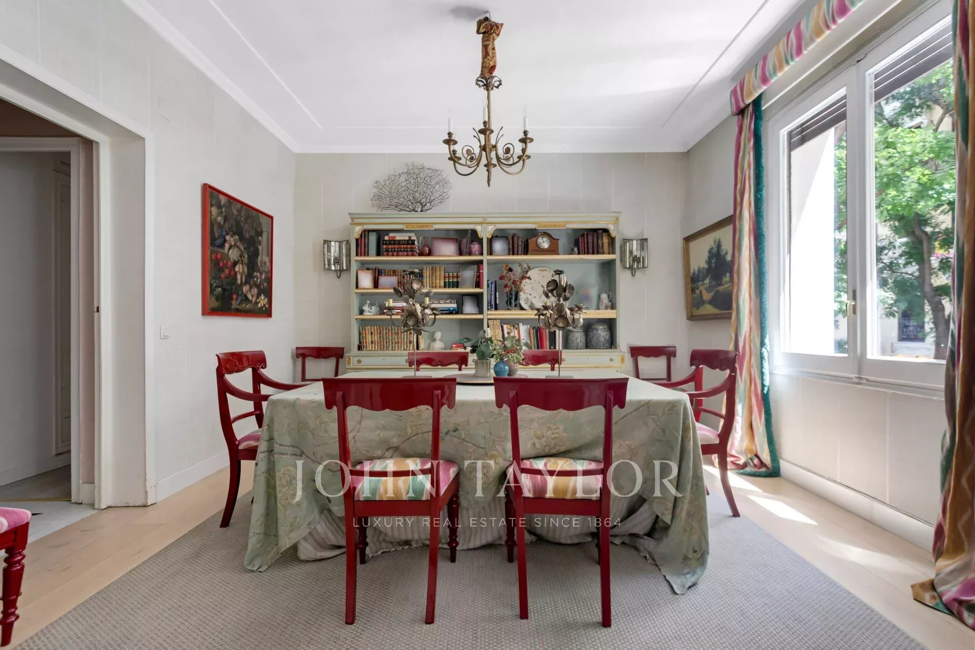 Ein exklusiver Wohnsitz von 305 m² mit einem herrschaftlichen Eingang und einer charaktervollen Eingangshalle, in der Marmor- und Schachbrettböden den eleganten Ton des Hauses vorwegnehmen. Die mittlere Etage, die nach außen und nach Osten ausgerichtet ist, lässt die Wohnräume vom ersten Moment an mit Licht durchfluten, was die großzügigen Proportionen und den Fluss zwischen den Räumen hervorhebt: große repräsentative Salons mit Kamin und Stuck, eine integrierte Bibliothek oder ein Büro und Esszimmer, die sowohl zum Familienleben als auch zum Empfang von Gästen einladen.