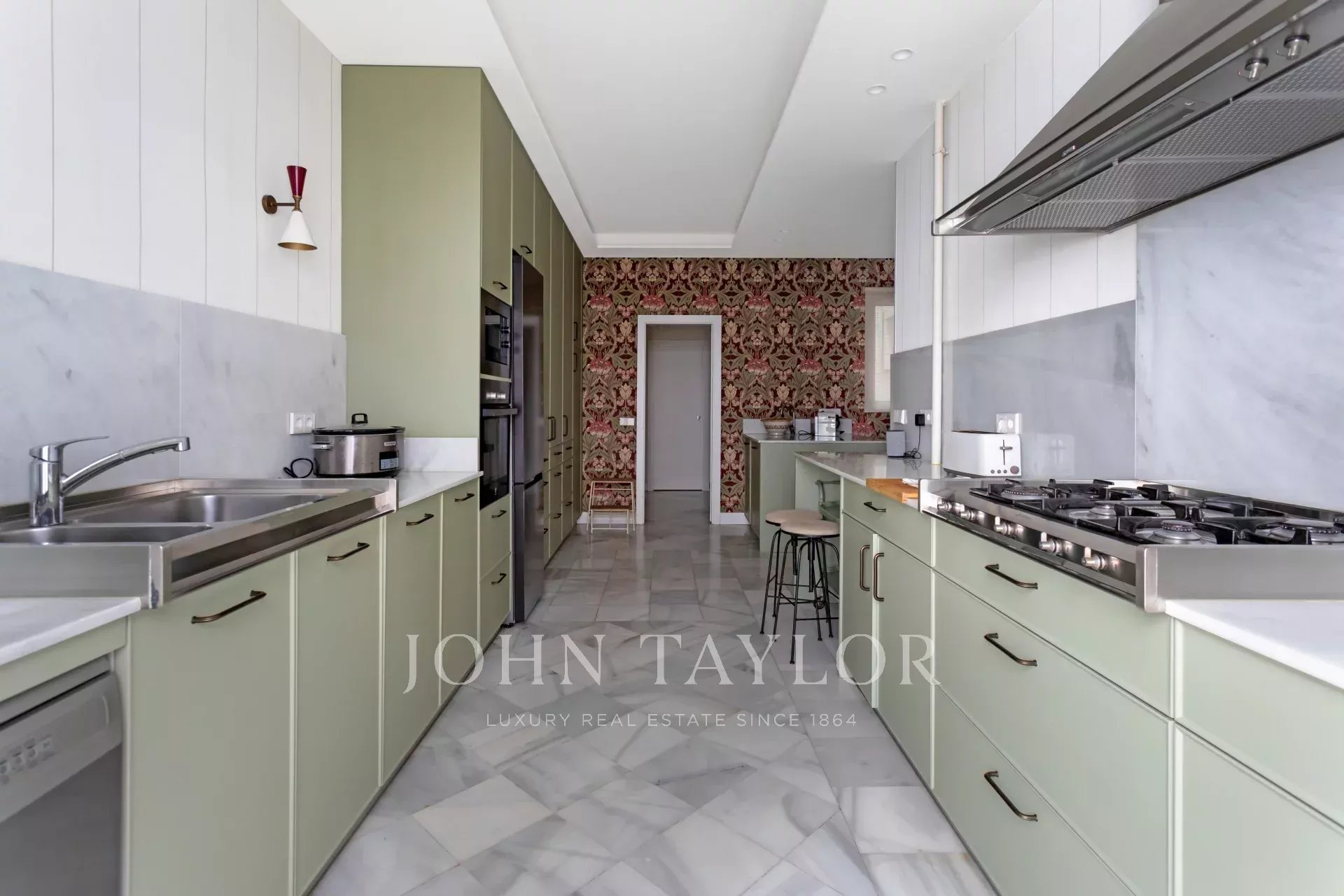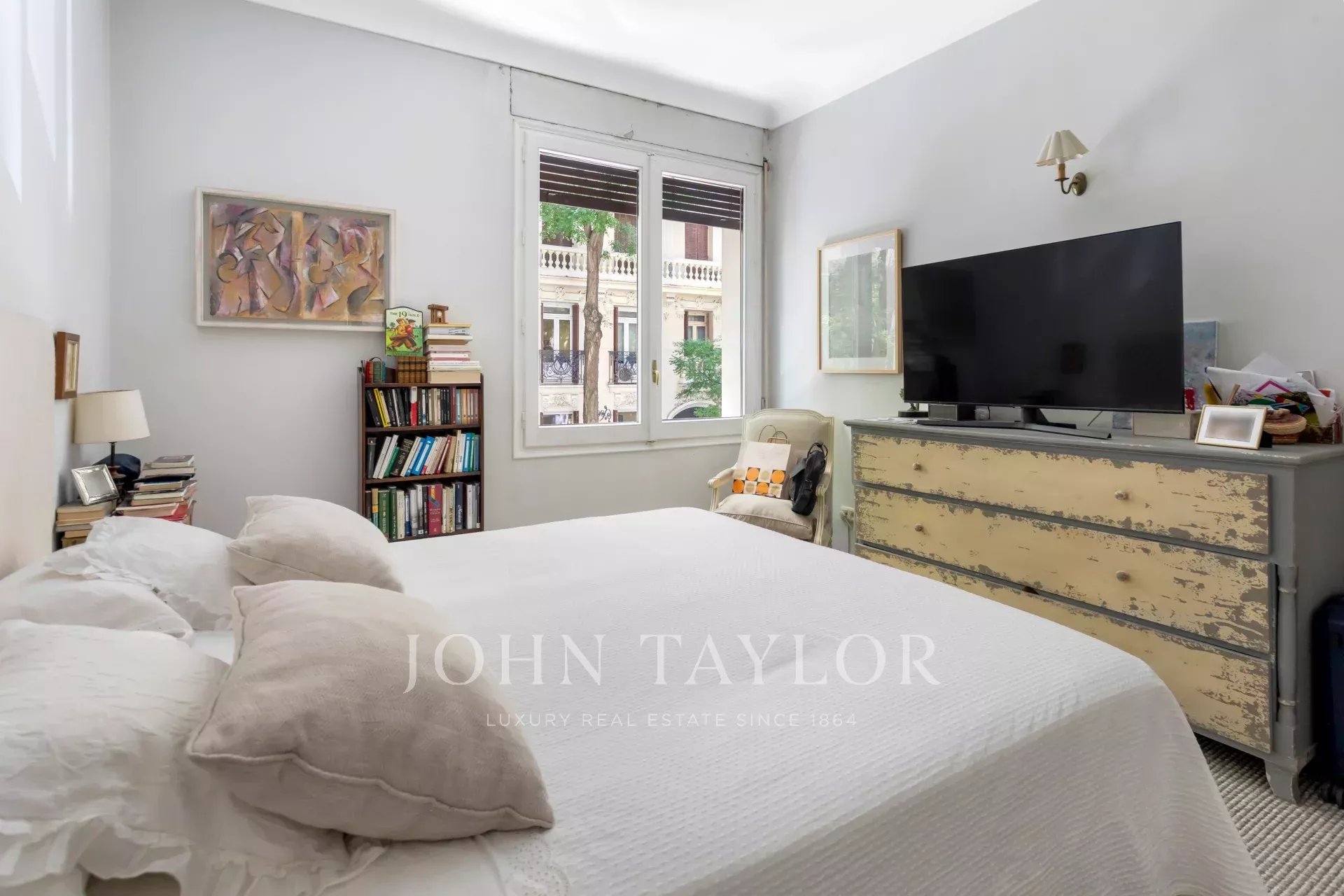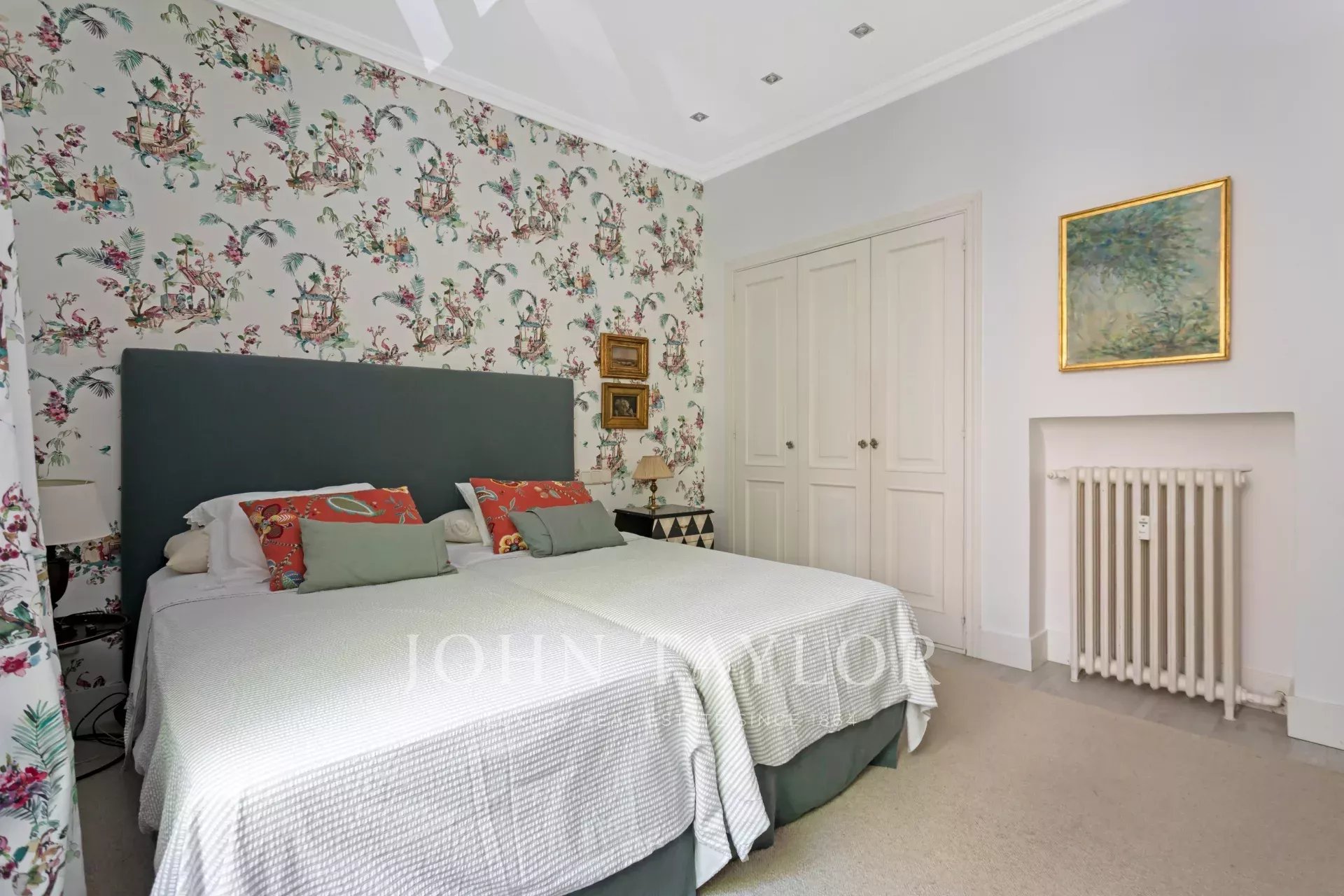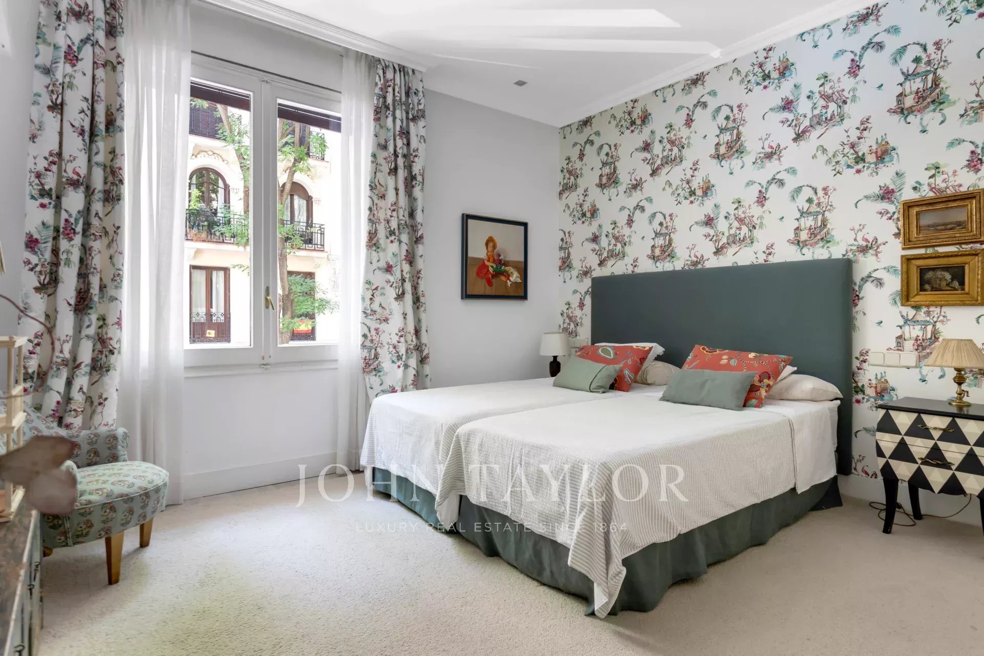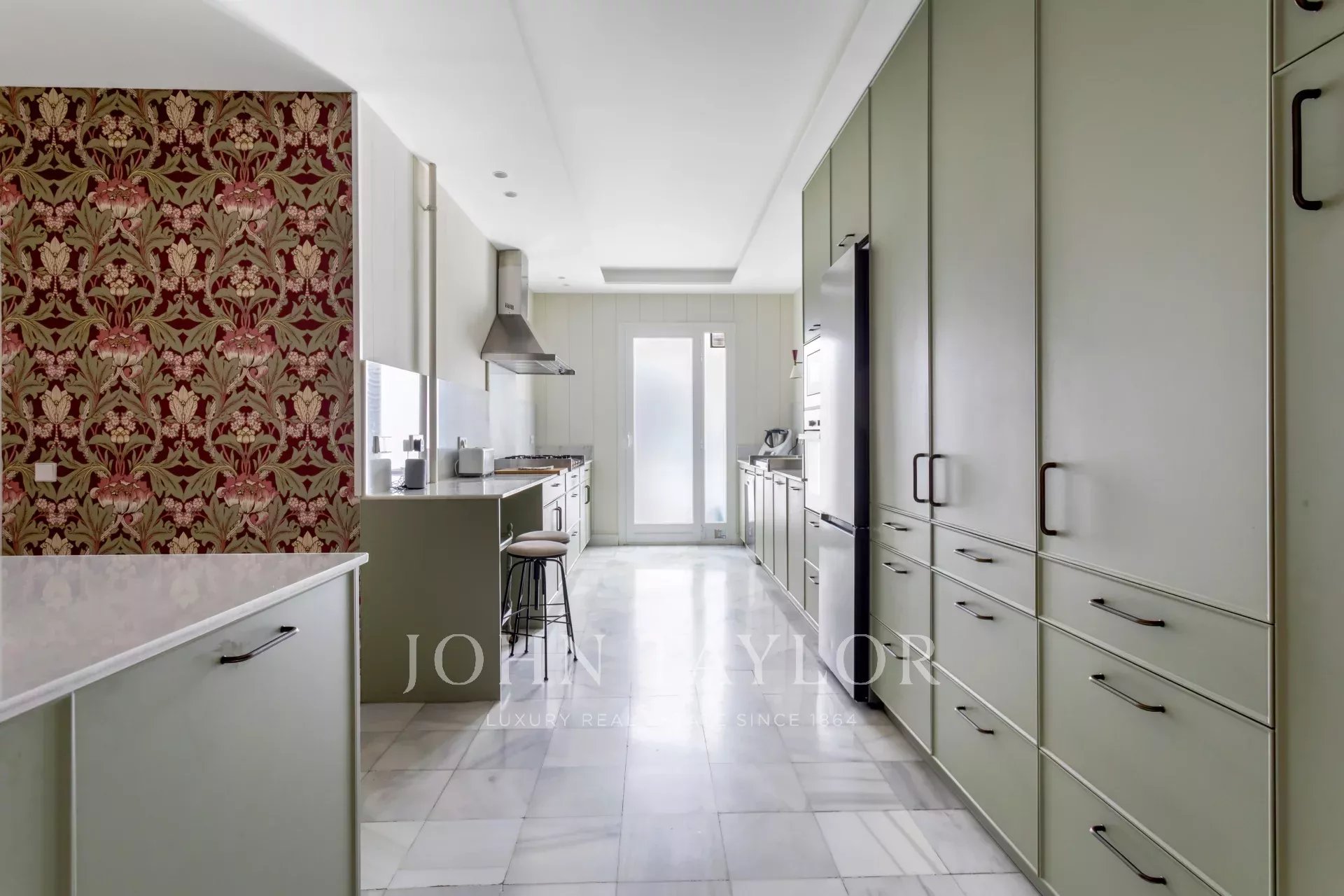 Ein exklusiver Wohnsitz von 305 m² mit einem herrschaftlichen Eingang und einer charaktervollen Eingangshalle, in der Marmor- und Schachbrettböden den eleganten Ton des Hauses vorwegnehmen. Die mittlere Etage, die nach außen und nach Osten ausgerichtet ist, lässt die Wohnräume vom ersten Moment an mit Licht durchfluten, was die großzügigen Proportionen und den Fluss zwischen den Räumen hervorhebt: große repräsentative Salons mit Kamin und Stuck, eine integrierte Bibliothek oder ein Büro und Esszimmer, die sowohl zum Familienleben als auch zum Empfang von Gästen einladen.