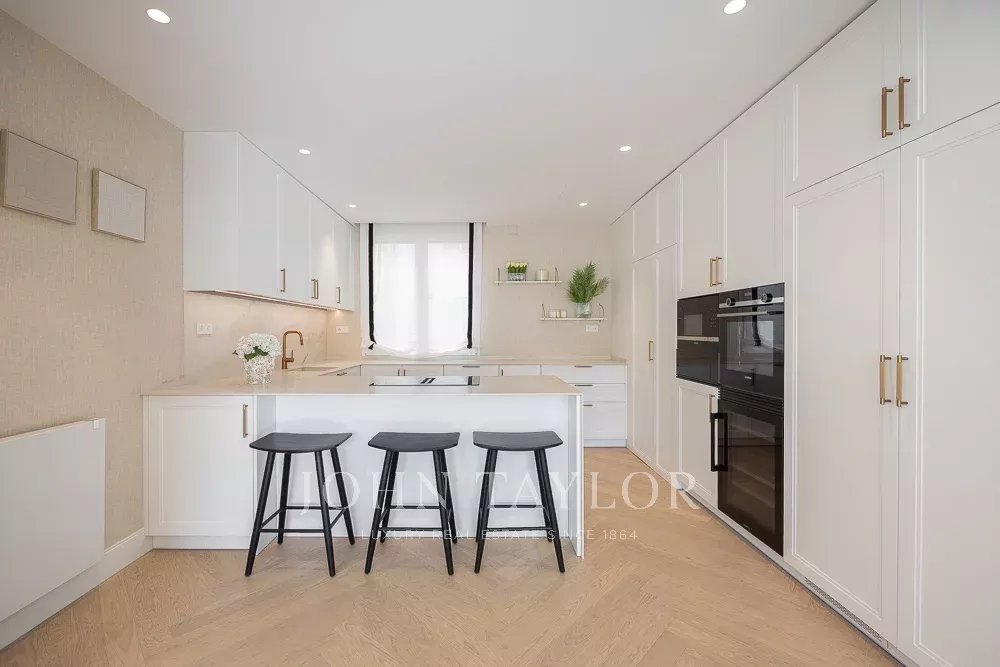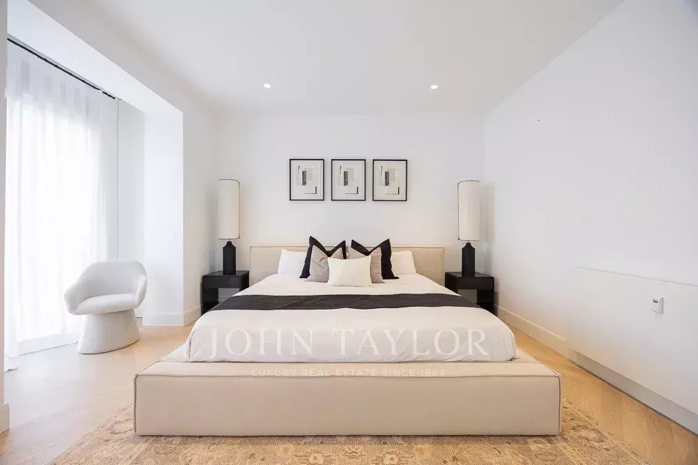 Der private Bereich umfasst drei Schlafzimmer, alle mit eigenem Bad, sowie ein komfortables Büro für die Arbeit von zu Hause aus. Das Hauptschlafzimmer bietet viel Platz und einen Ankleideraum und blickt auf einen großen Innenhof, der viel natürliches Licht hereinlässt.