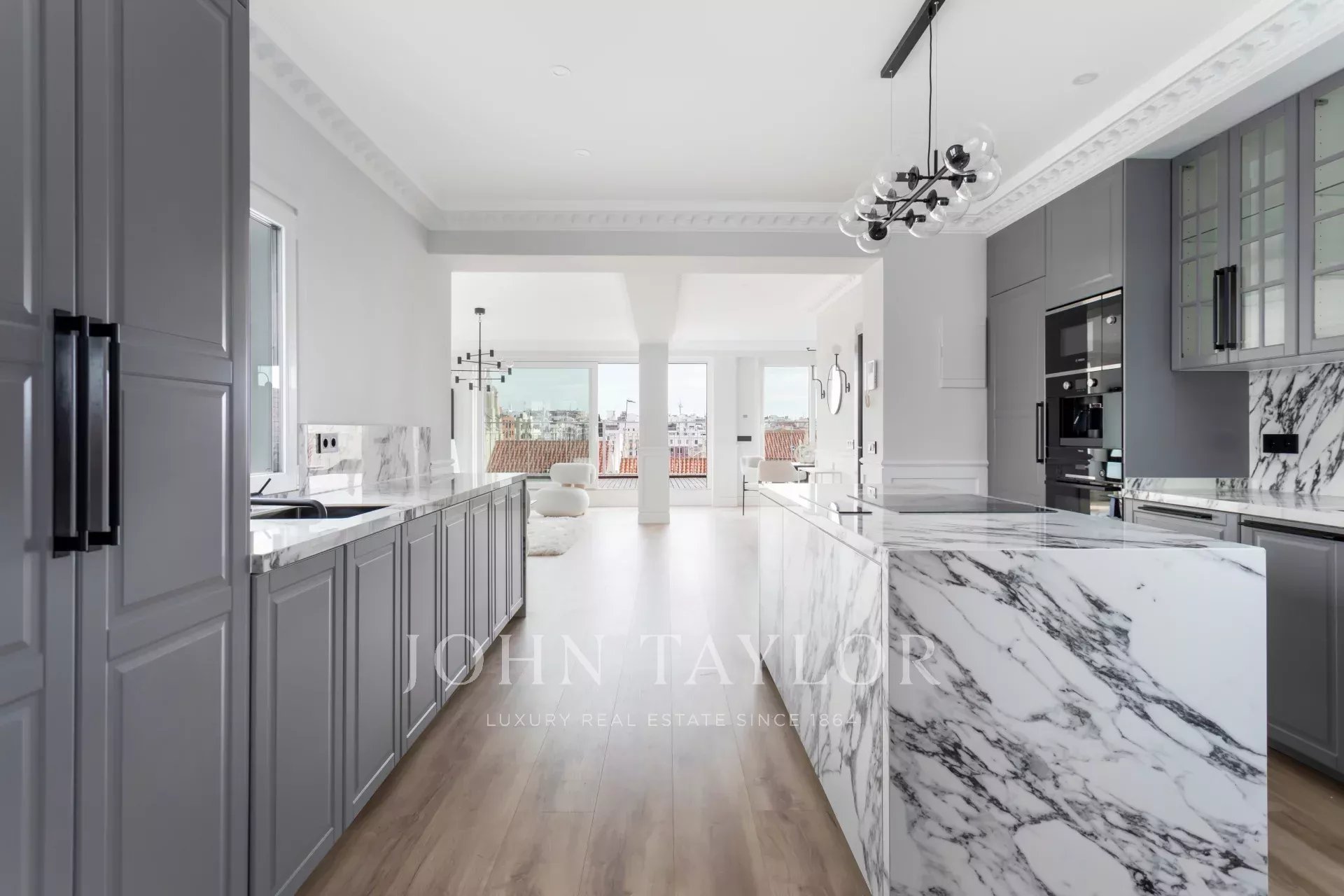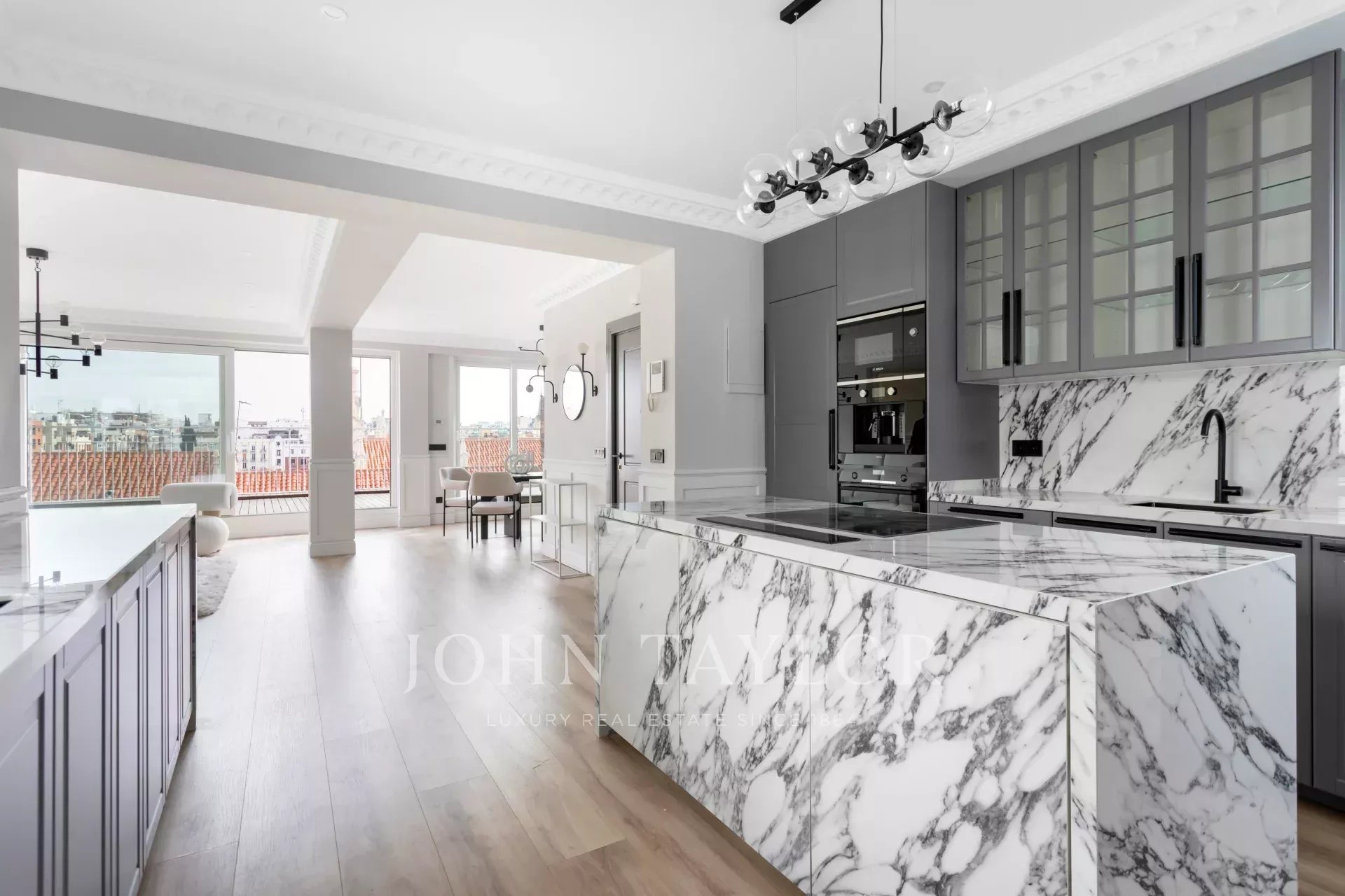 Ein exklusives, neu renoviertes Penthouse, das sich durch die hervorragende Qualität seiner Materialien und die herrliche Terrasse mit Panoramablick auszeichnet.