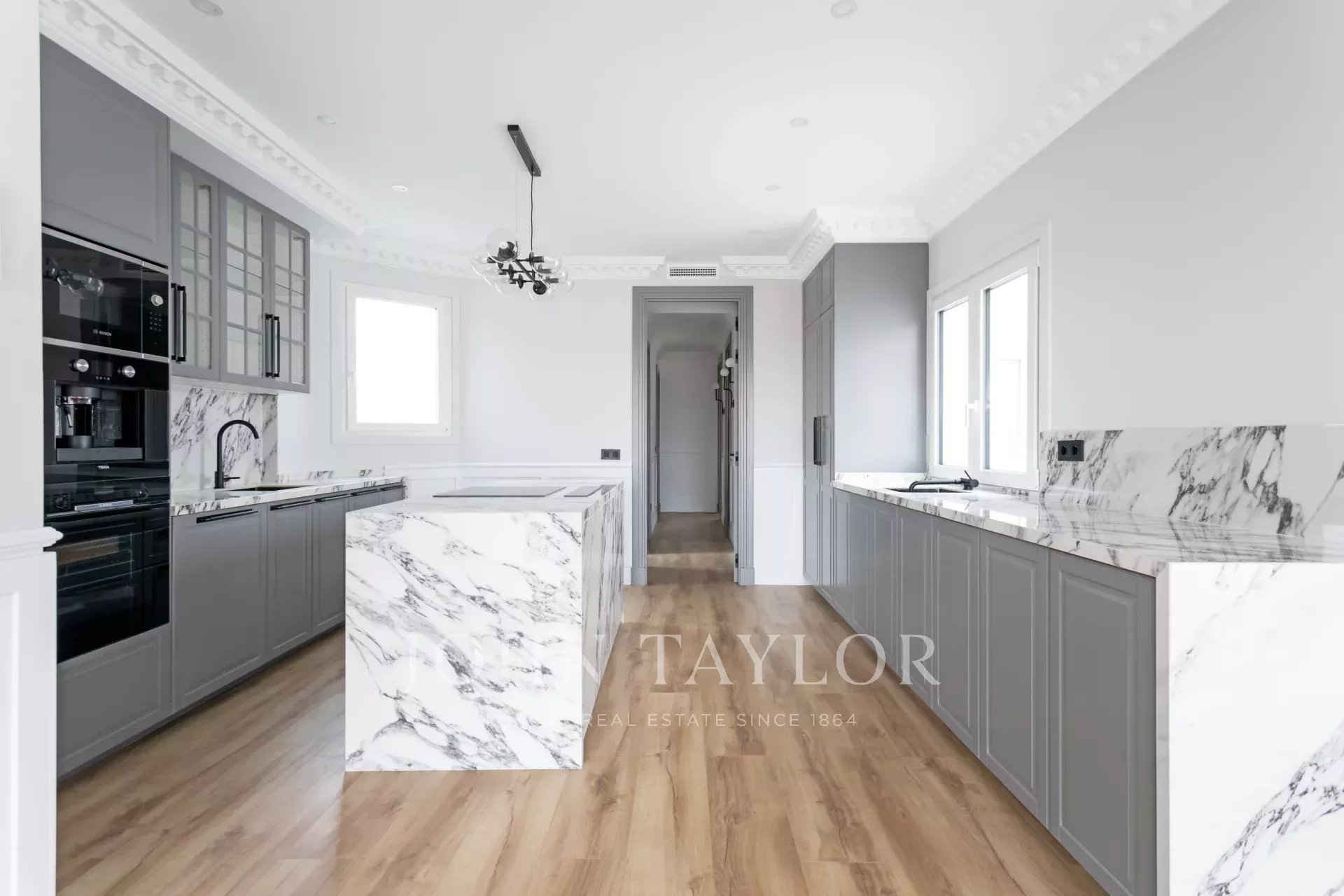 Ausgestattet mit Kanal-Klimaanlage, Zentralheizung und elektrischen Rollläden.