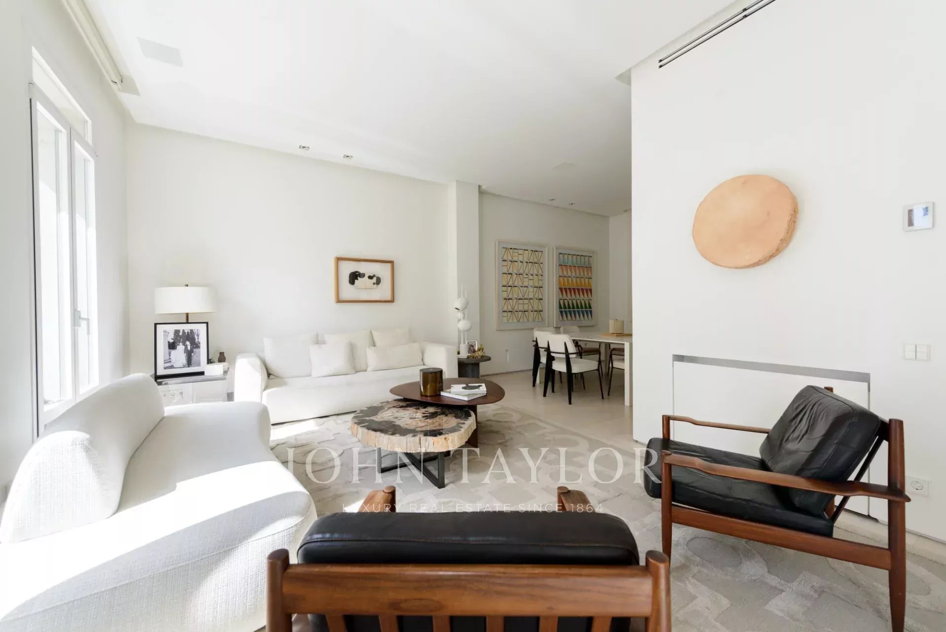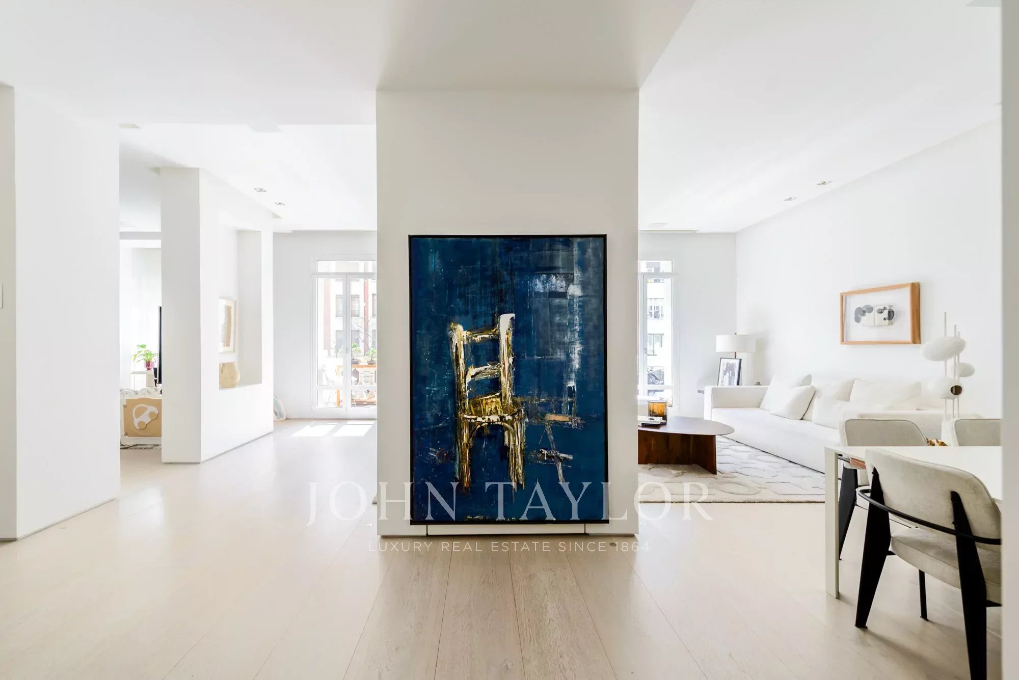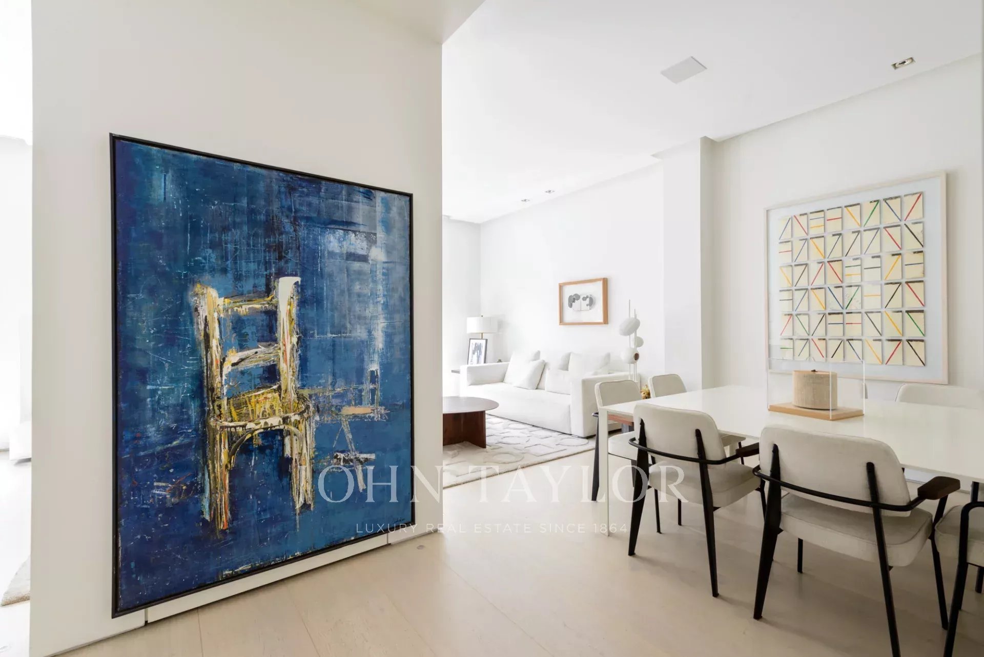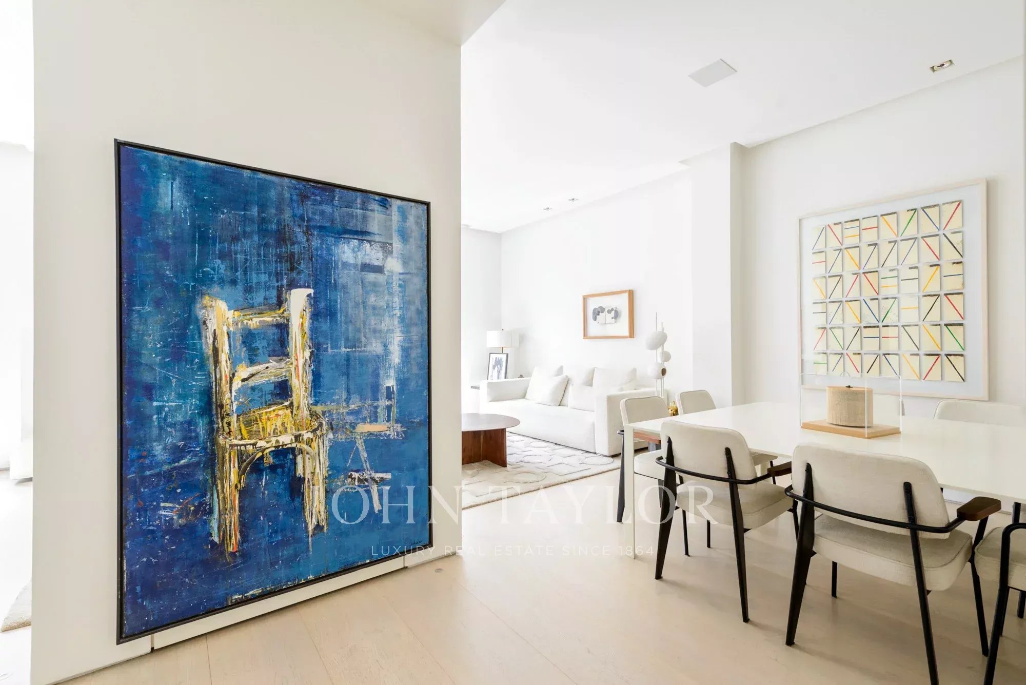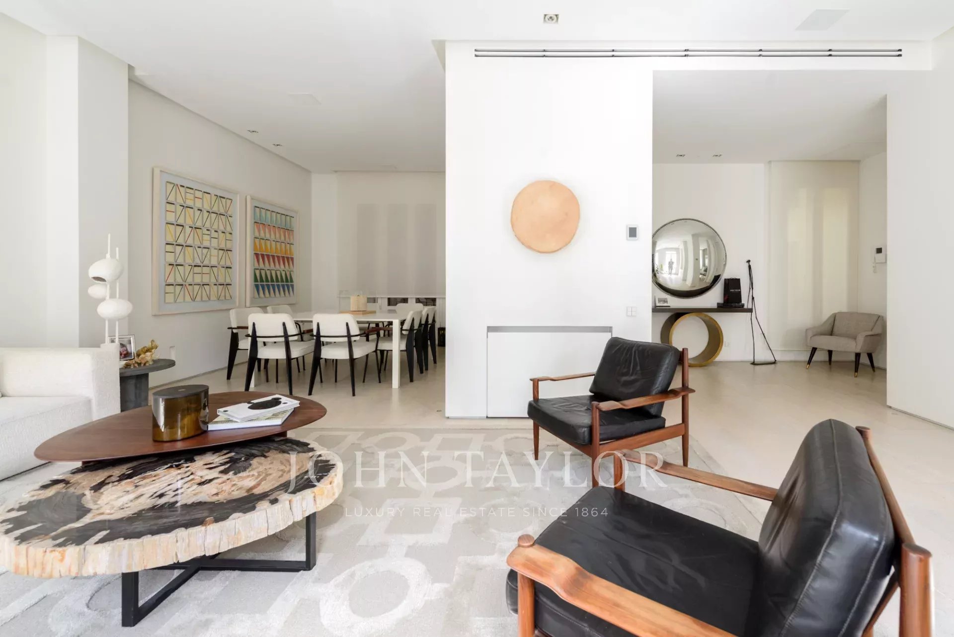 Das Hauptwohnzimmer ist ein heller und offener Raum, der nach Süden ausgerichtet ist und Zugang zu vier beeindruckenden übergroßen Balkonen bietet. Das Wohnzimmer ist mit dem Esszimmer und der Diele verbunden.