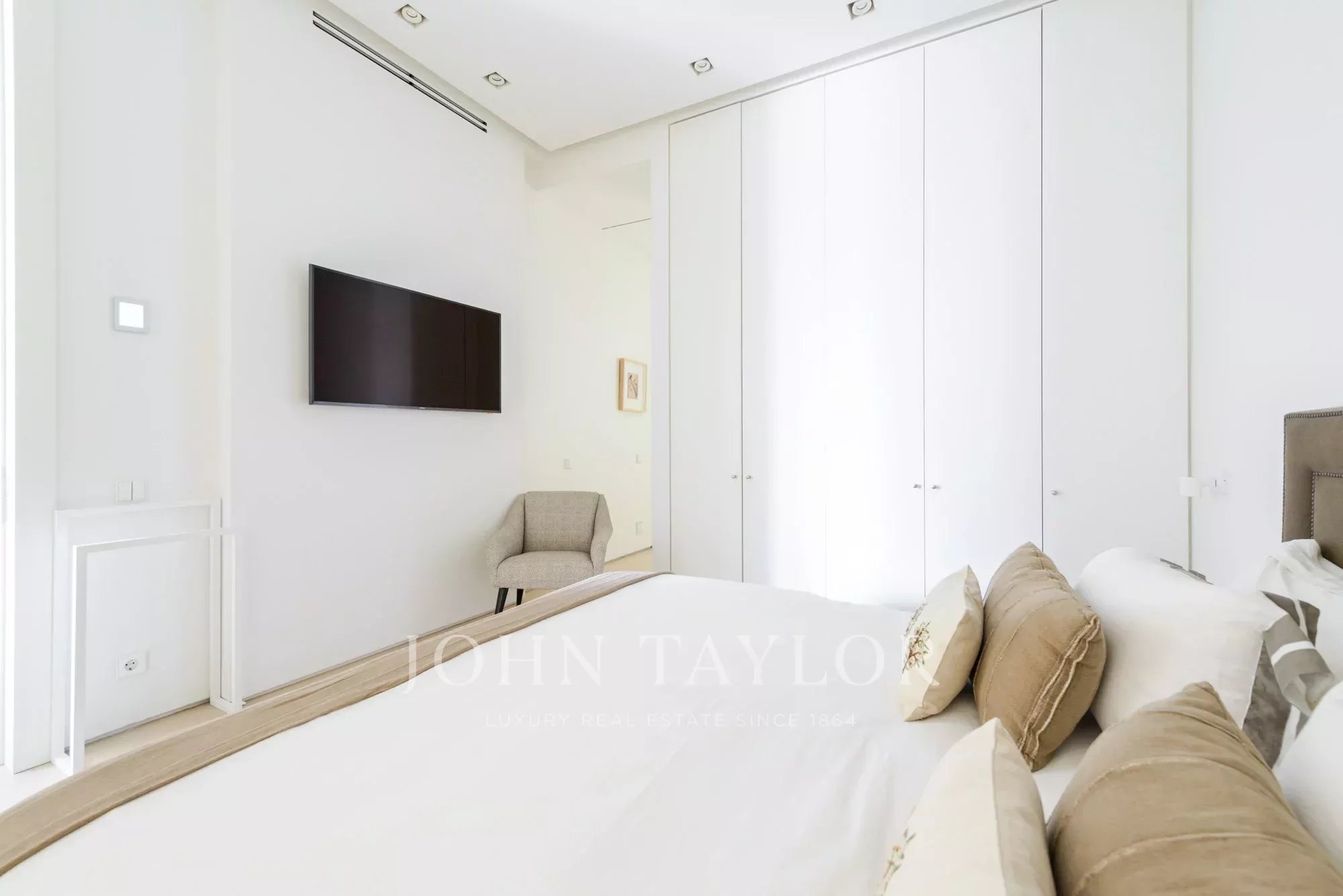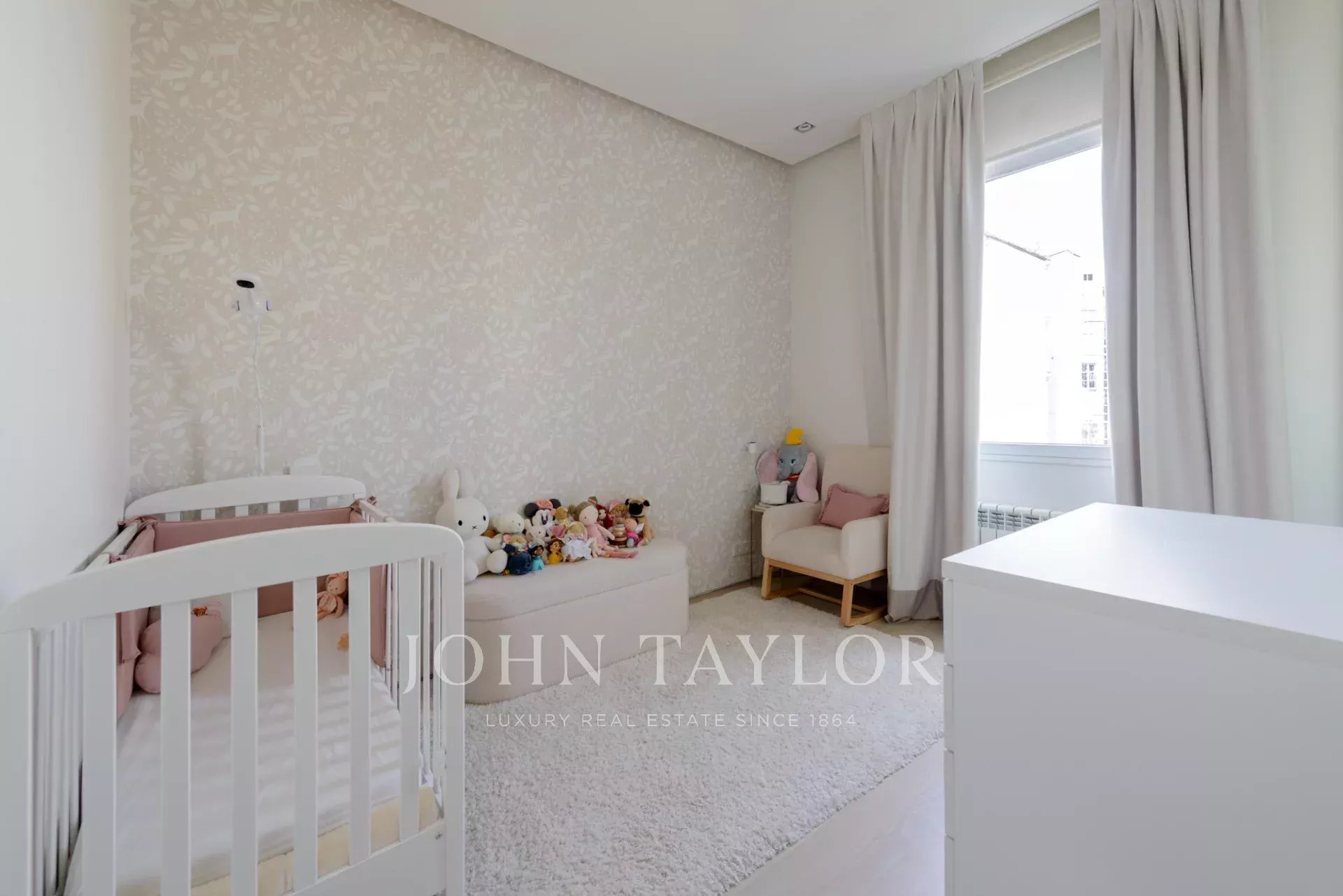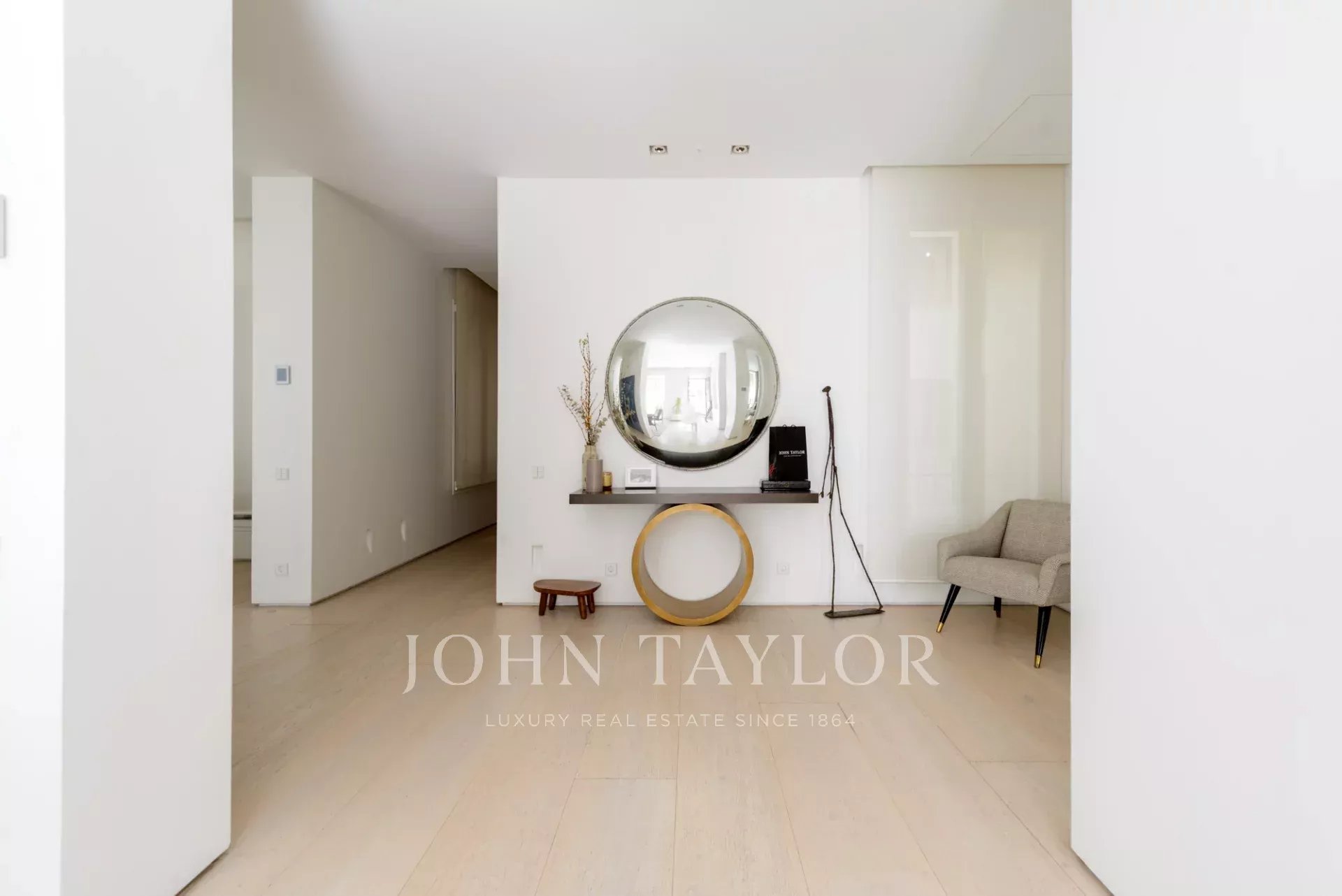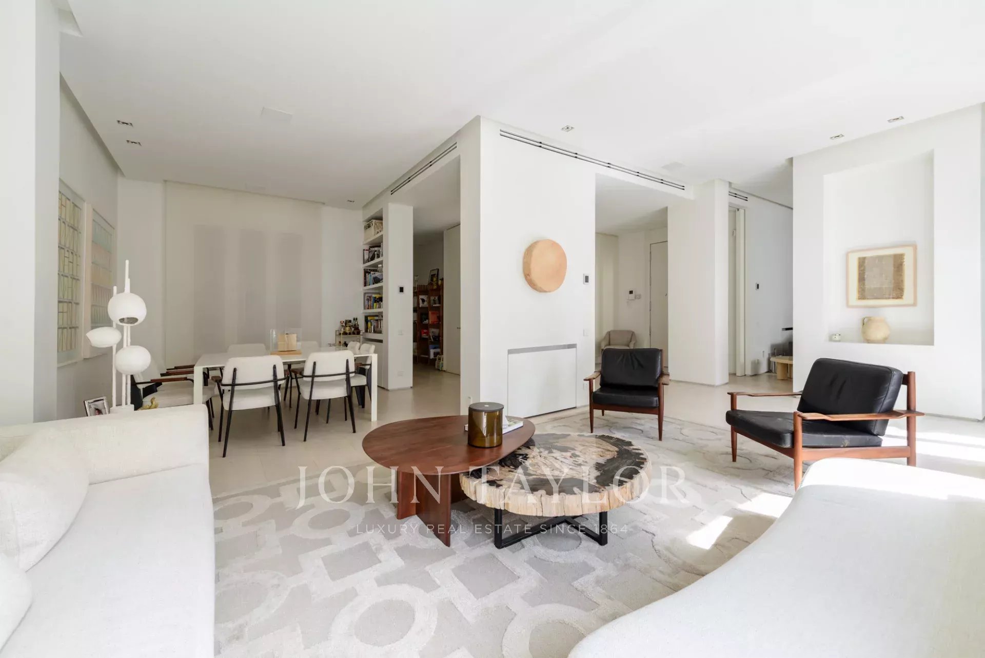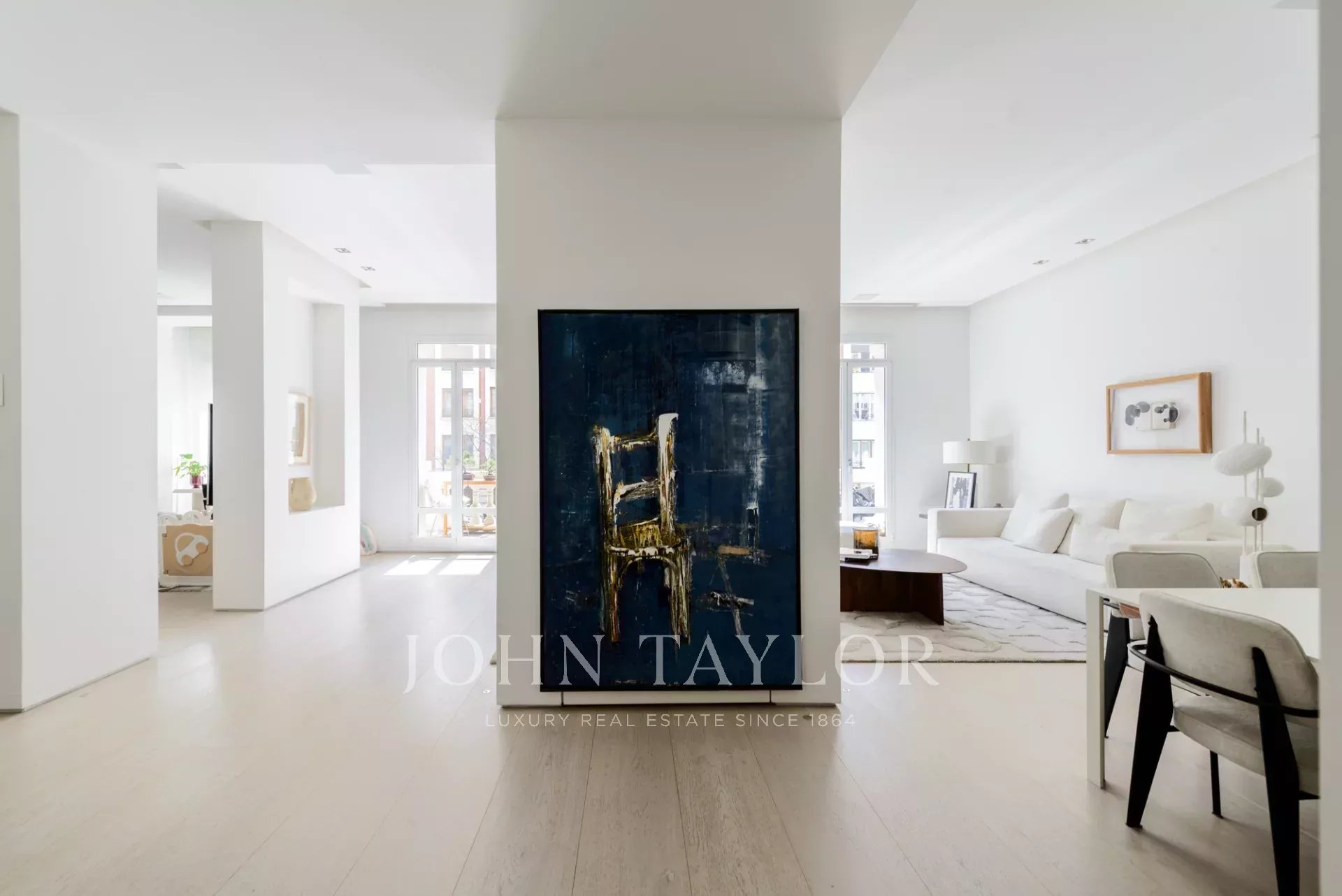 Das Hauptwohnzimmer ist ein heller und offener Raum, der nach Süden ausgerichtet ist und Zugang zu vier beeindruckenden übergroßen Balkonen bietet. Das Wohnzimmer ist mit dem Esszimmer und der Diele verbunden.
