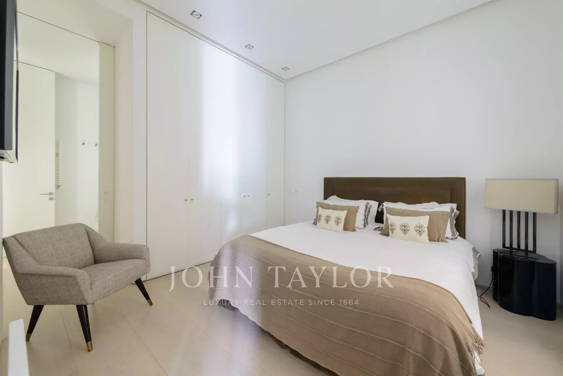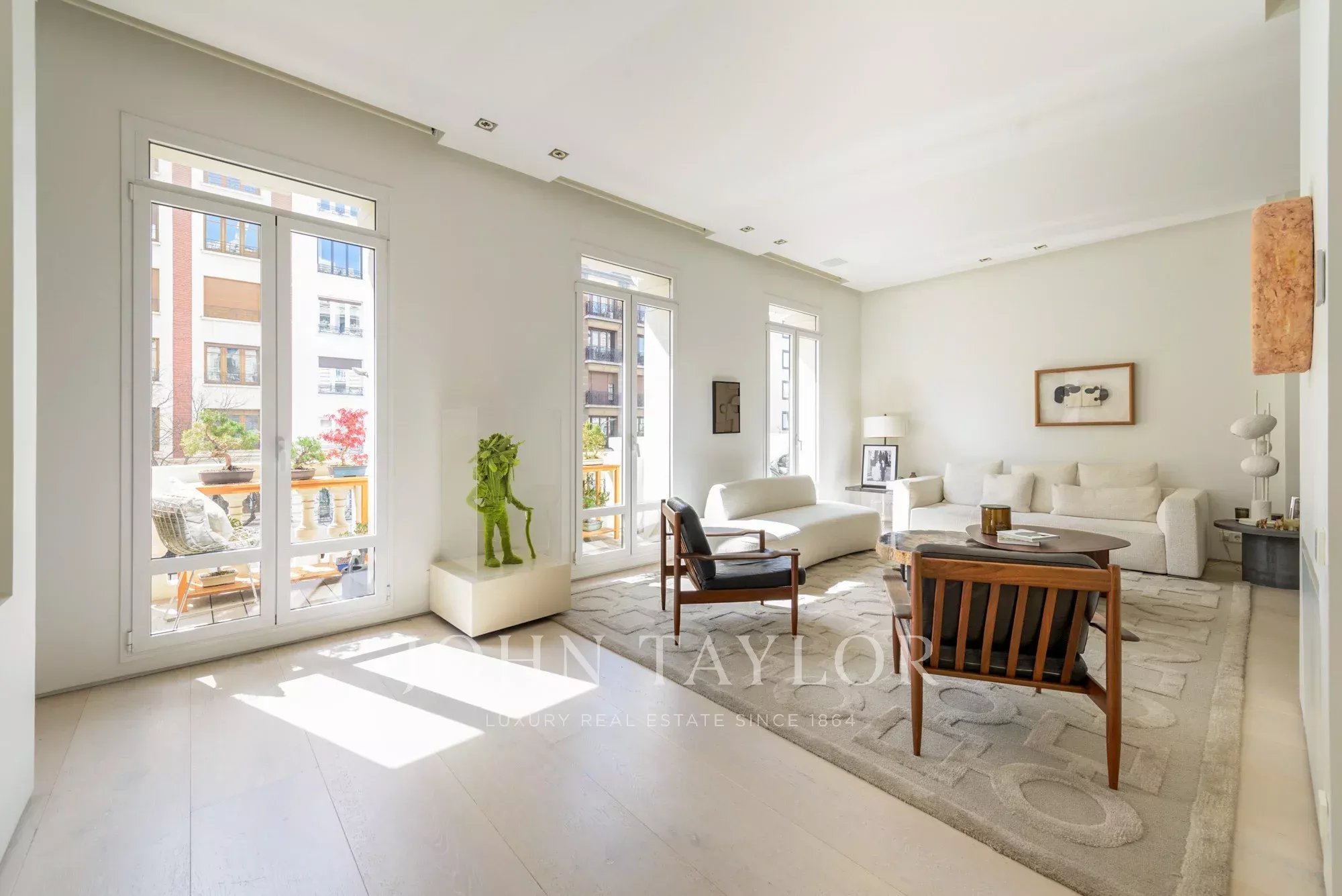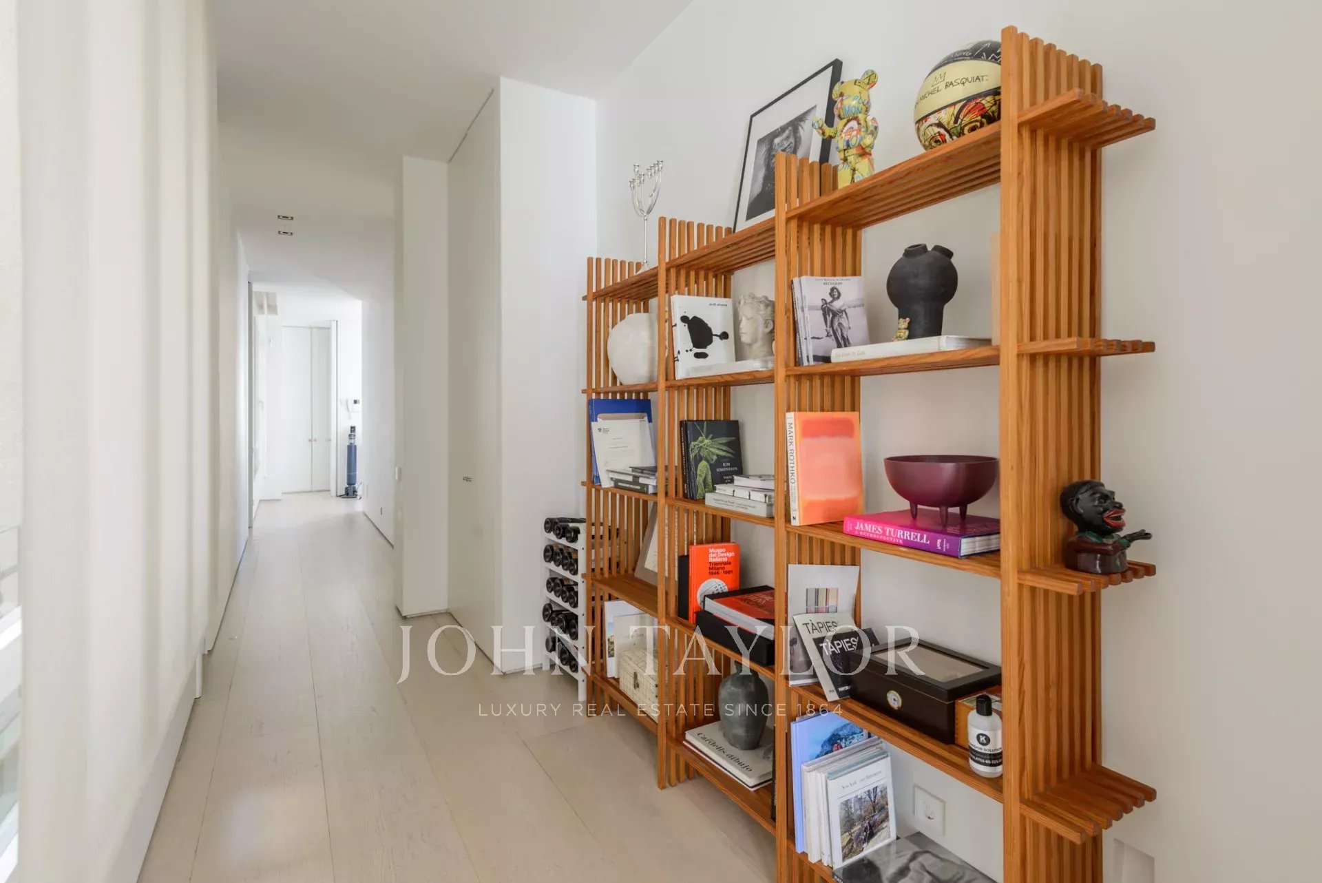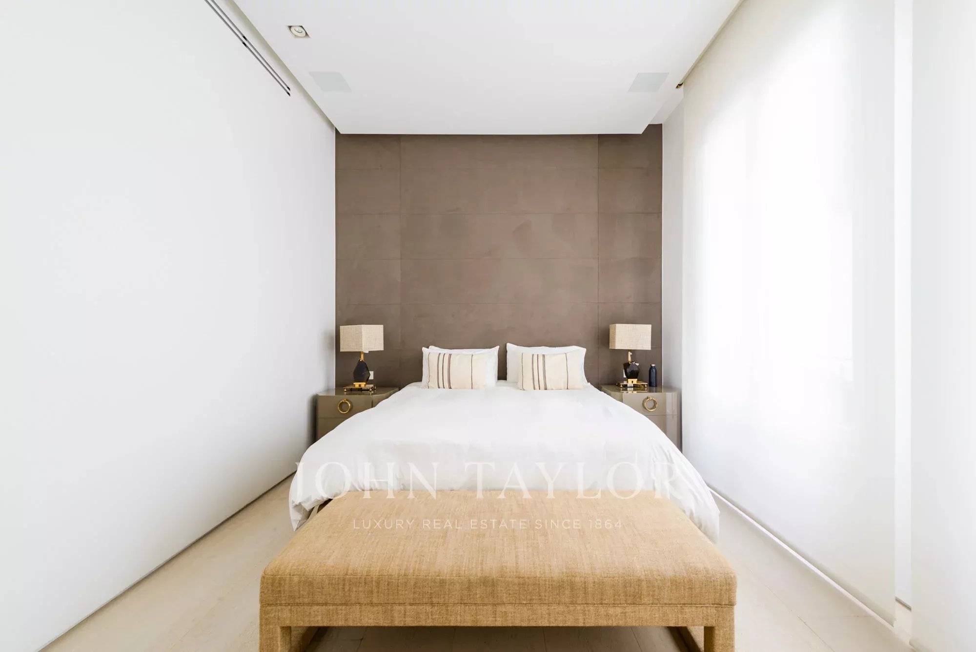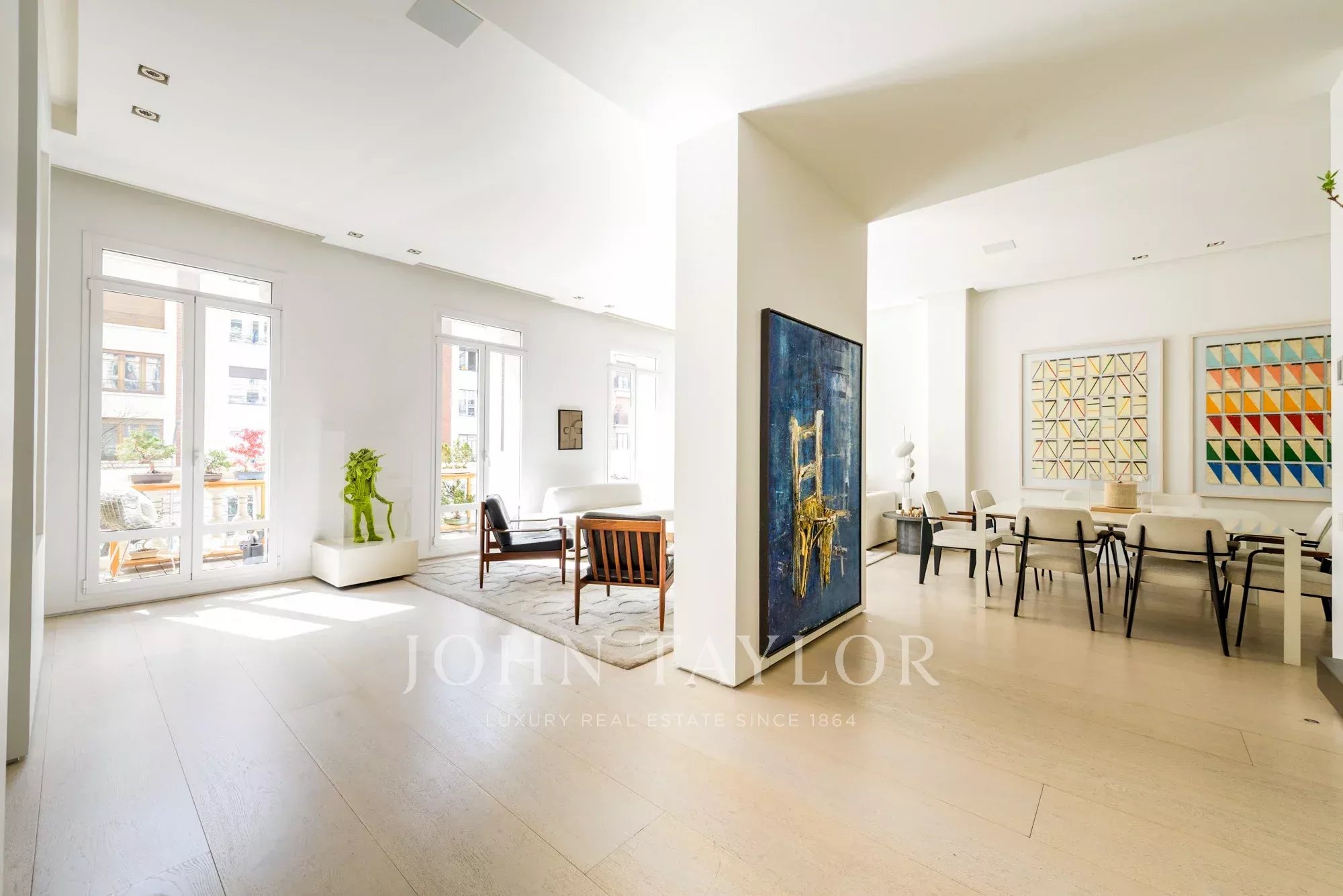 Das Hauptwohnzimmer ist ein heller und offener Raum, der nach Süden ausgerichtet ist und Zugang zu vier beeindruckenden übergroßen Balkonen bietet. Das Wohnzimmer ist mit dem Esszimmer und der Diele verbunden.
